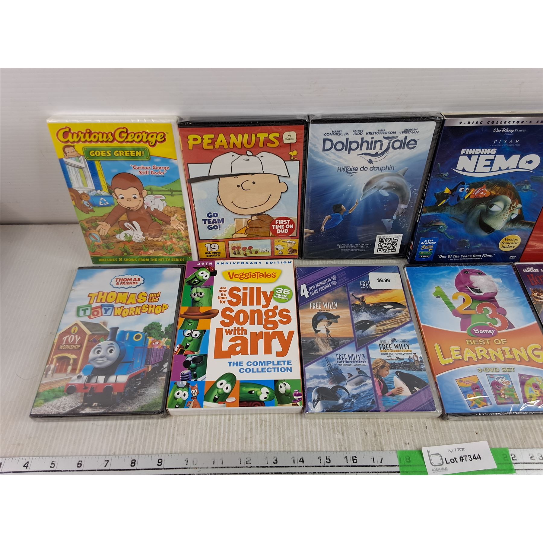 Lot 7344 Assorted DVDs - Peanuts, Finding Nemo, Curious George, Misc