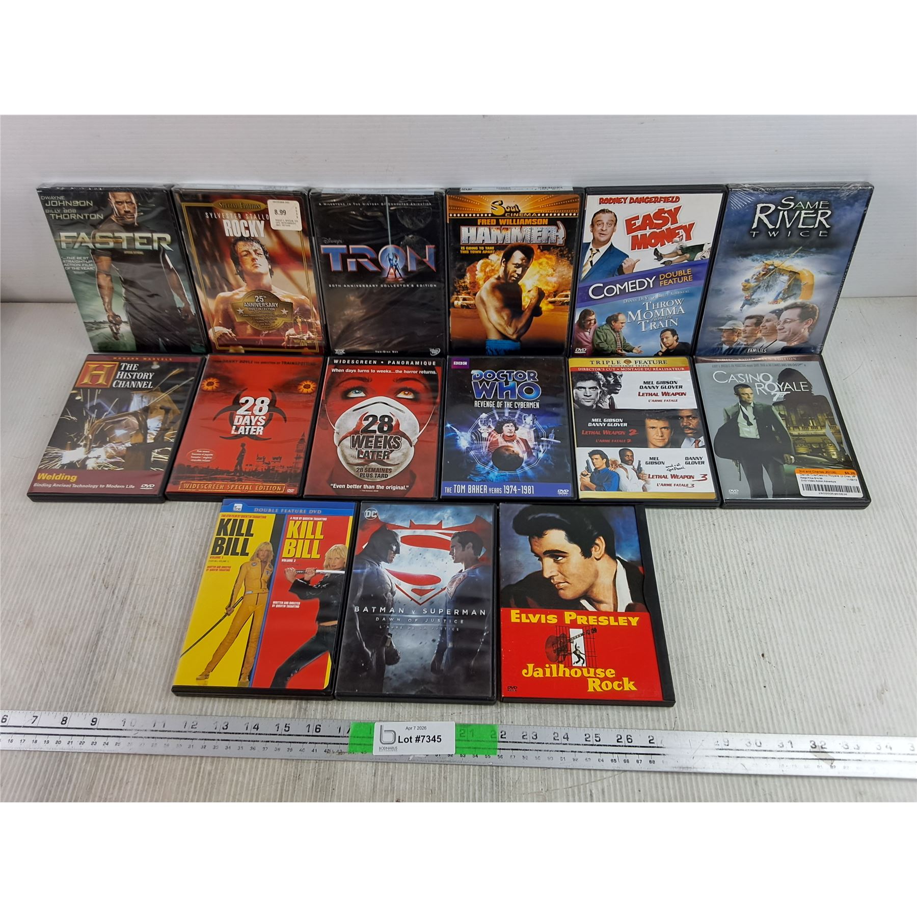 Lot 7345 Assorted DVDs - Kill Bill, Elvis Presley, Rocky, Misc