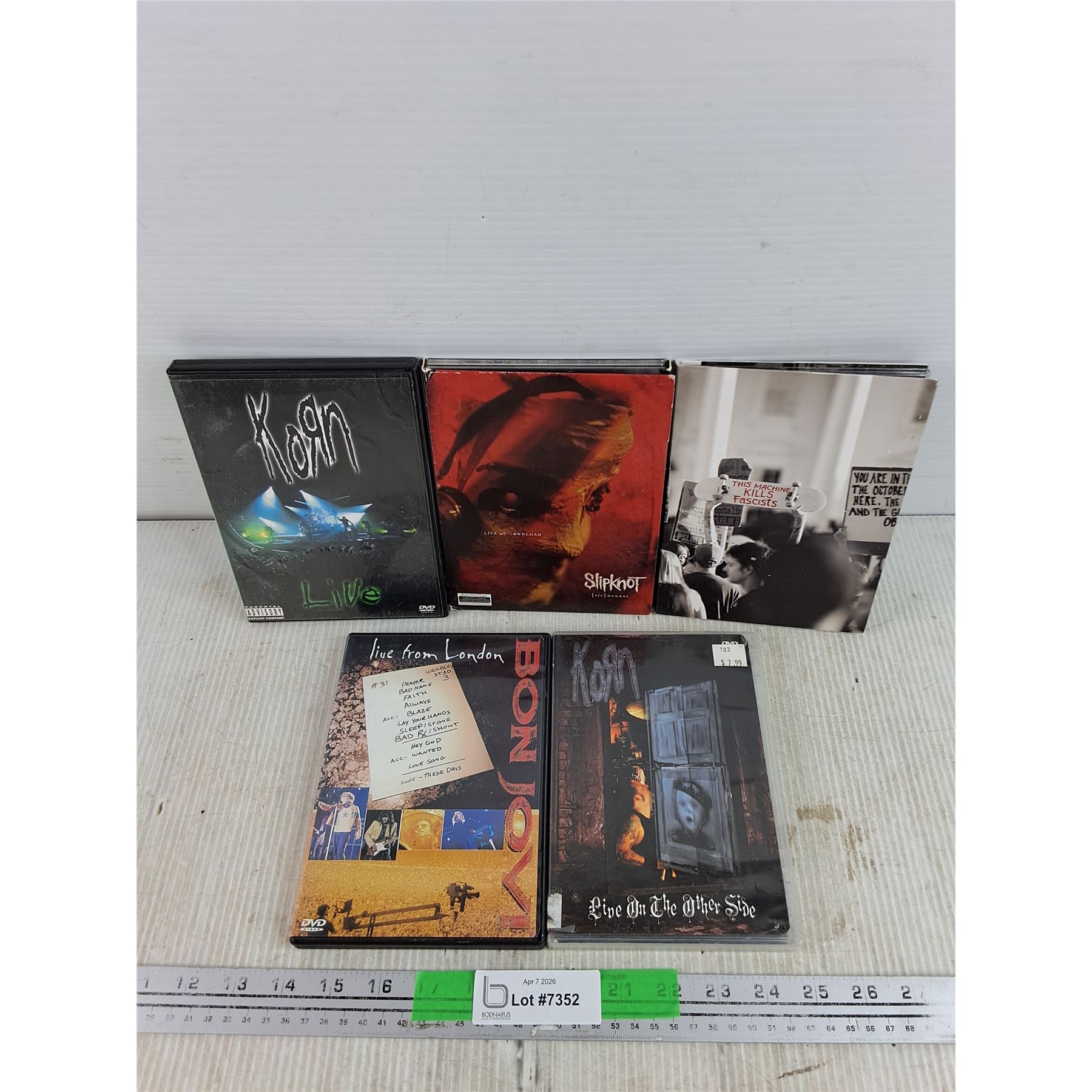Lot 7352 Assorted DVDs - Korn Live, Slipknot, Bon Jovi, Misc