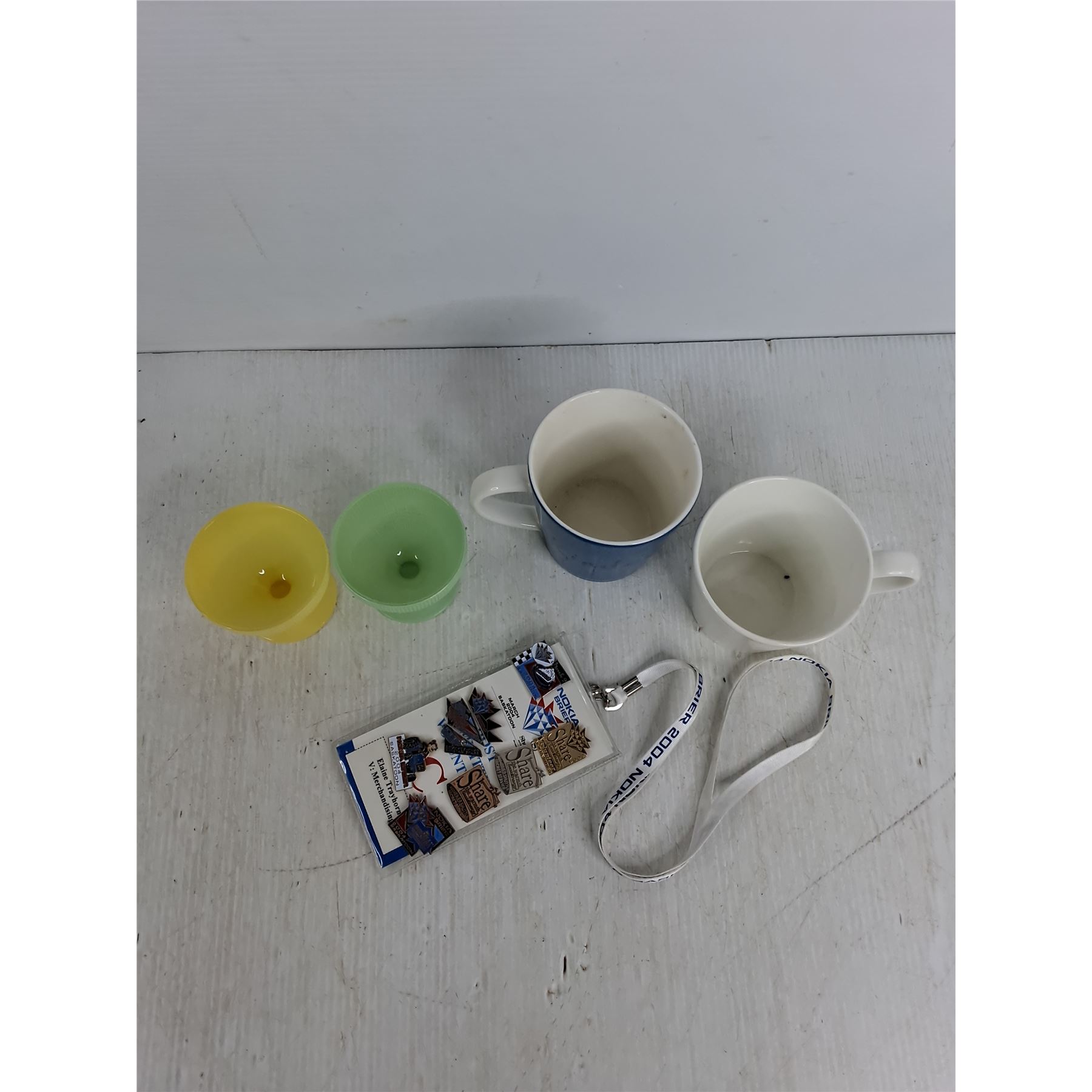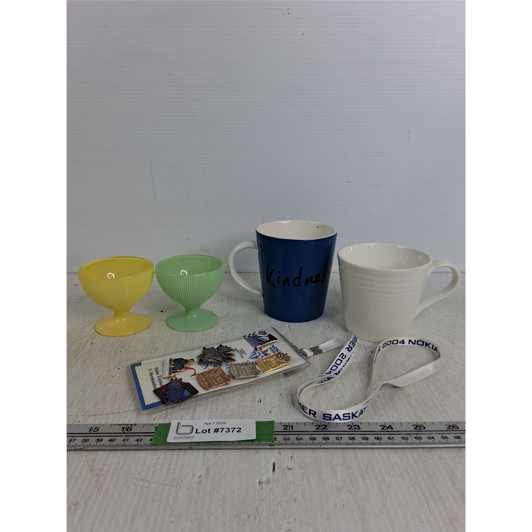 Lot 7372 (2) Mugs Up To Approx 4" Diameter, (2) Dessert Cups 3", Nokia Brier Pins