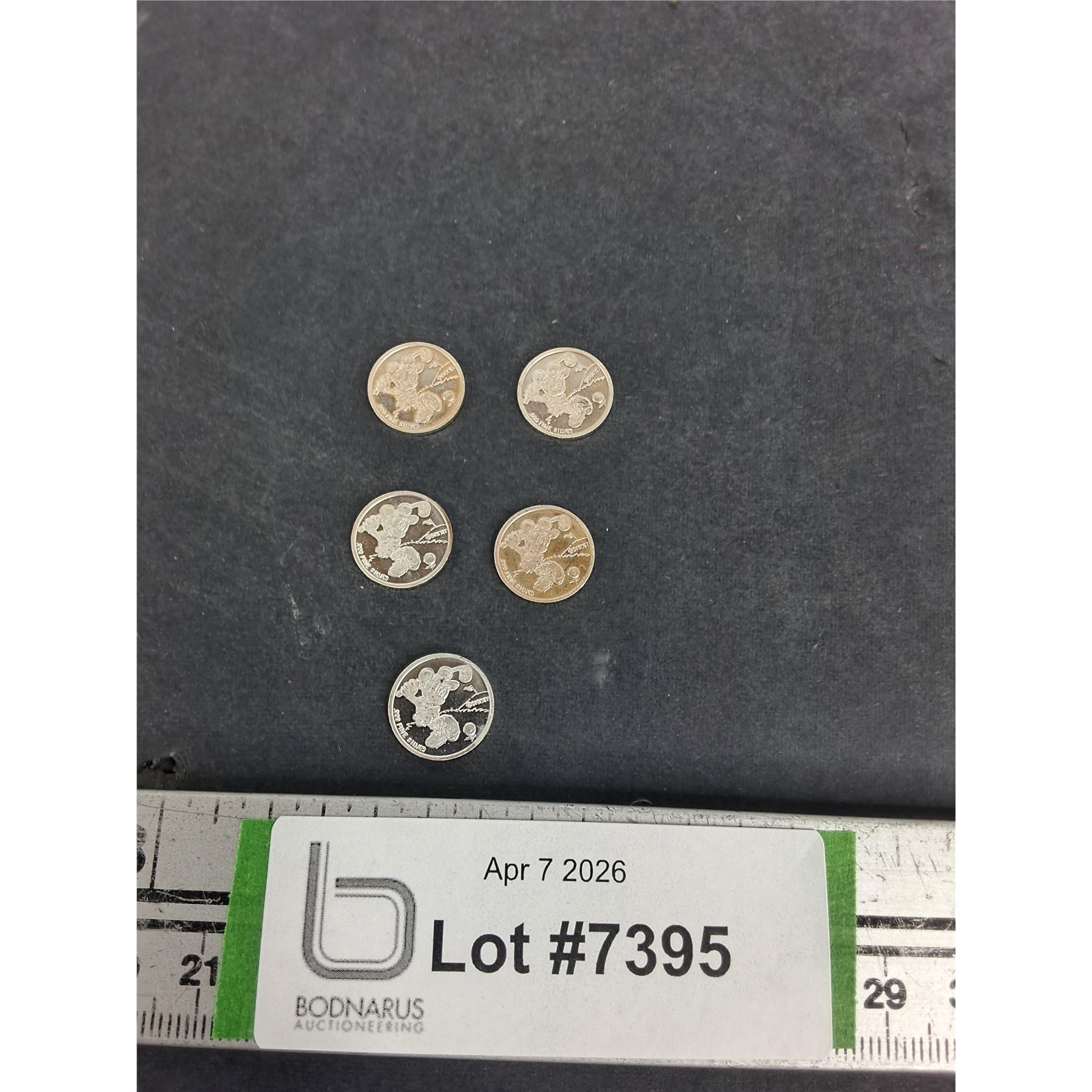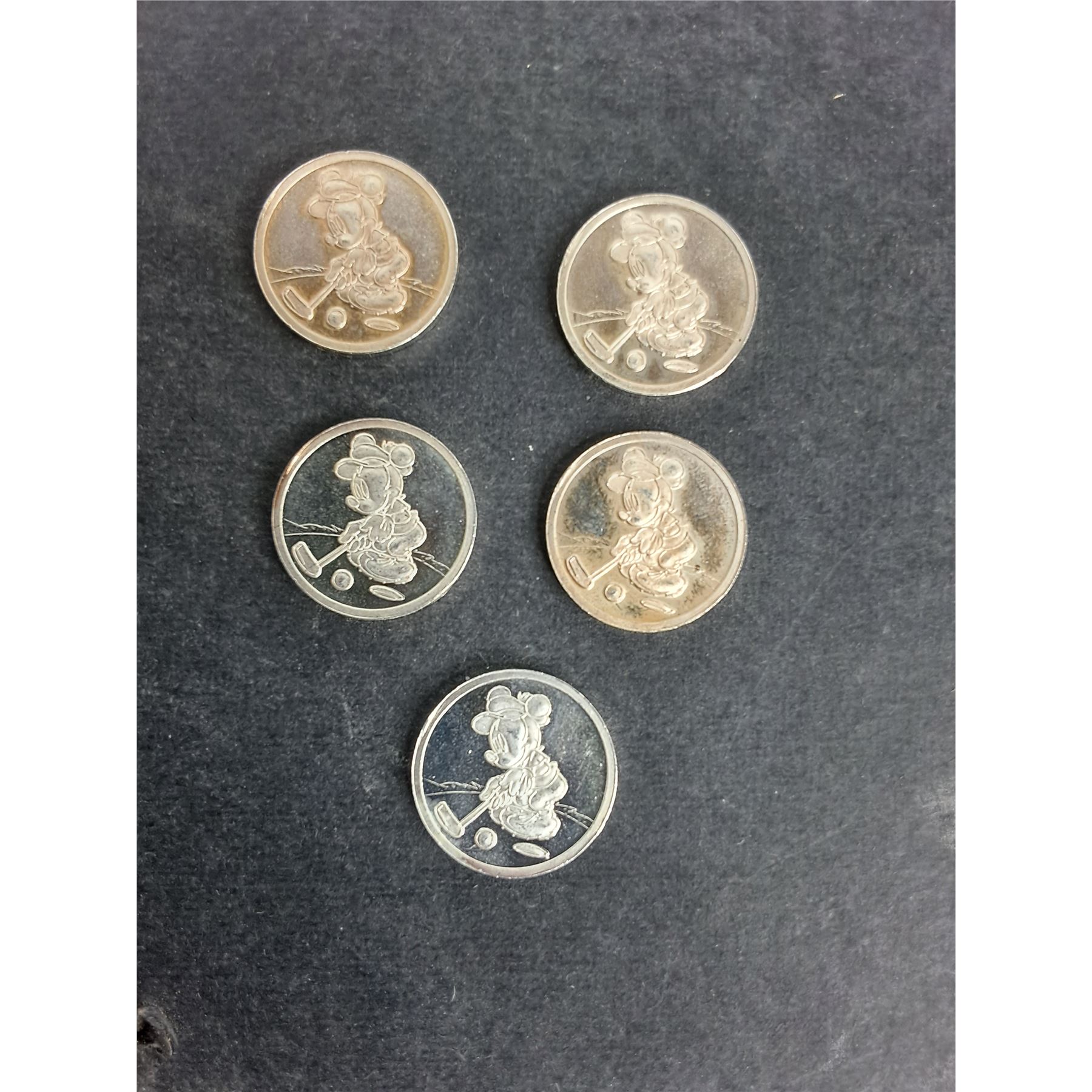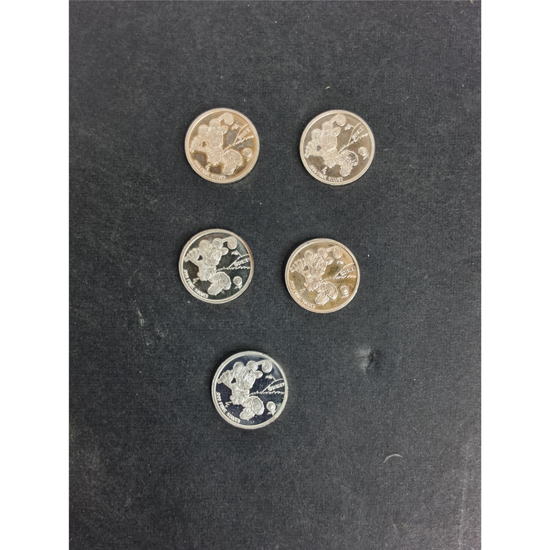 Lot 7395 (5) Mickey Mouse Coins - .999 Fine Silver-Cannot Guarantee Authenticity
