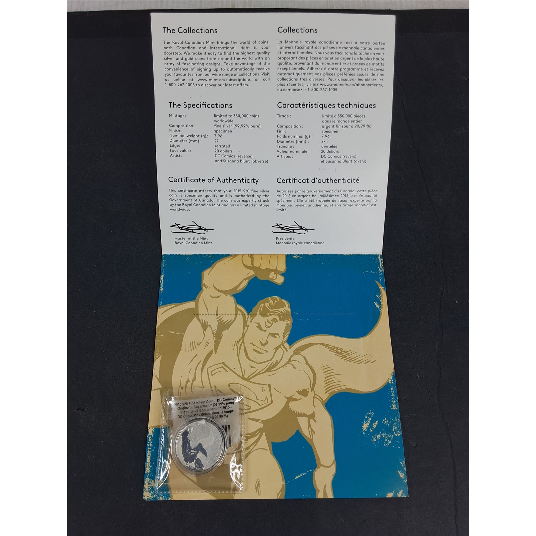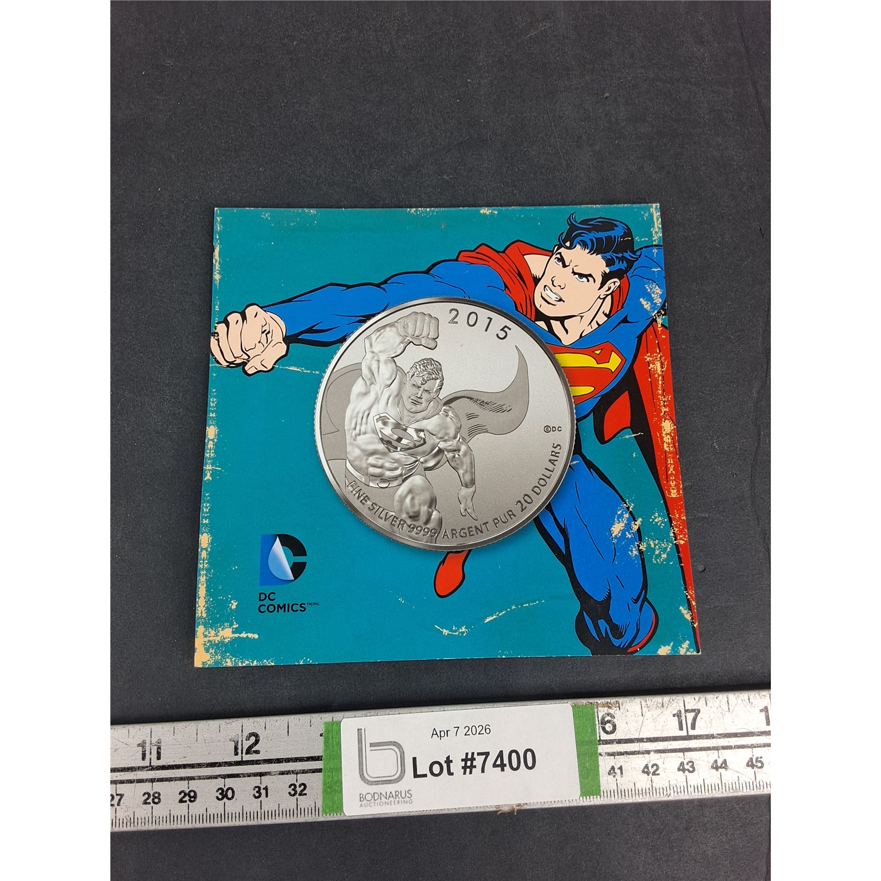 Lot 7400 2015 Superman Fine Silver 20 Dollar Coin- Cannot Authenticate