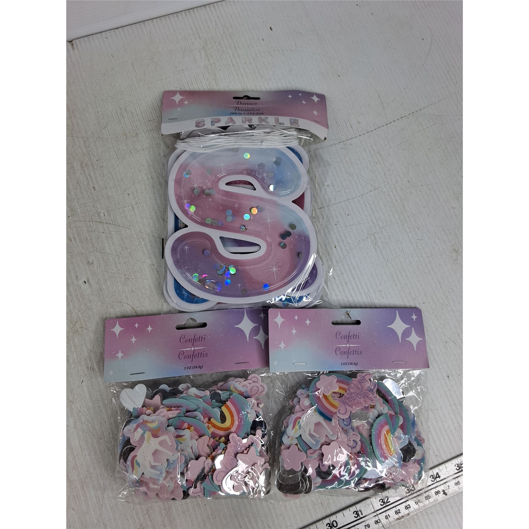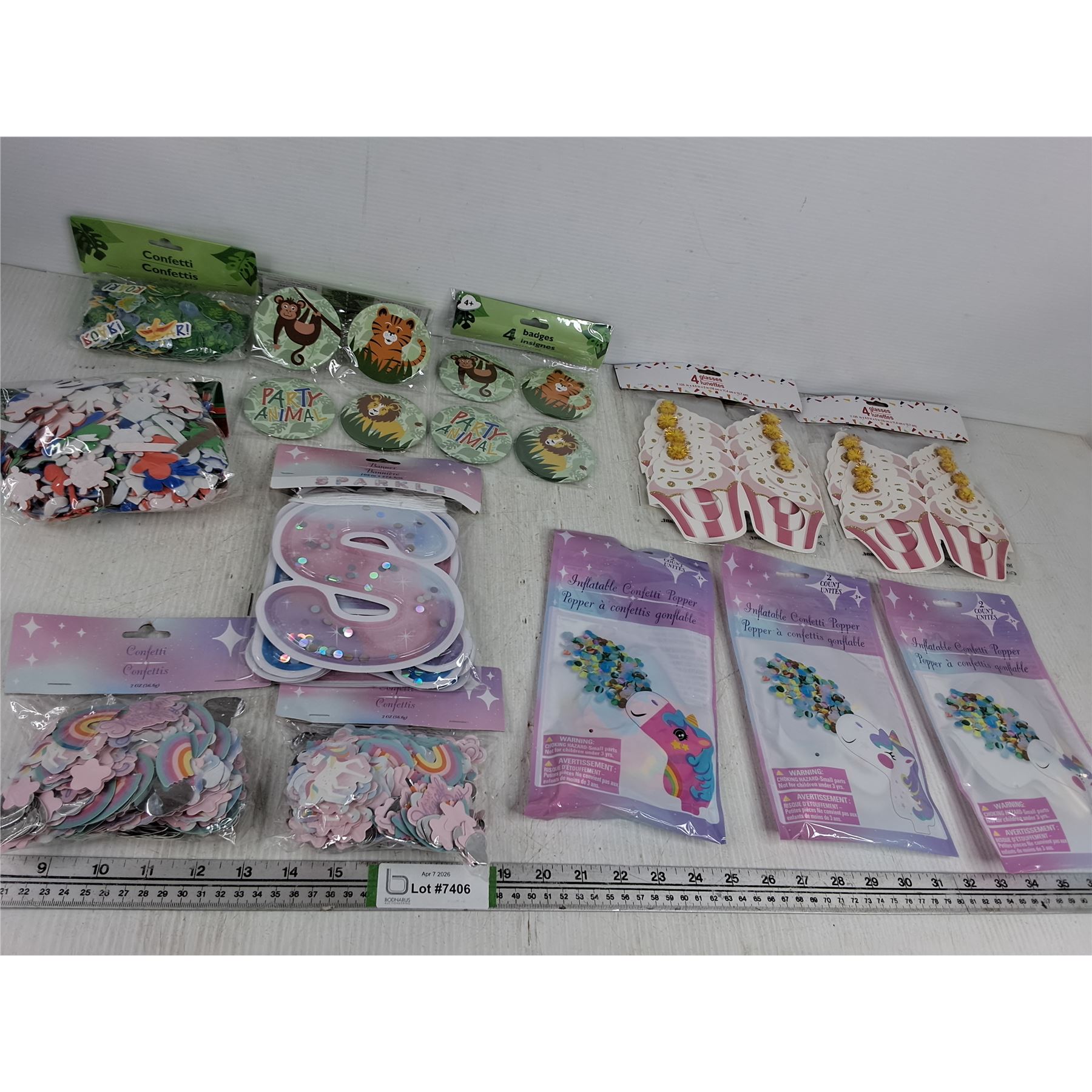 Lot 7406 Various Party Supplies- Confetti, Banner, Badges