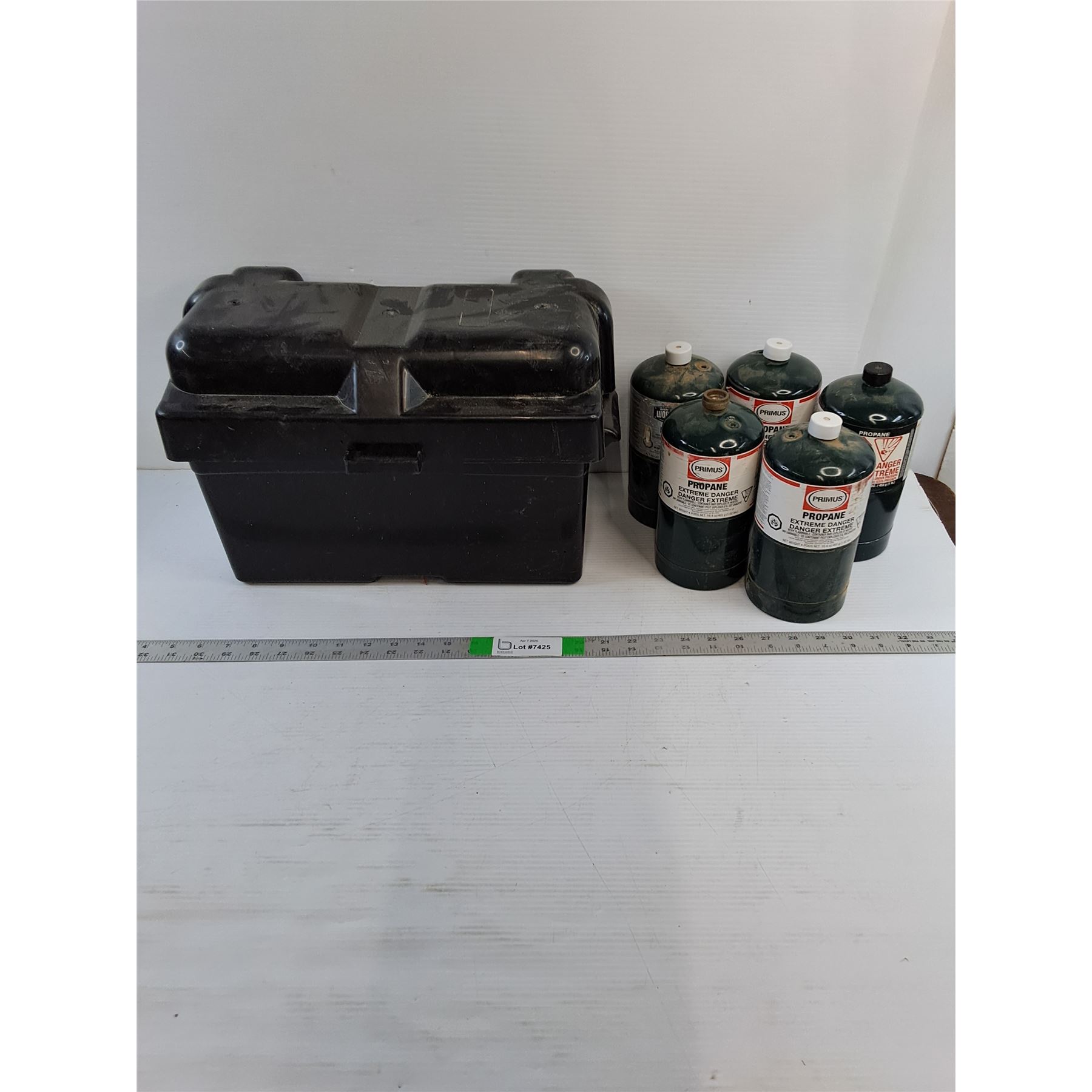 Lot 7425 (1) Marine Battery Box - 15" x 8" x 8" Deep (5) 1 LB. Propane Canisters - As Is -CANNOT SHIP