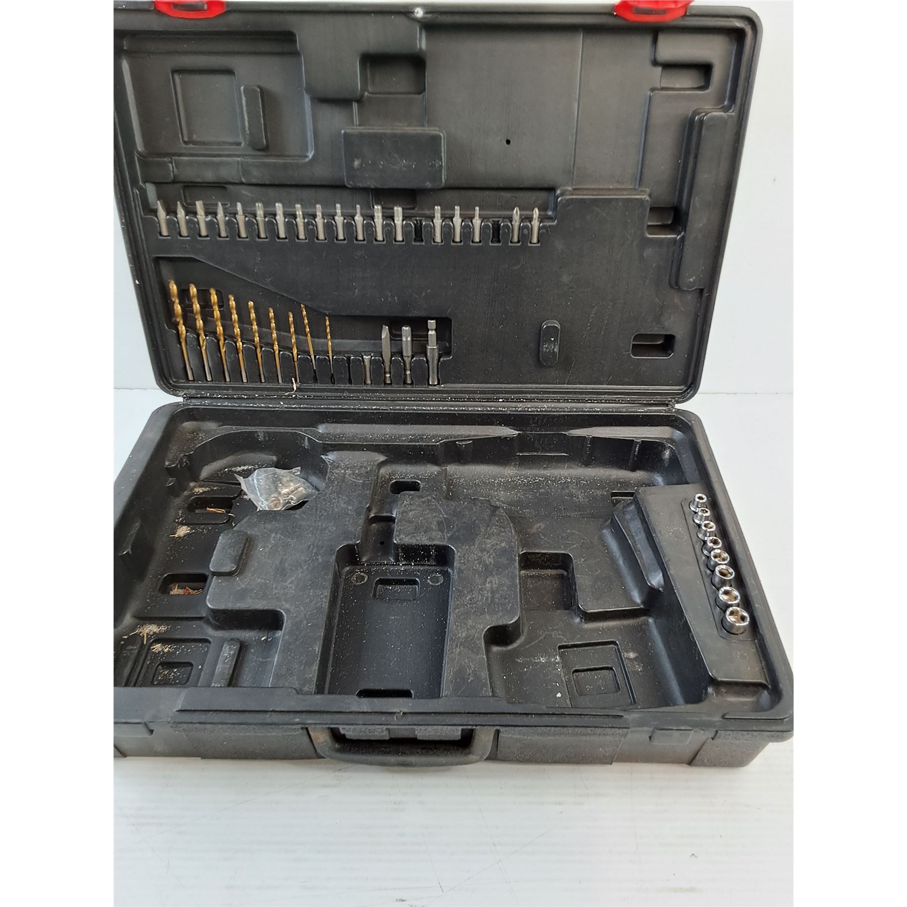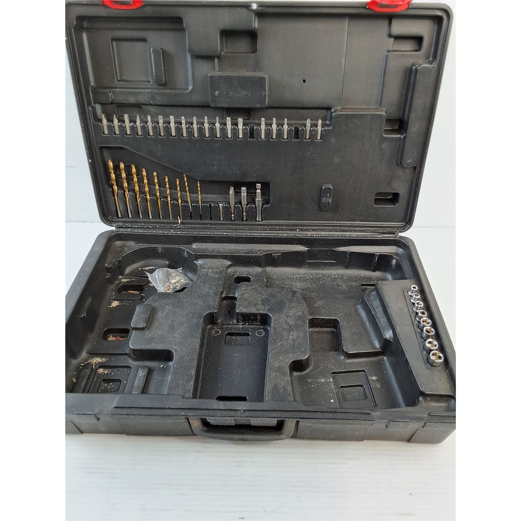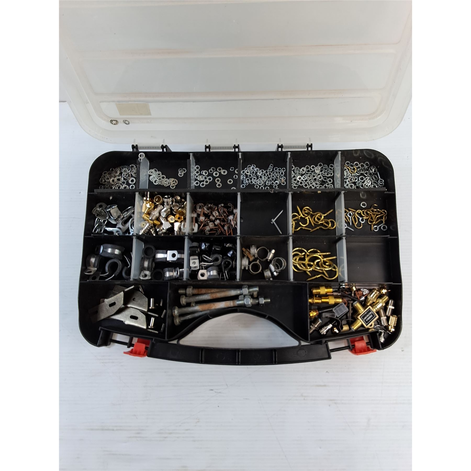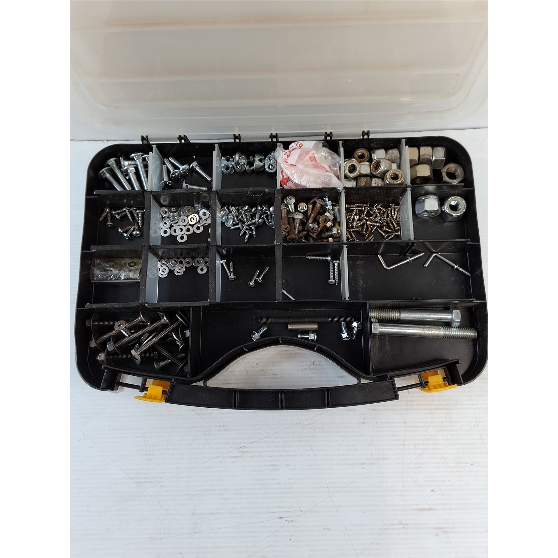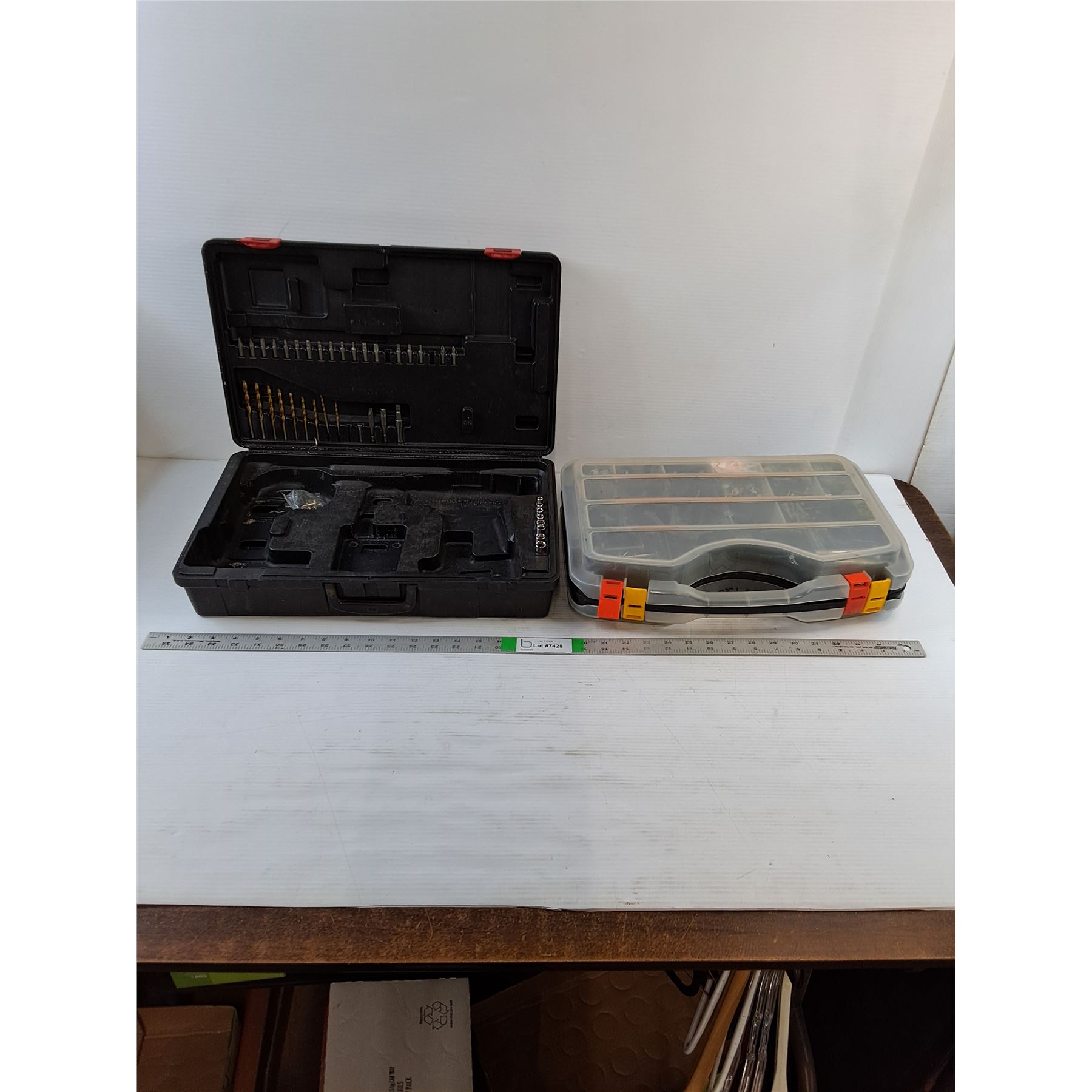 Lot 7428 (1) Handyman Drill Case - Case / Bits Only (1) Parts/Installers Case - Washers, Nuts, Hooks, Misc.