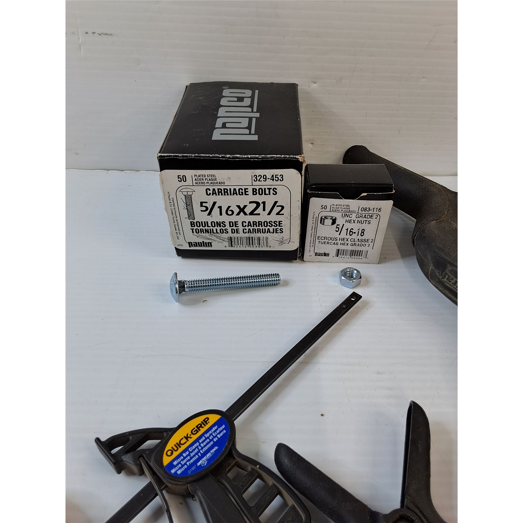 Lot 7438 Assorted Tools/Hardware - Clamps, Quick Grip, Carriage Bolts, Nuts
