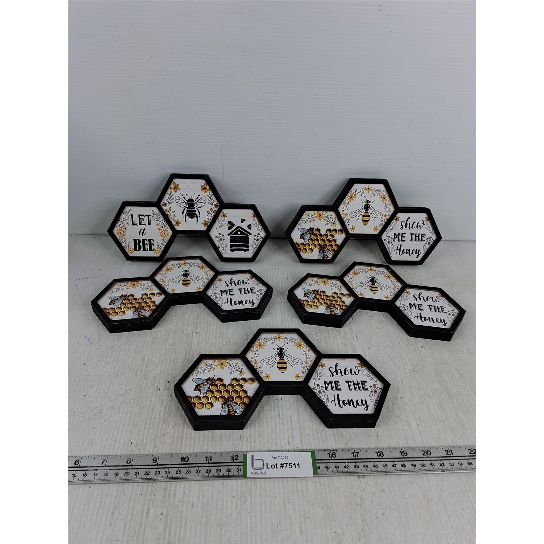 Lot 7511 (5) Bee Wooden Wall Decor - 10" x 5.5"