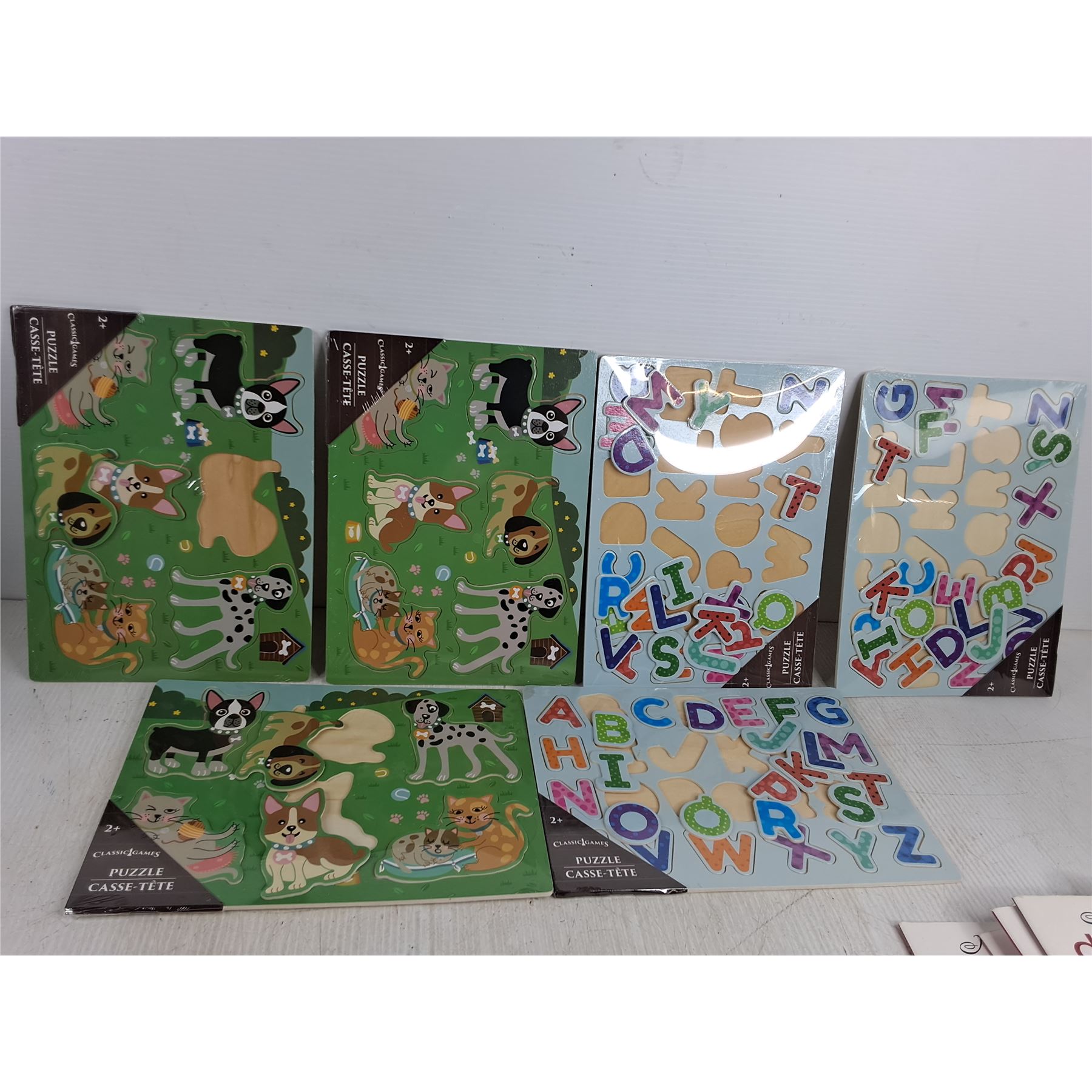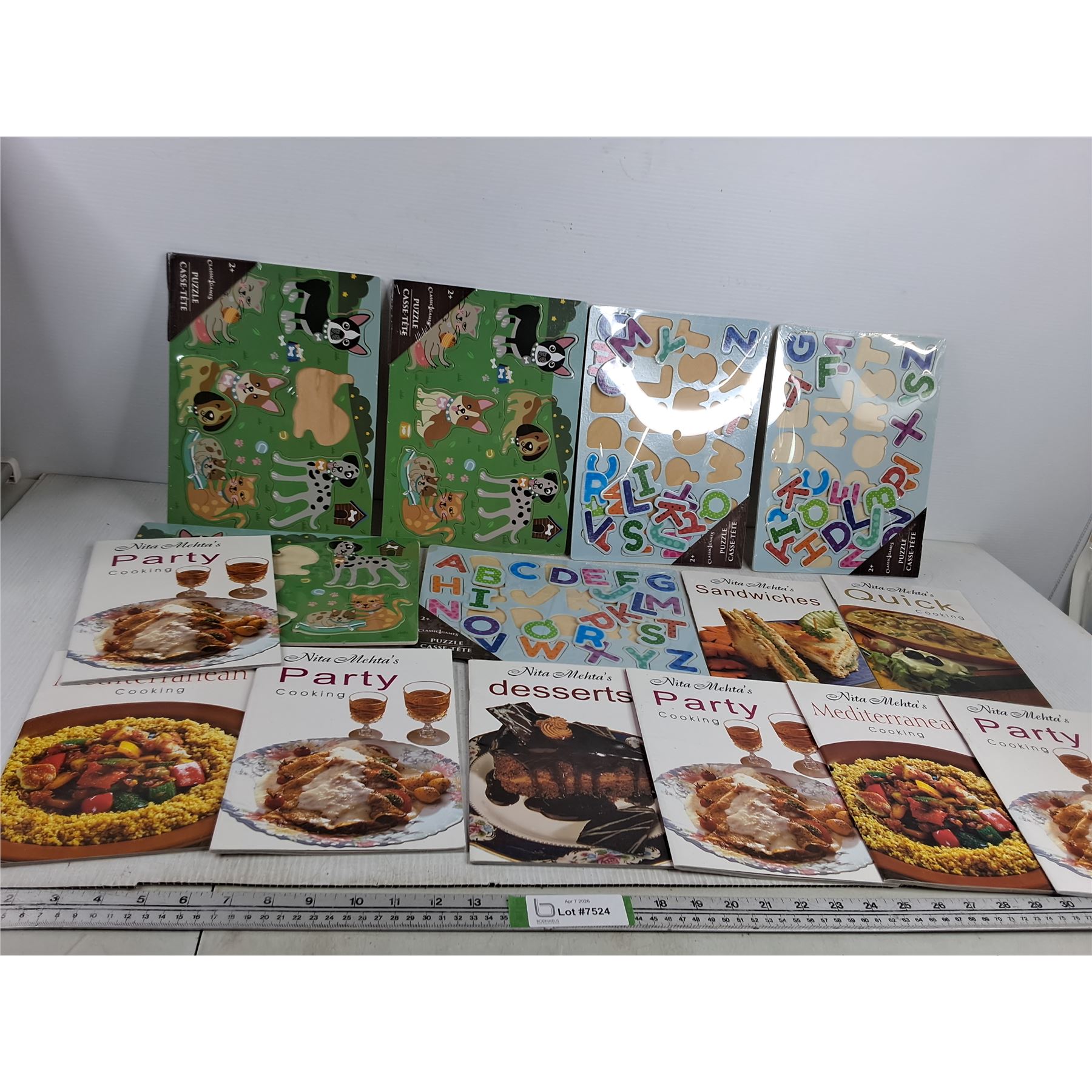 Lot 7524 (6) Wooden Children Puzzles & (9) Cooking Books