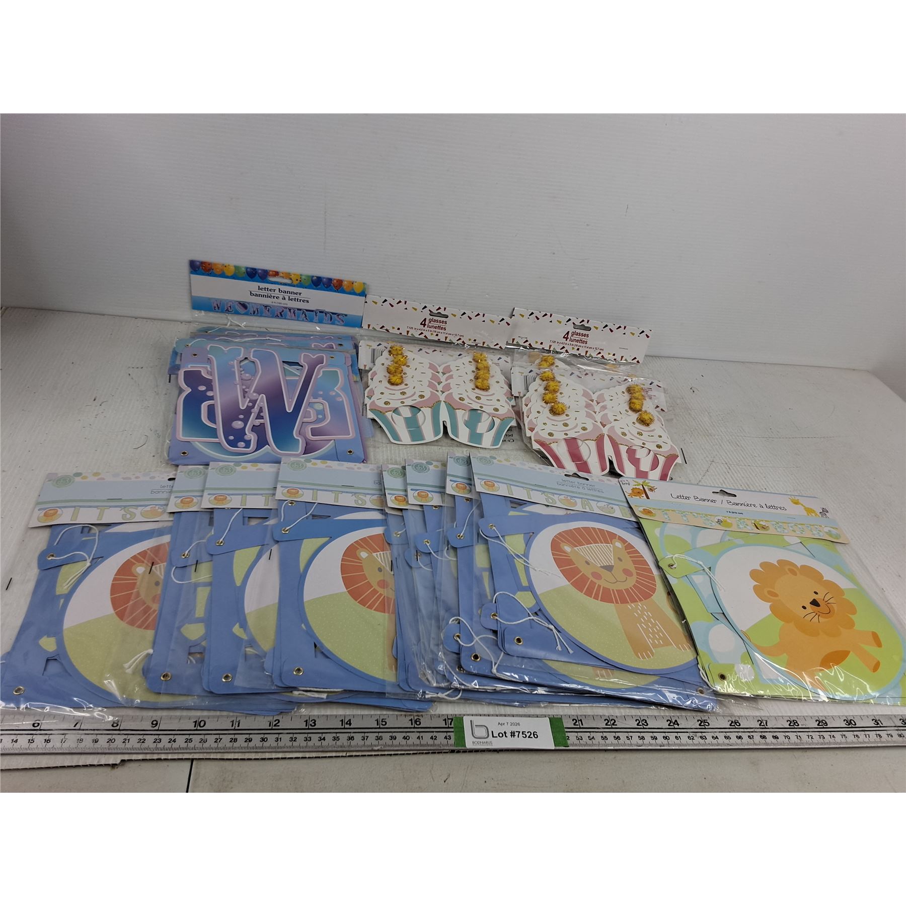 Lot 7526 Various Party Decor- Letter Banners, Glasses