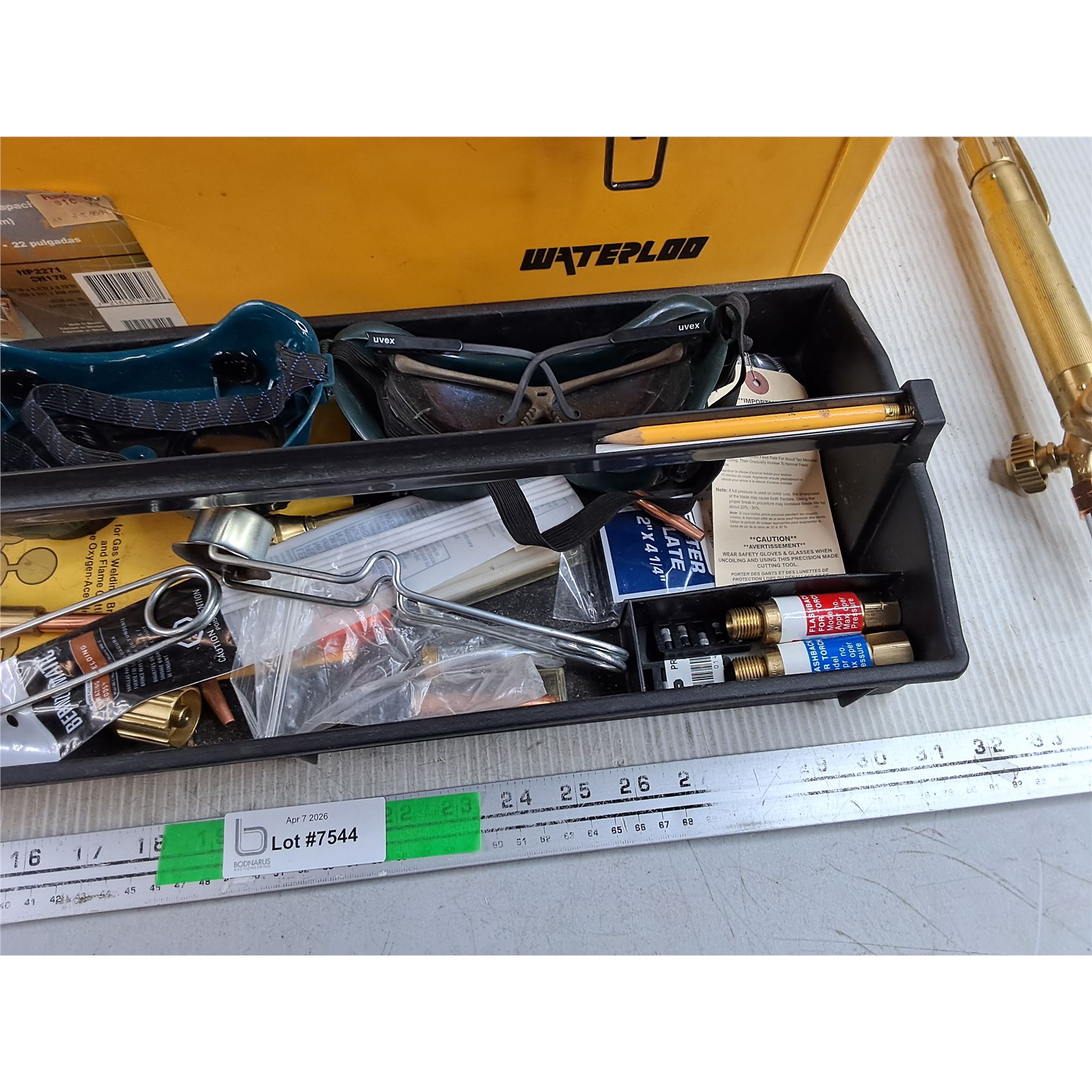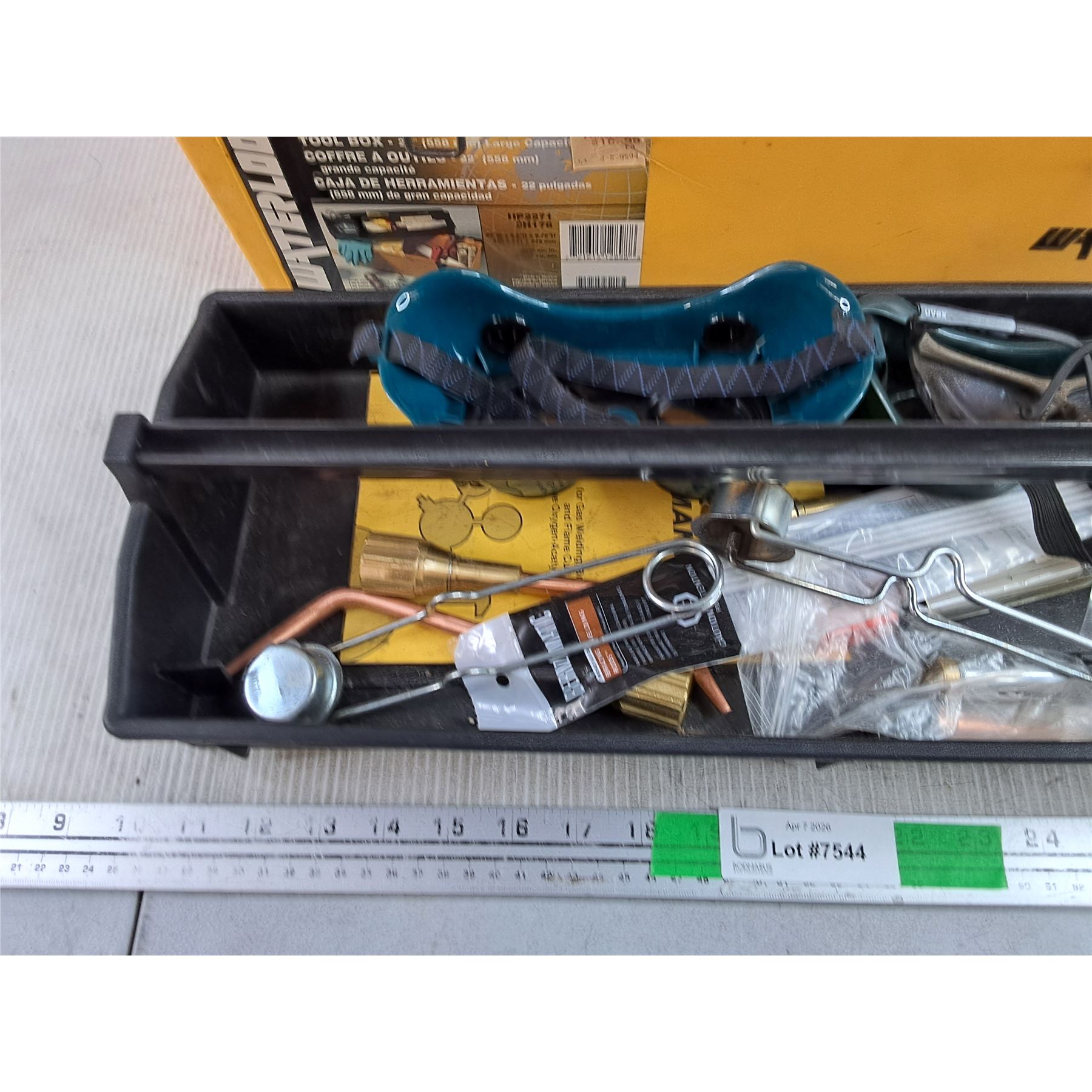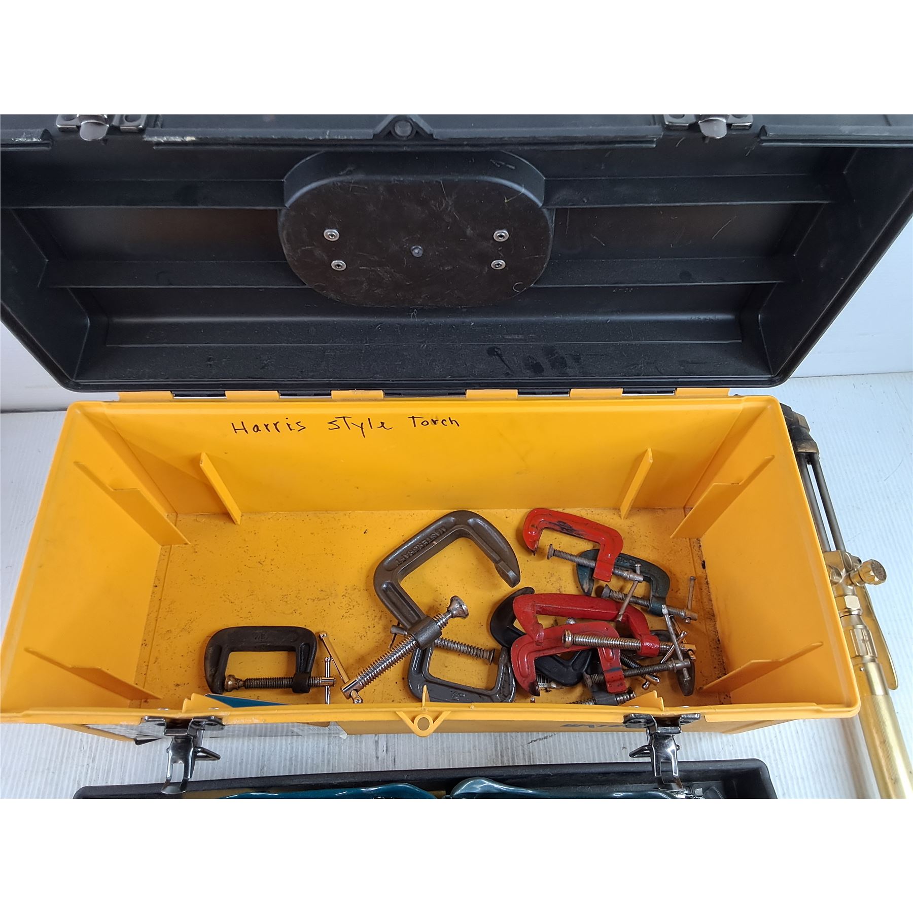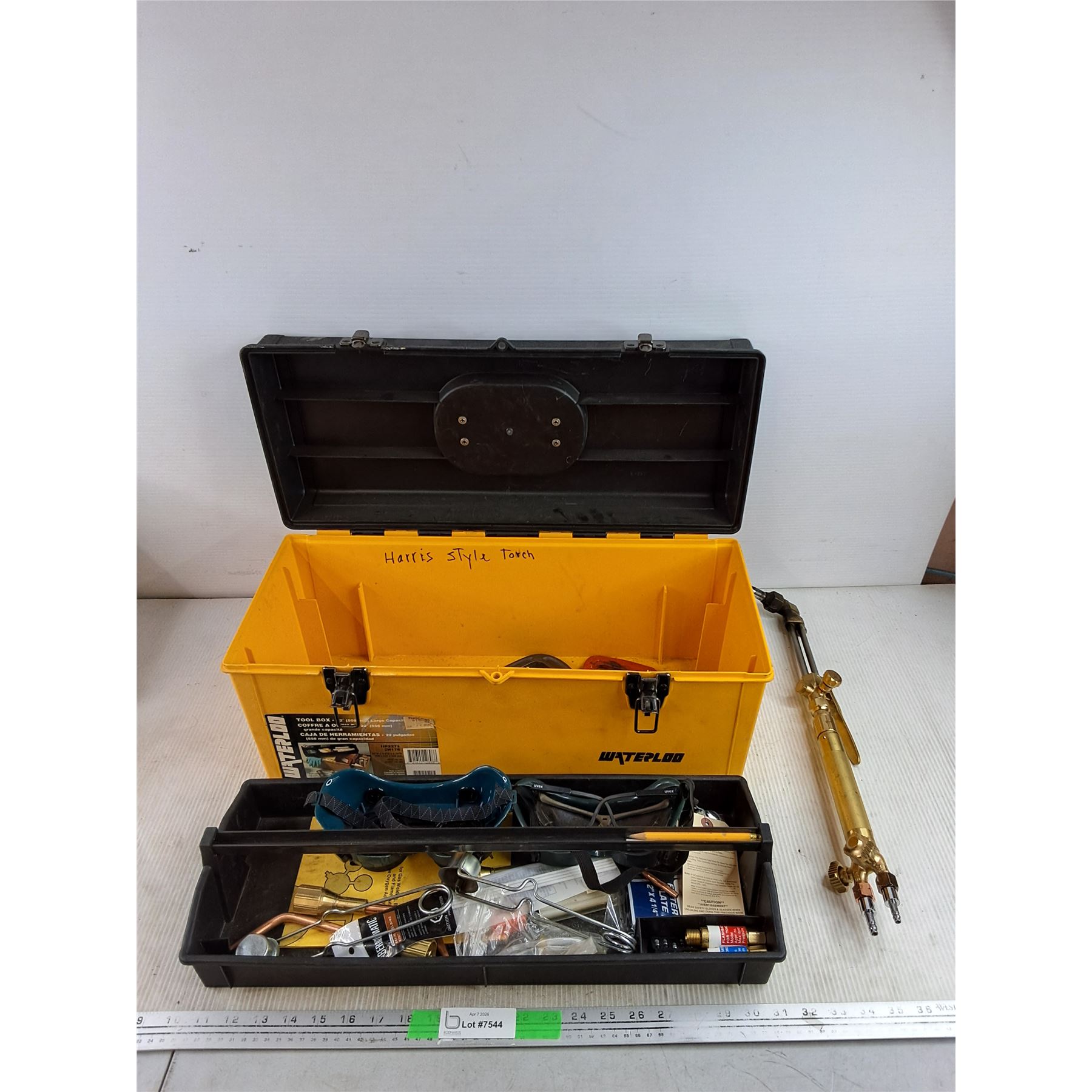 Lot 7544 Waterloo Plastic Tool Box, Torch, Safety Goggles, C Clamps, Misc - PICK UP