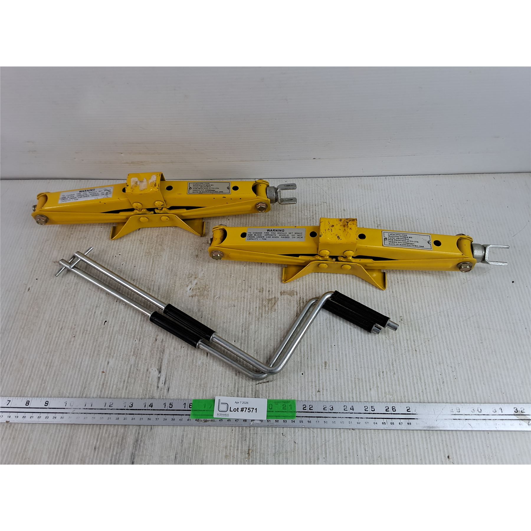 Lot 7571 (2) 1 Ton Scissor Car Jacks, PICKUP ONLY