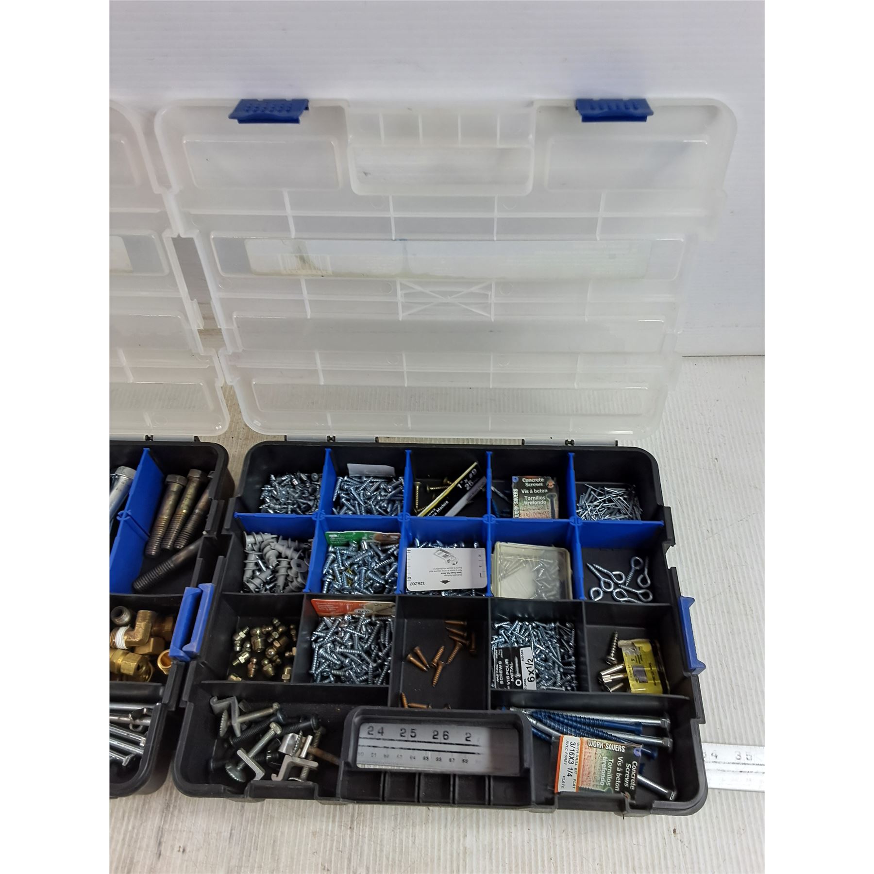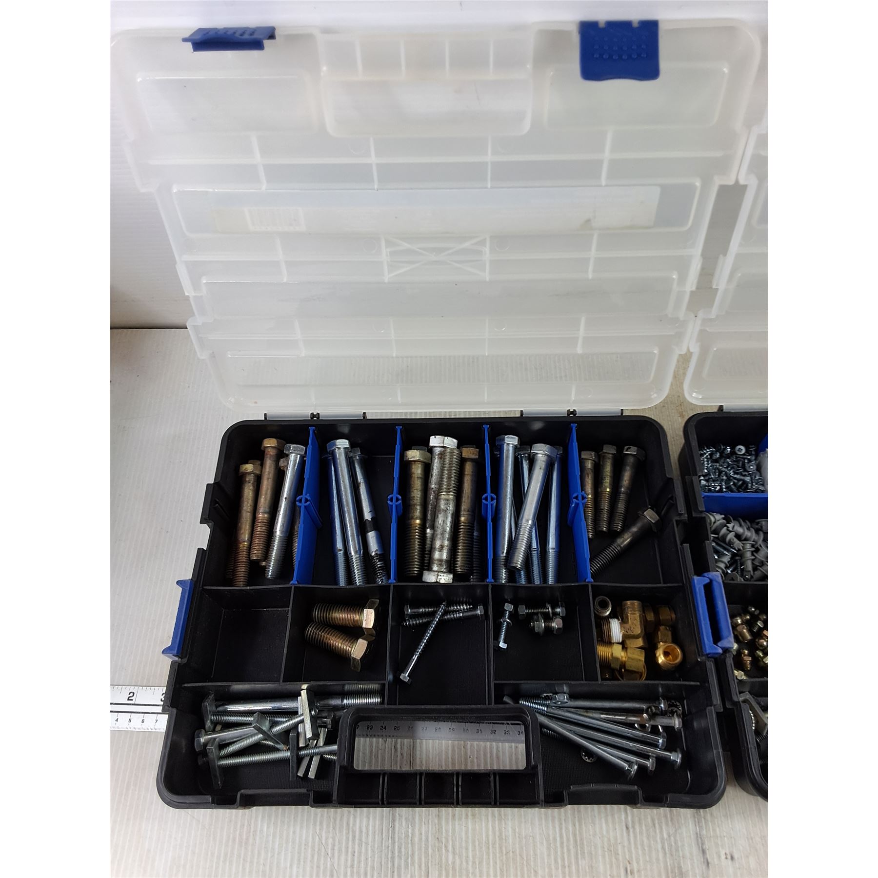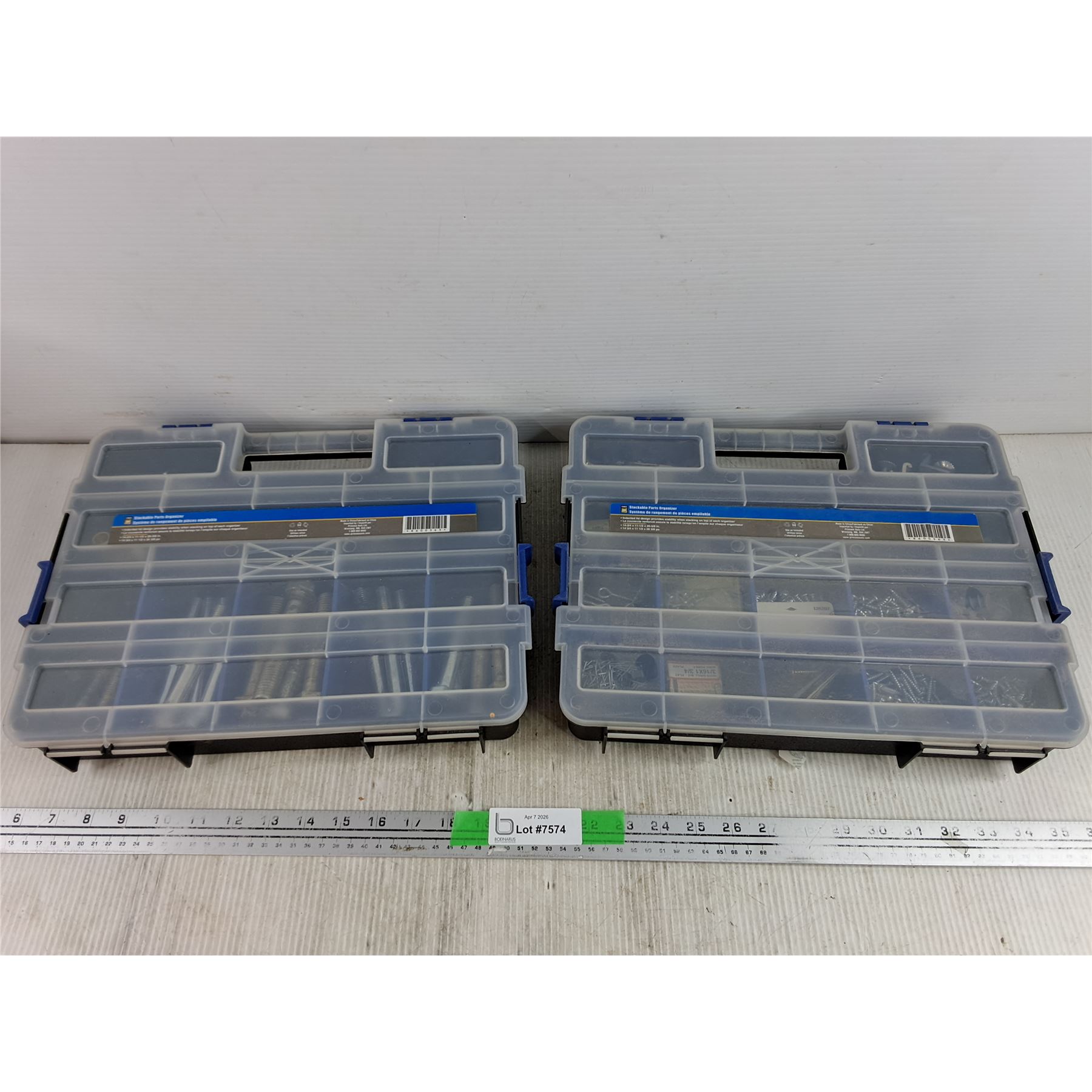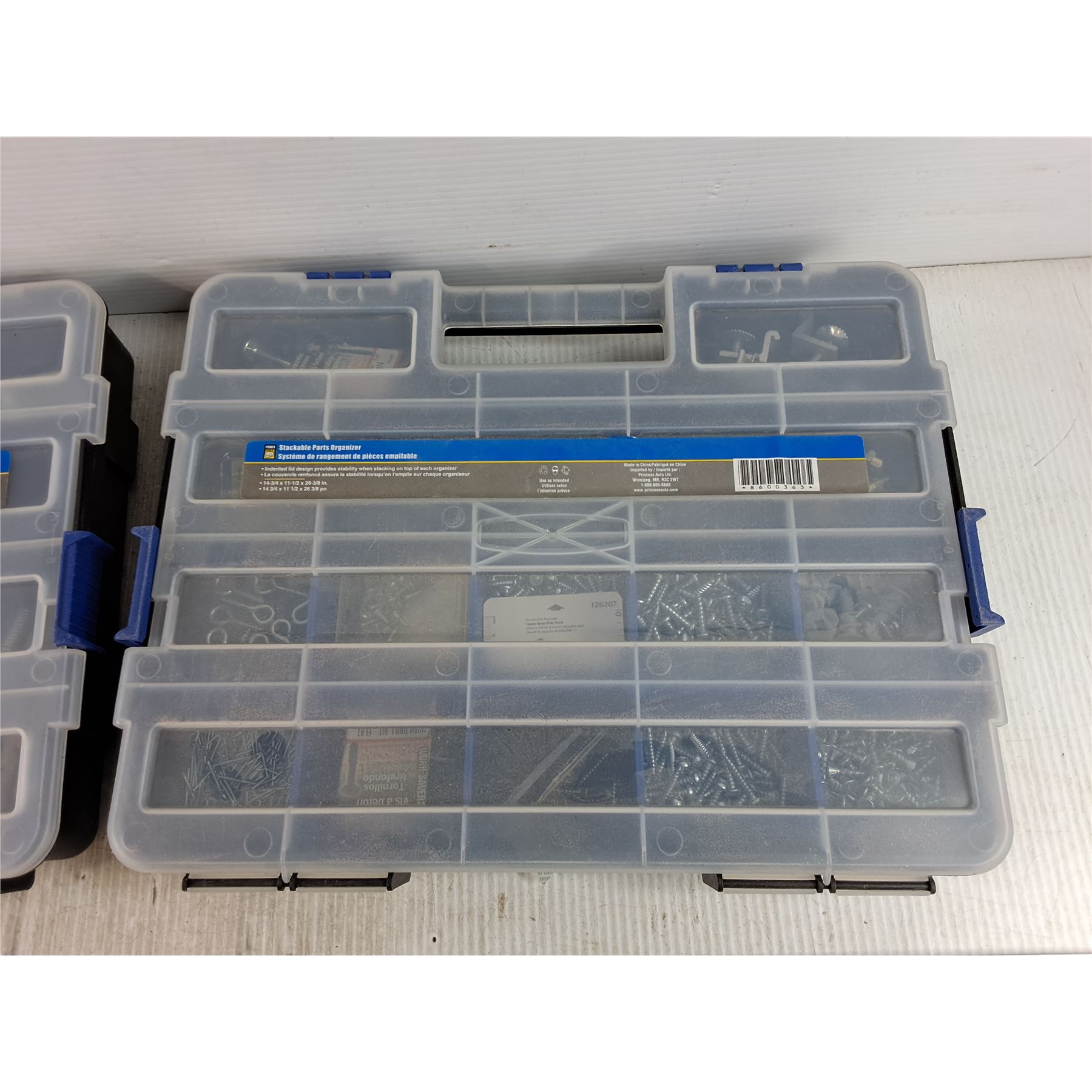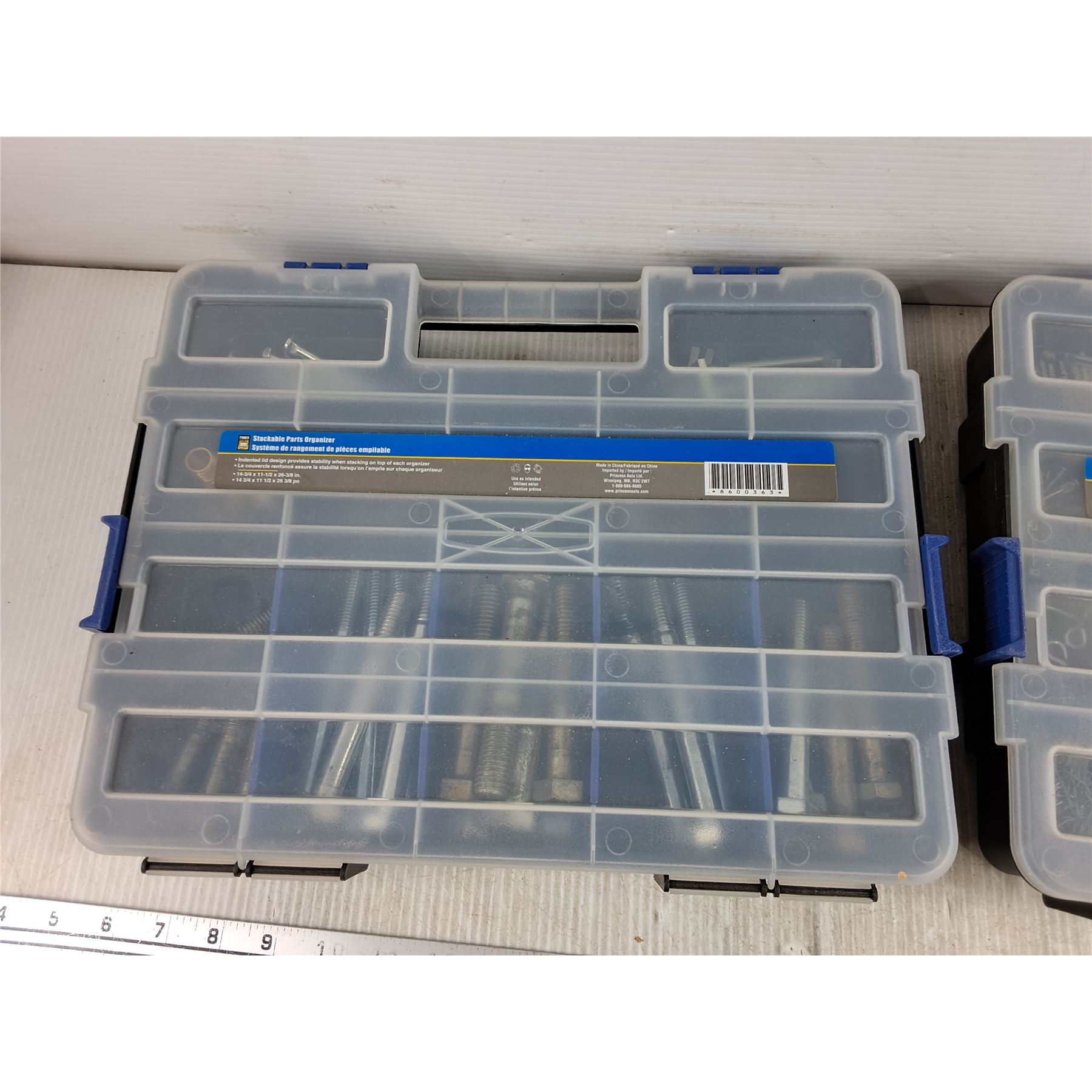 Lot 7574 (2) Power Fist Stackable Parts Organizers & Assorted Hardware