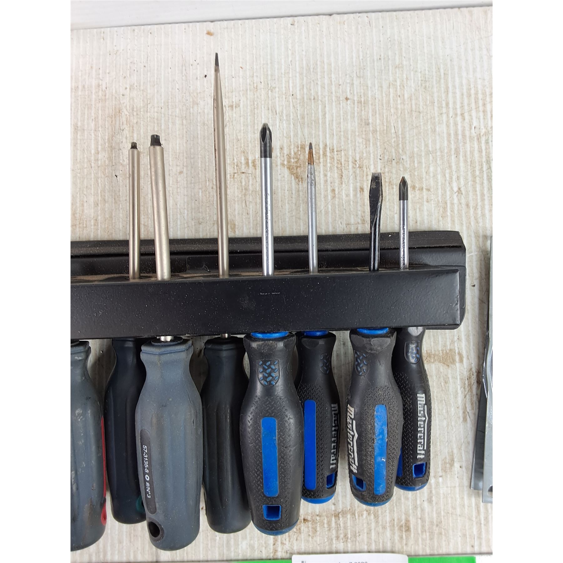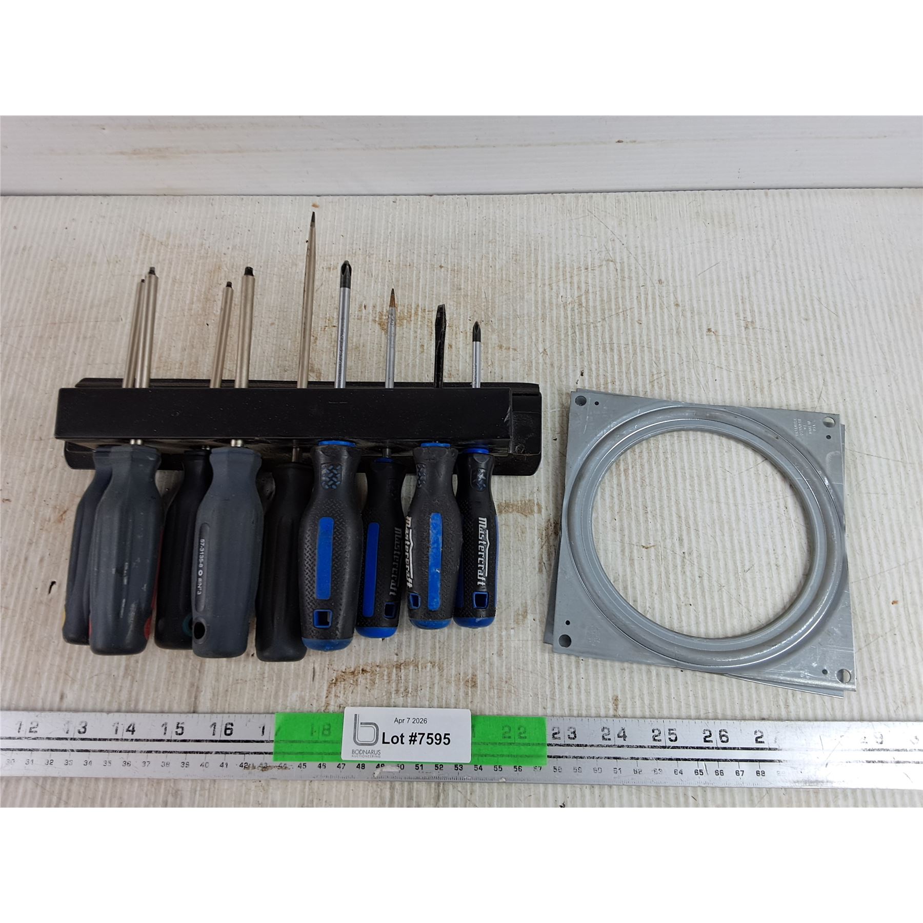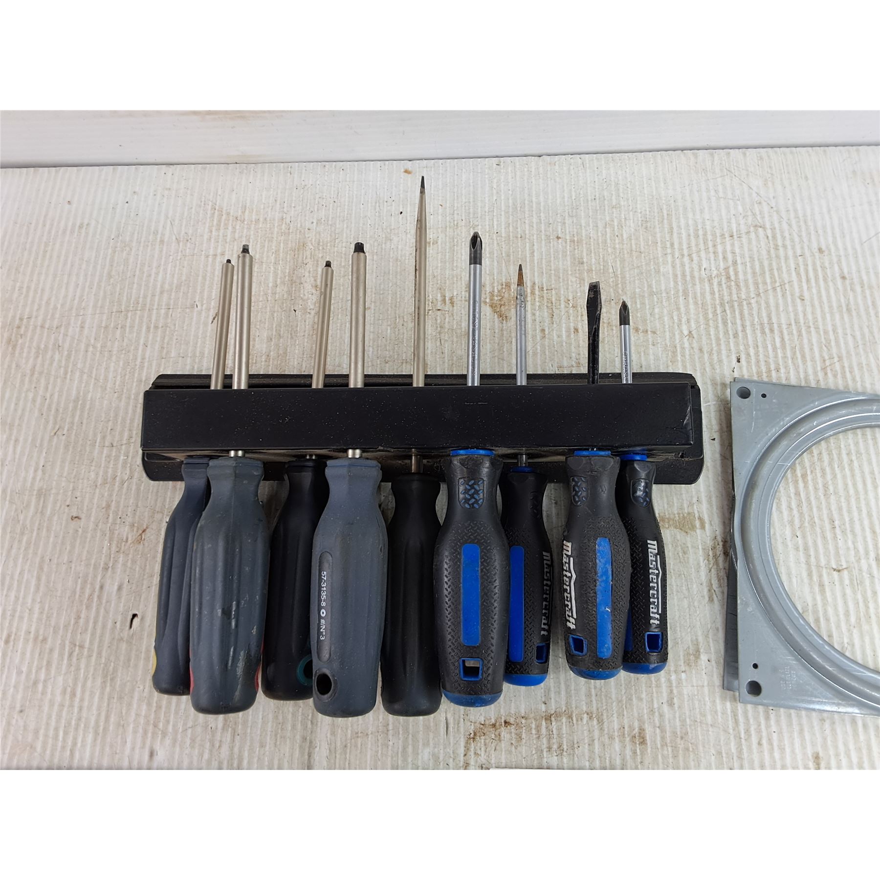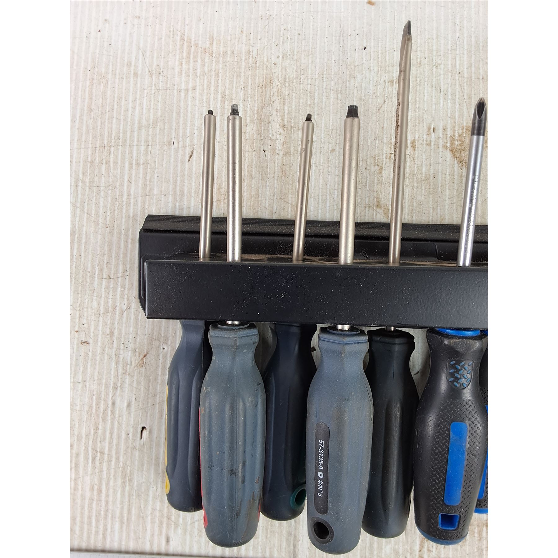 Lot 7595 Assorted Screwdrivers, Magnetic Wall Screwdriver Rack, Swivel Bracket