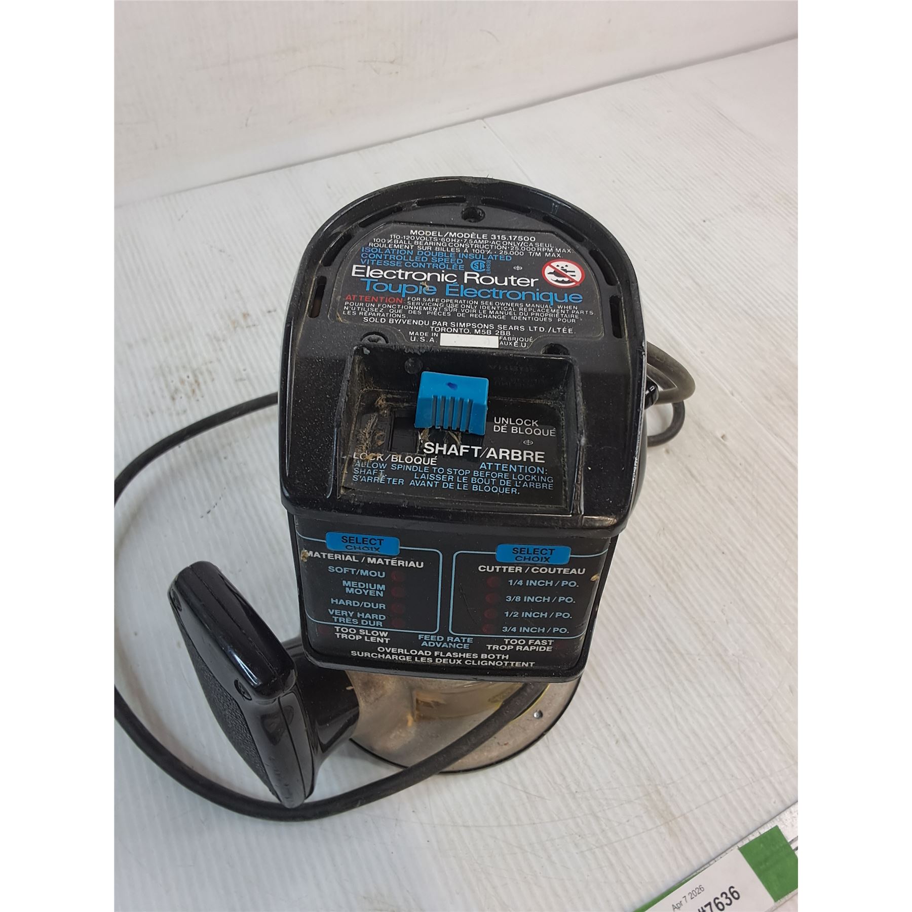 Lot 7636 Craftsman Electronic Router (powers on) - PICK UP
