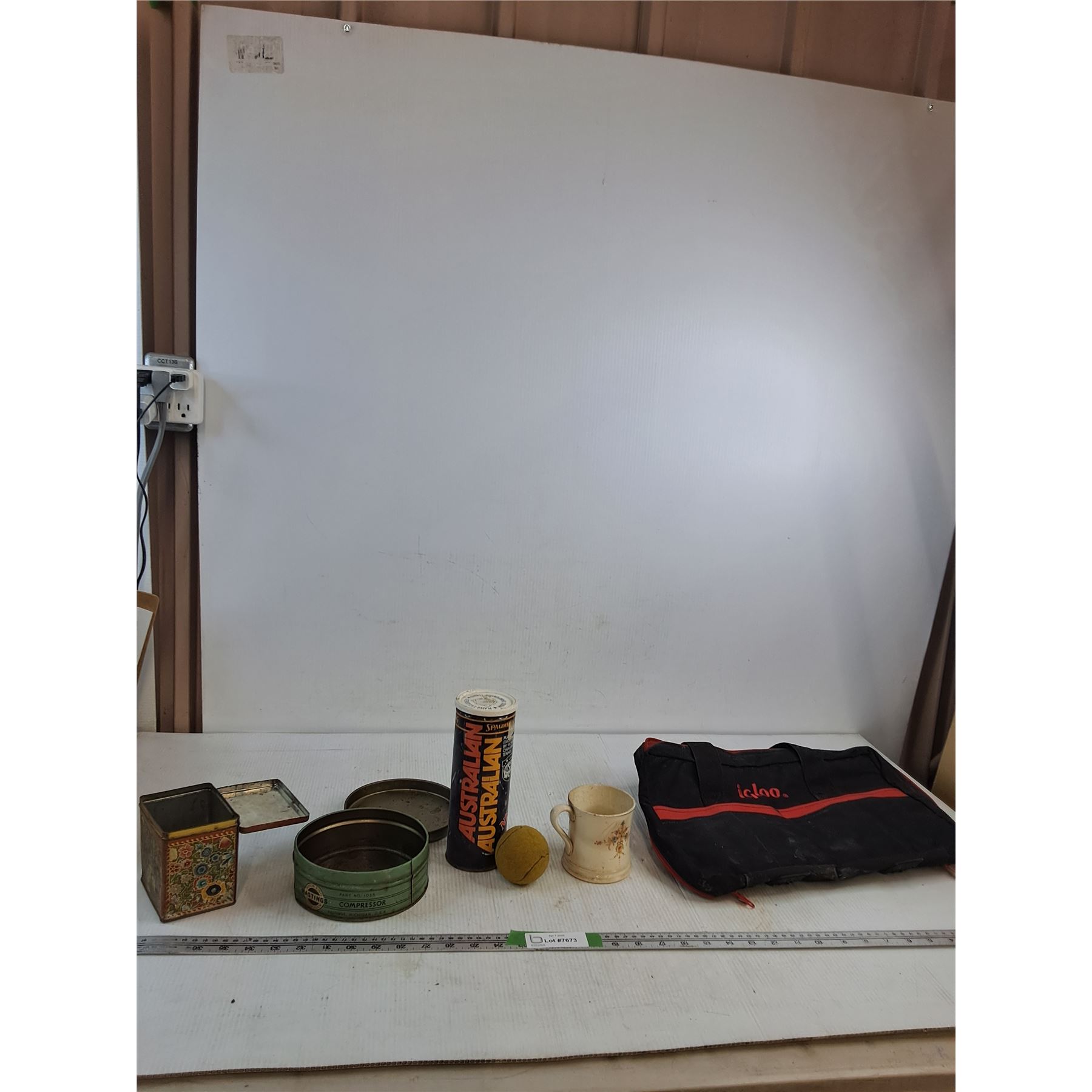 Lot 7673 Vintage Tins, Tennis Balls, Mug, Igloo Screwdriver Bag