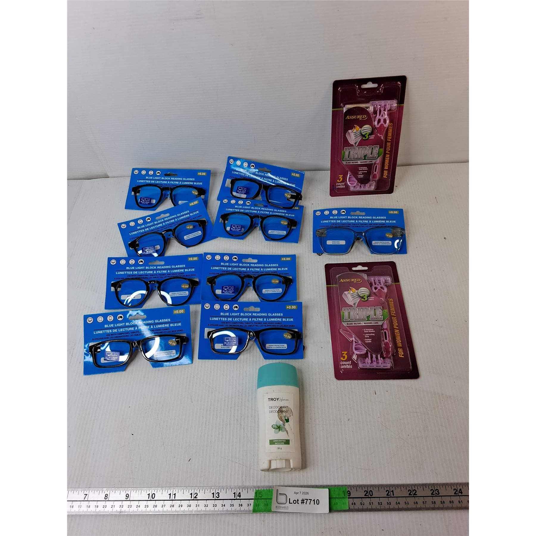 Lot 7710 Blue Light Glasses, Women's Triple Blade Razors & Deodorant