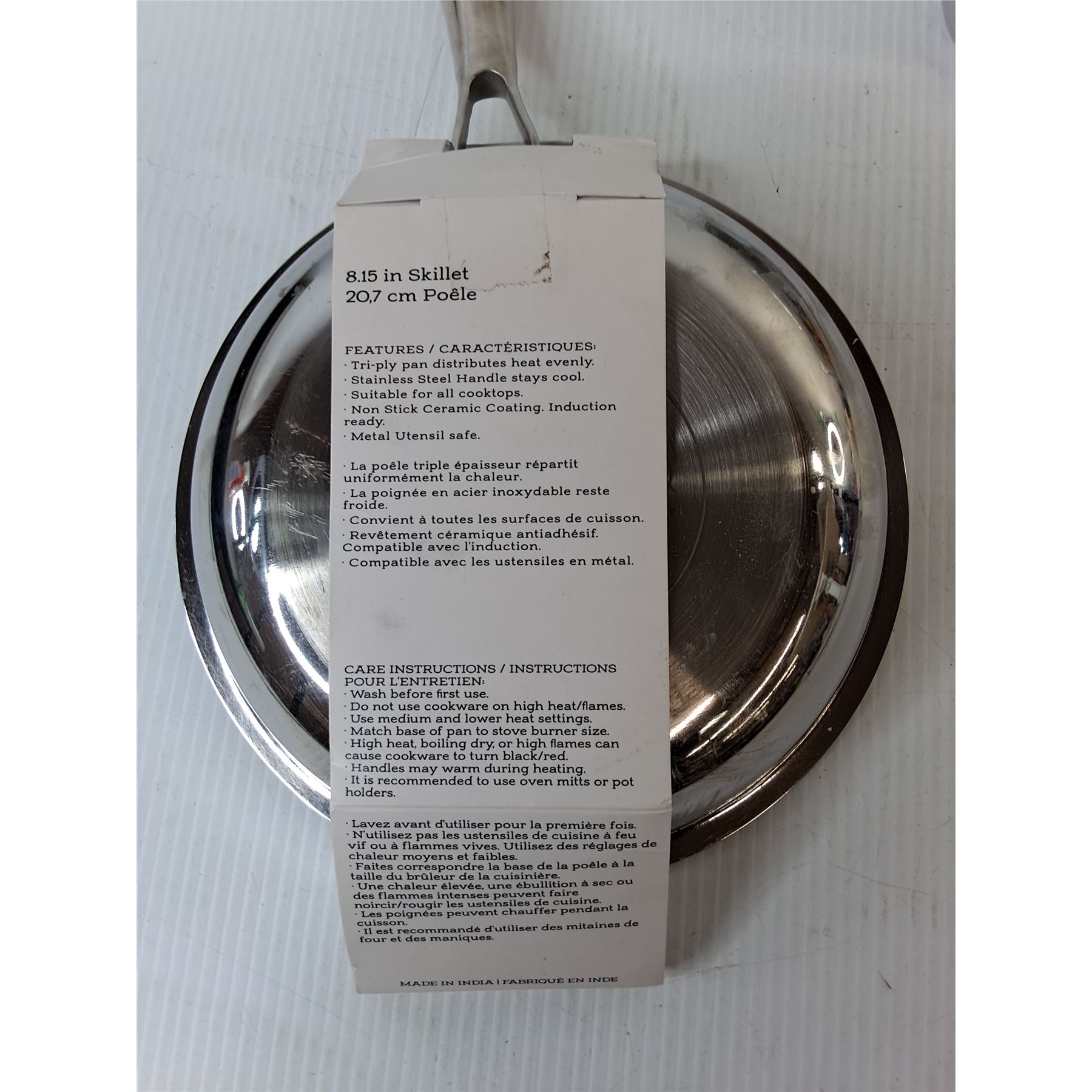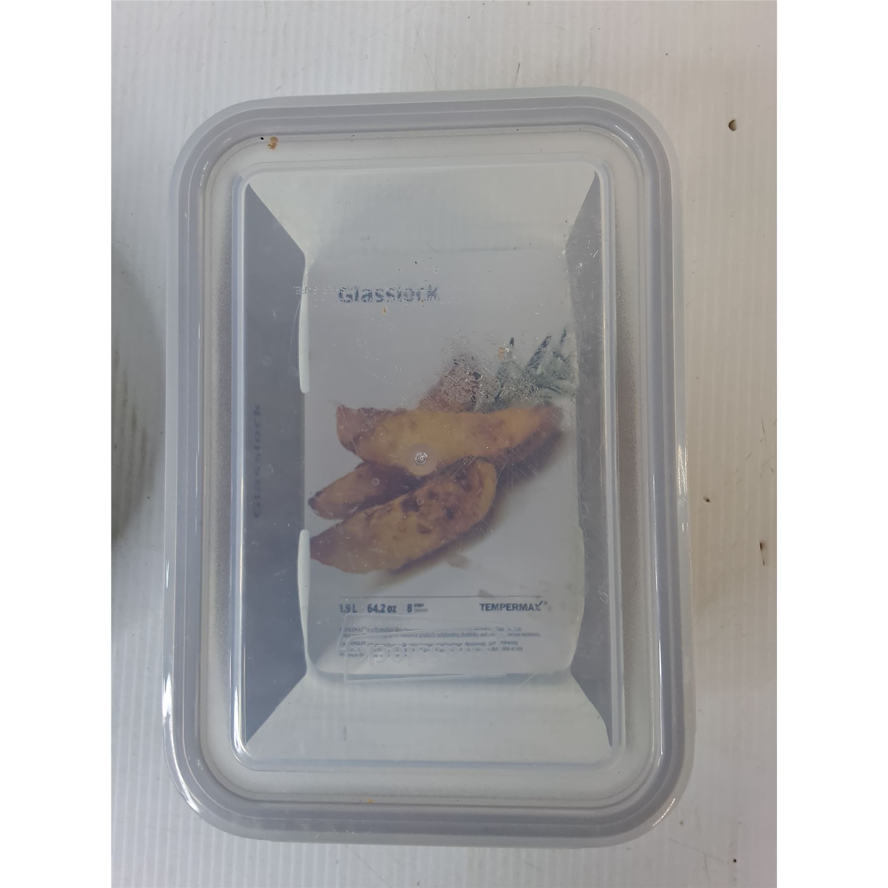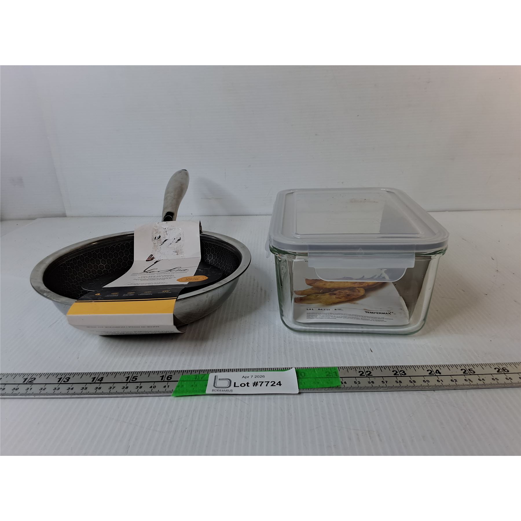 Lot 7724 Glass Food Container 8.25" x 5.75" x 3.5" & Stainless Steel Skillet