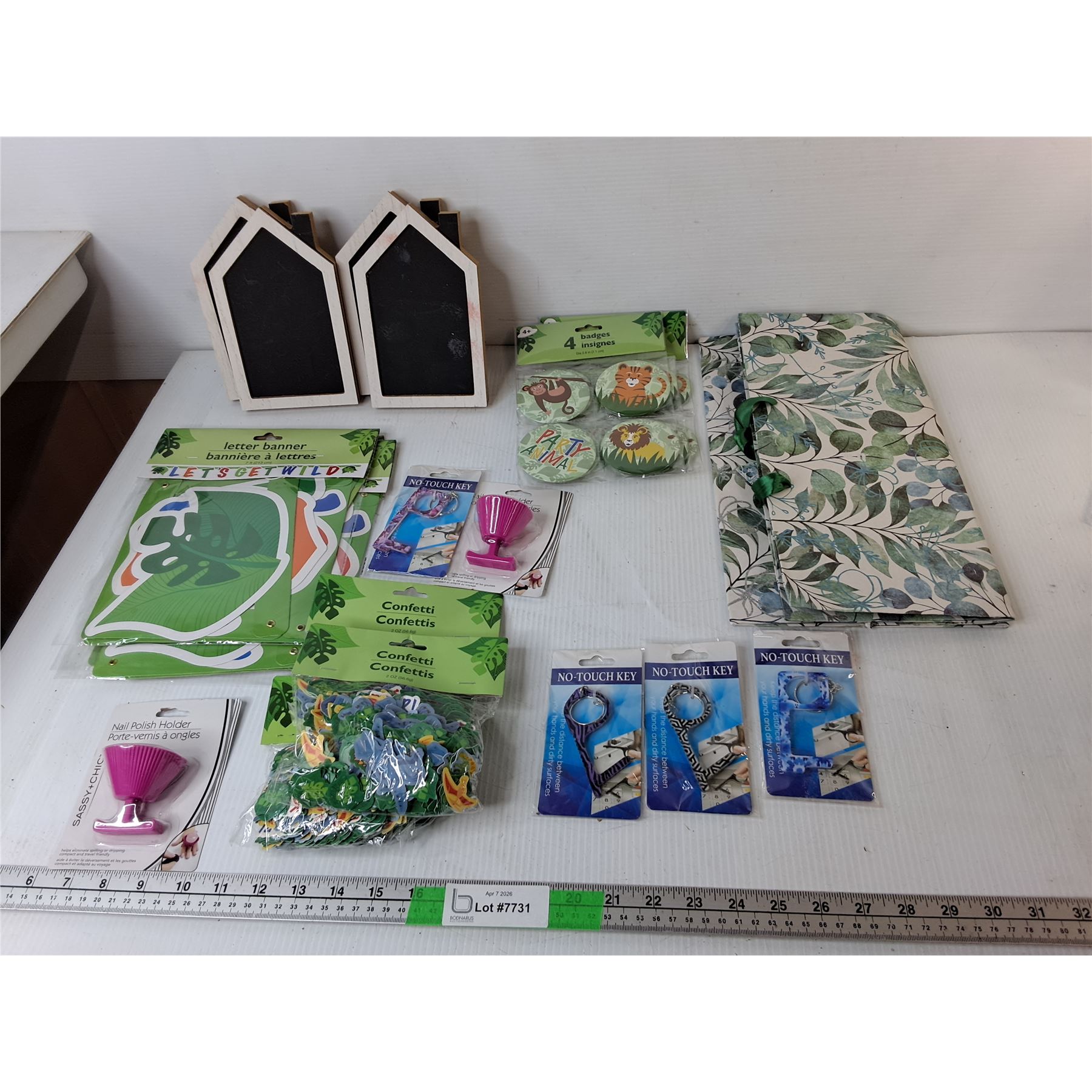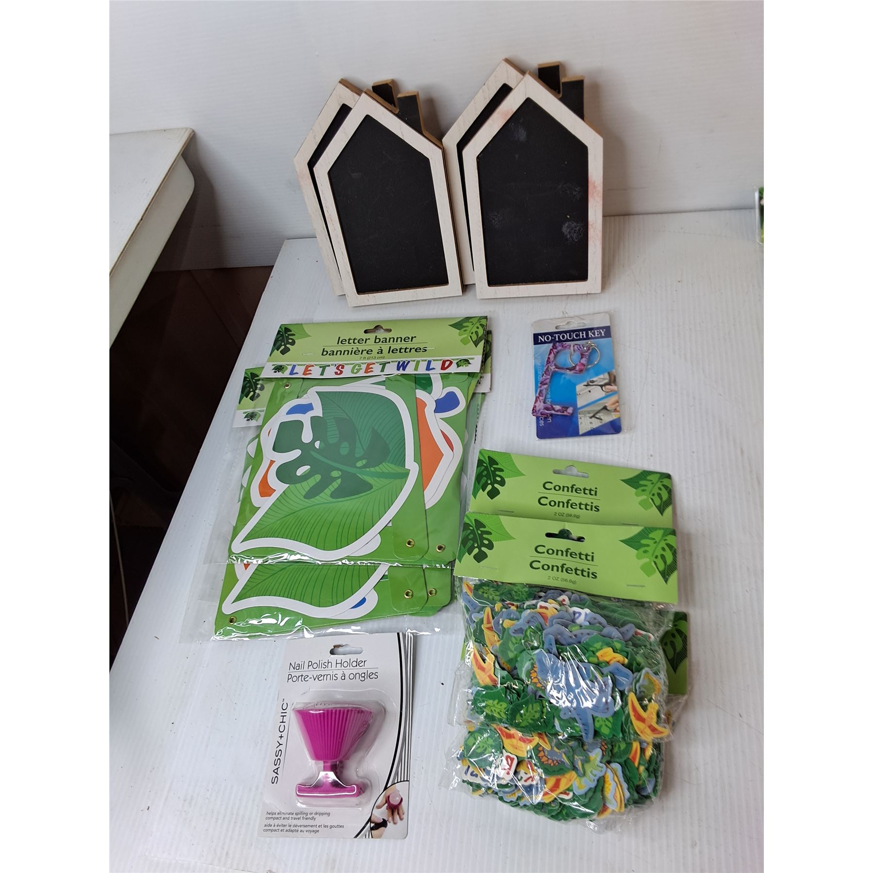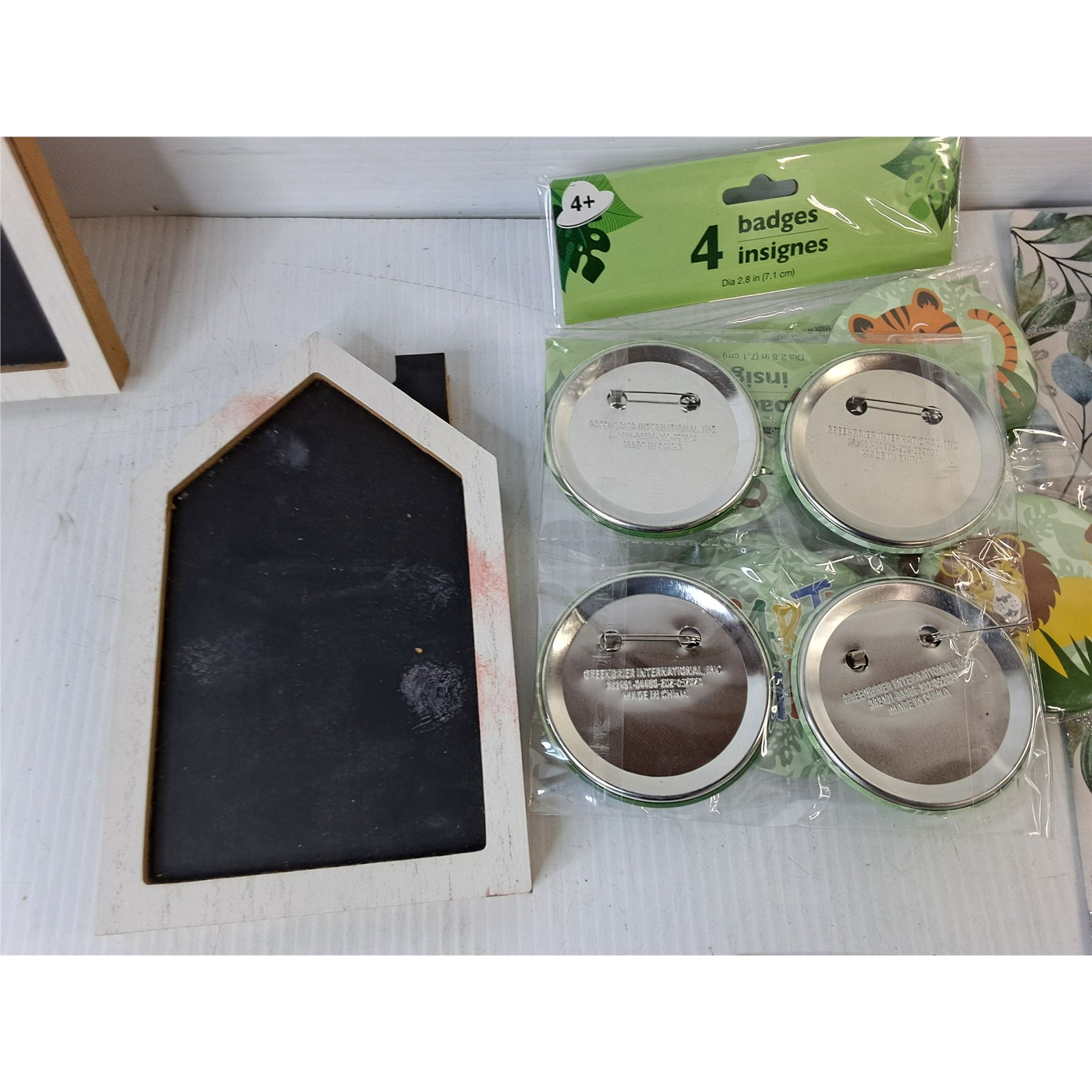 Lot 7731 Mostly Children's Animal Themed Party Supplies- Pins, Confetti, Banners, Misc.