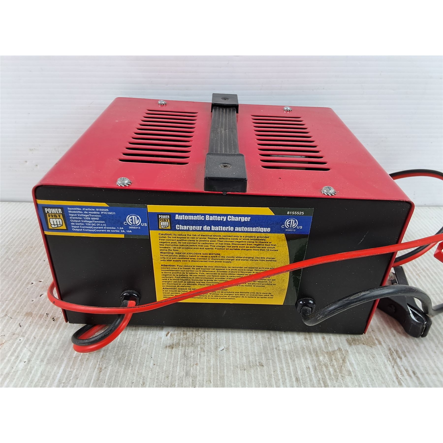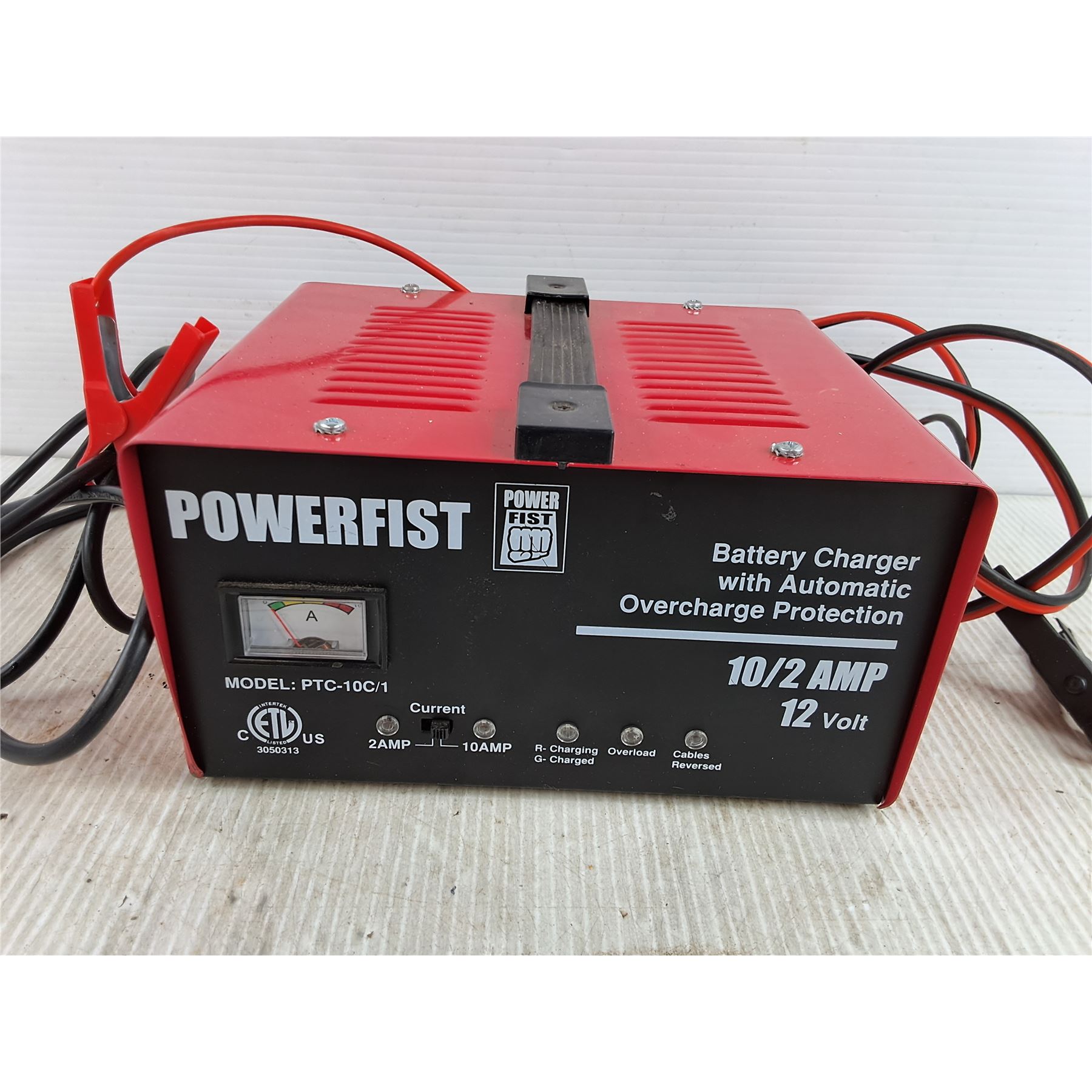 Lot 7757 Power Fist 10/2 Amp Battery Charger w/ Automatic Overcharge Protection - Powers On, As Is