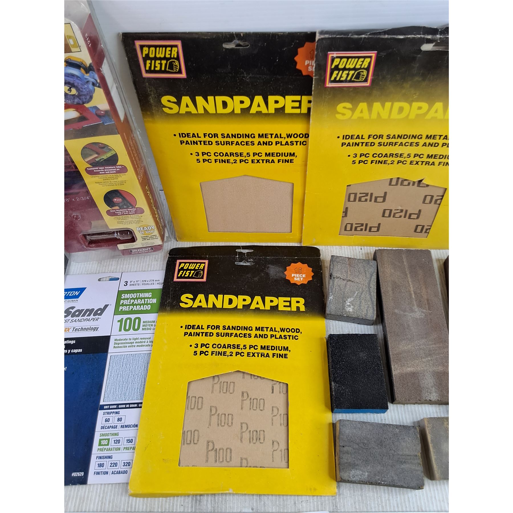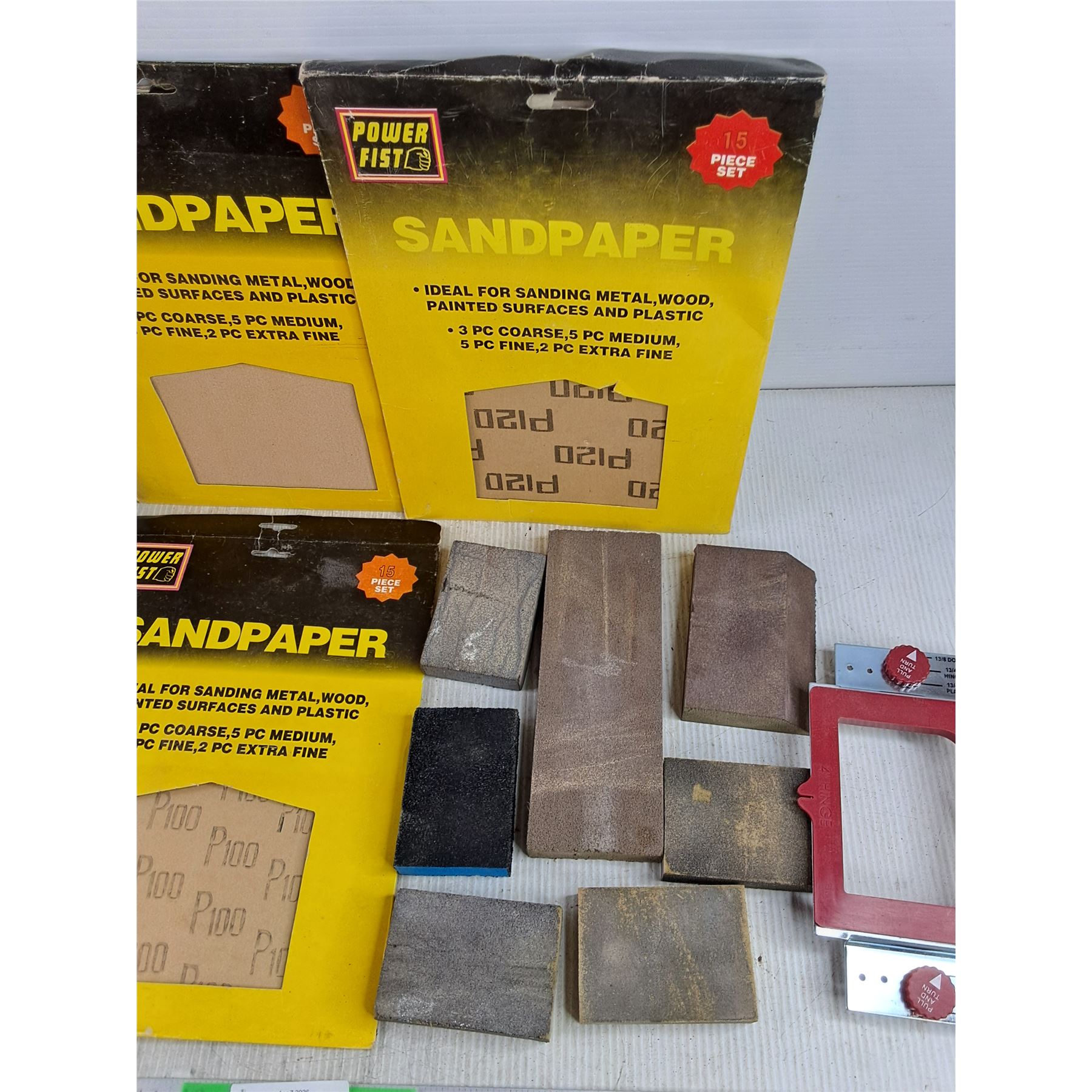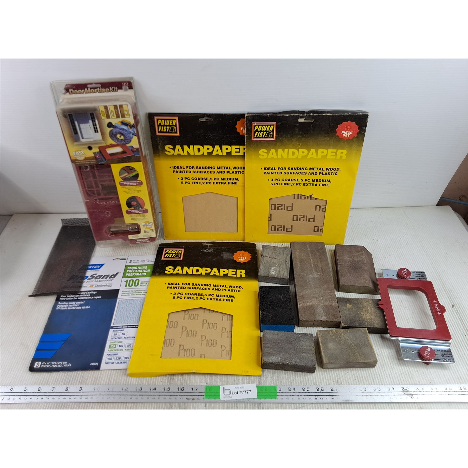 Lot 7777 Sanding Blocks, Assorted Sandpaper, Door Mortise Kit