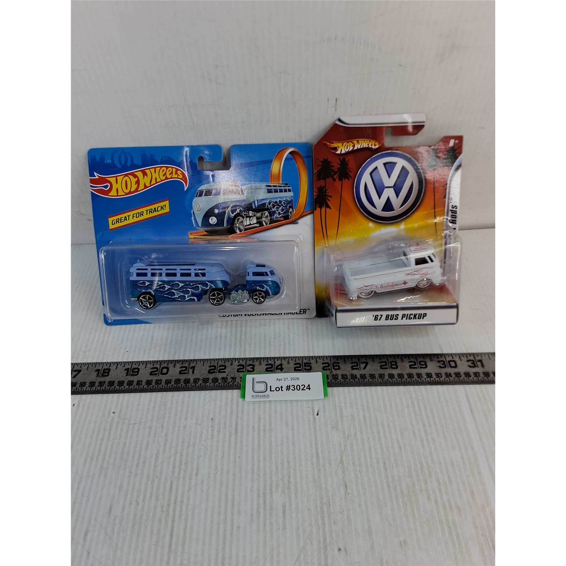 Lot 3024 (2) NIB Hot Wheels Diecast Toy Volkswagen (Custom Hauler & 67 Bus Pickup)