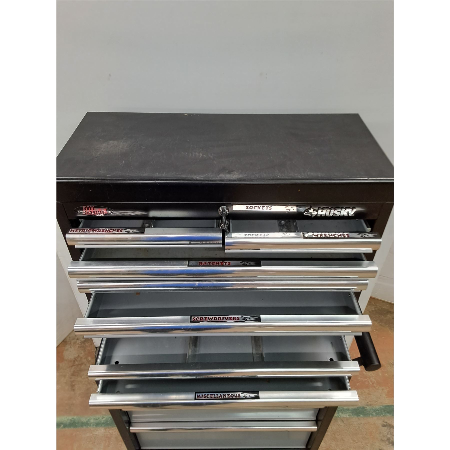 Lot 3031 * Husky Locking Metal 2-Piece Tool Cabinet on Wheels w/Keys - 52x30x16" - Cannot Ship