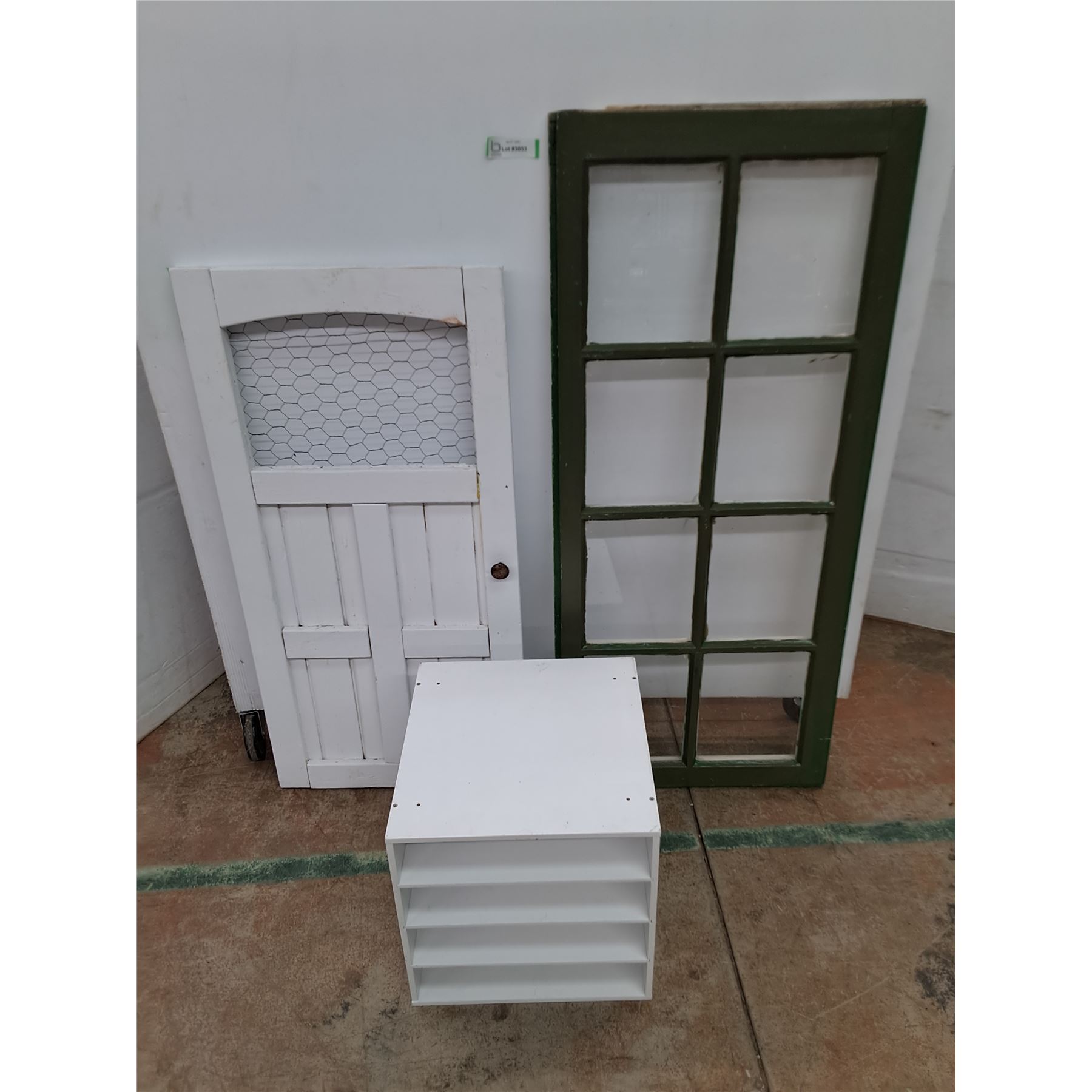 Lot 3053 * Wooden Yard Decor (19" x 38" Door w/Mesh & 46" x 20" Window Frame), MDF File Organizer - PU Only