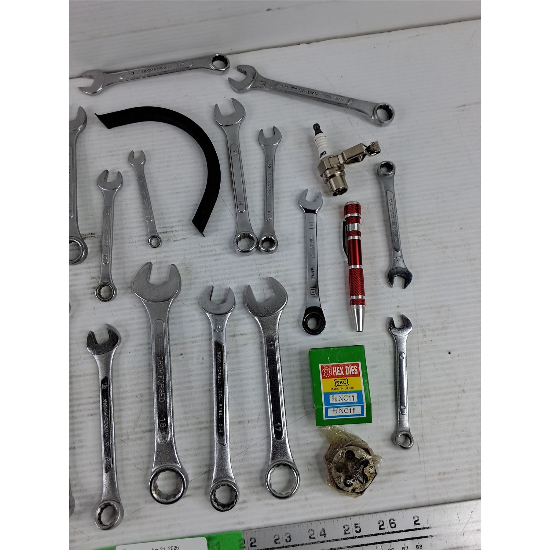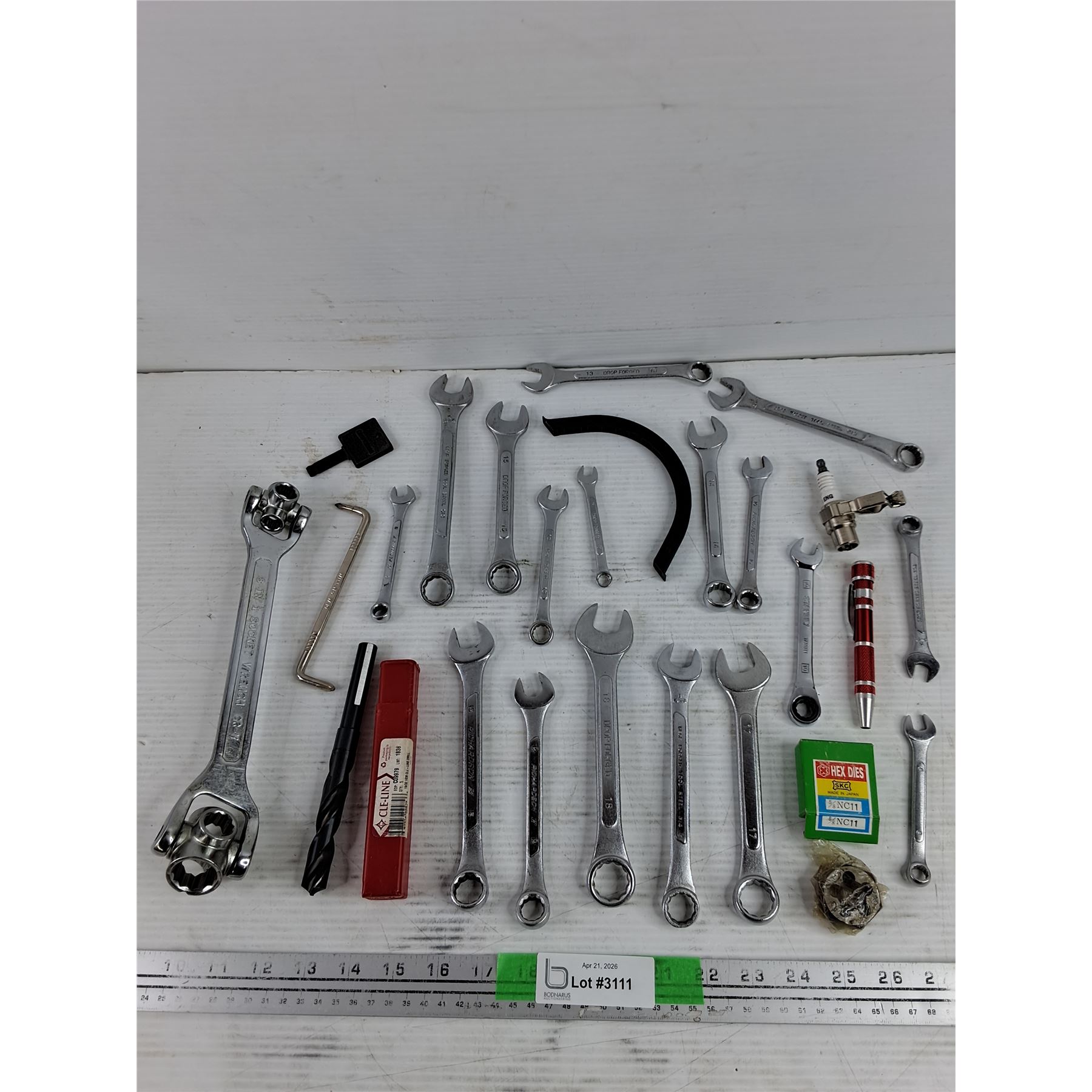 Lot 3111 Assorted Wrenches, Hex Die, Drill Bit, Misc