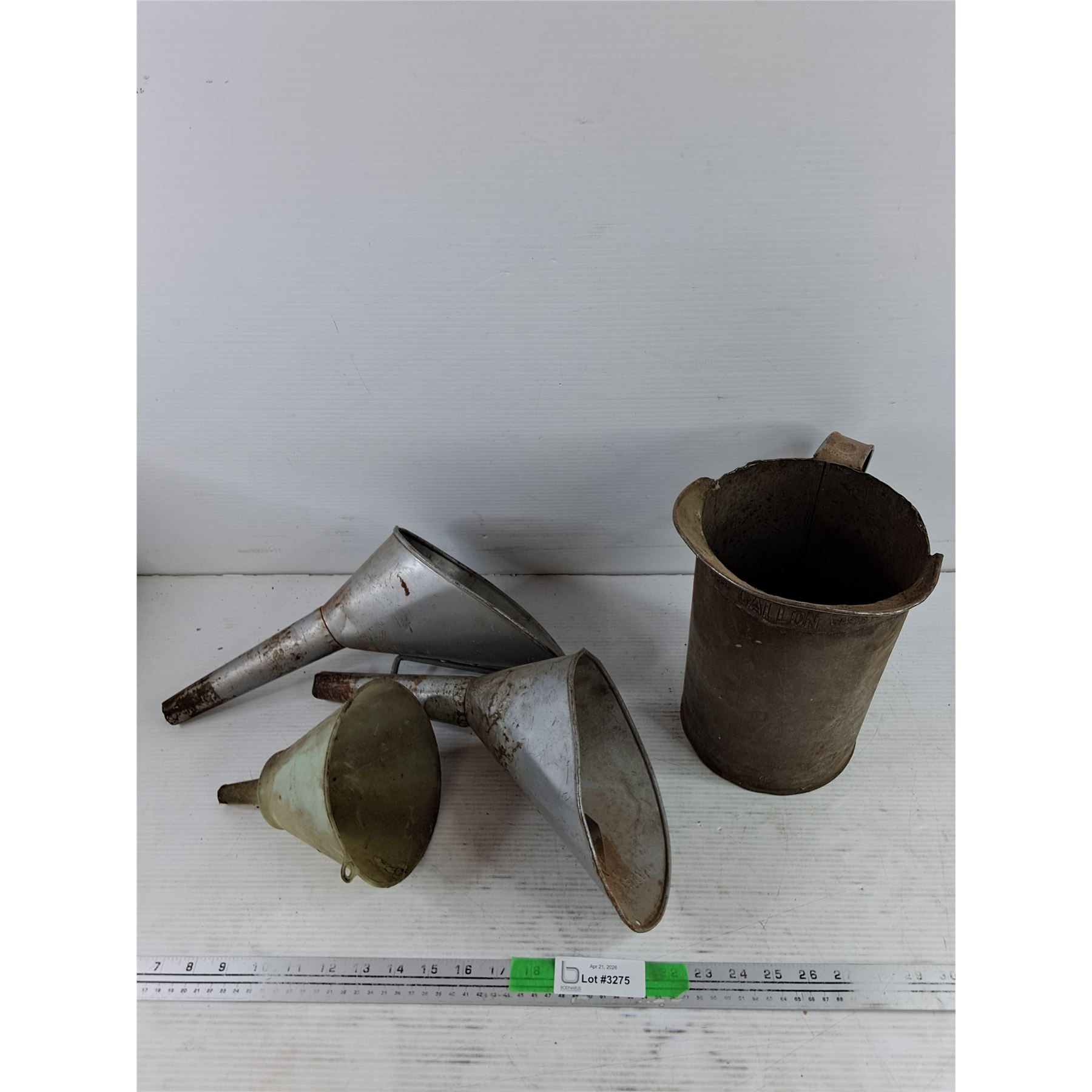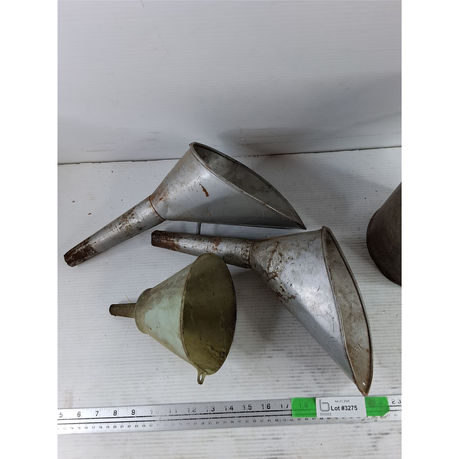 Lot 3275 (3) Vintage Fuel Funnels, Vintage Oil Can