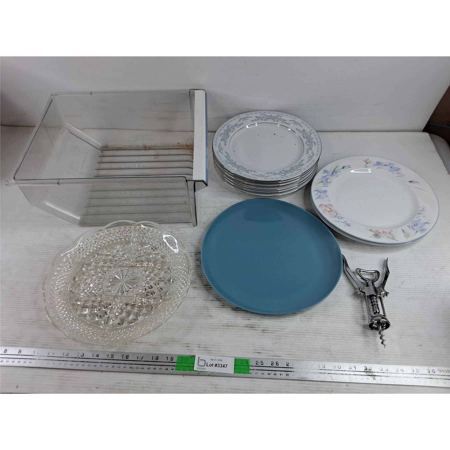 Lot 3347 Dining Plates, Divided Serving Dish, Fridge Bin, Wine Opener - PICK UP