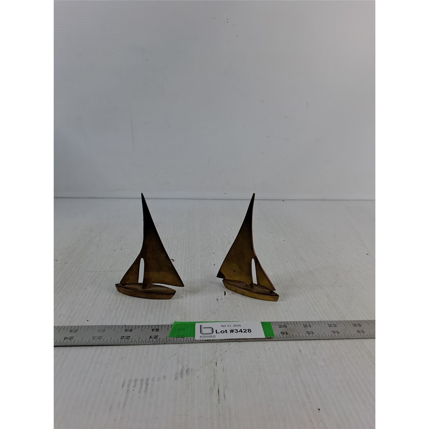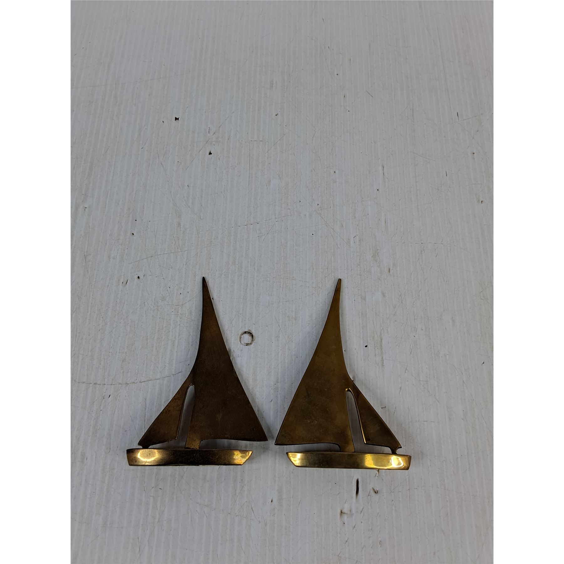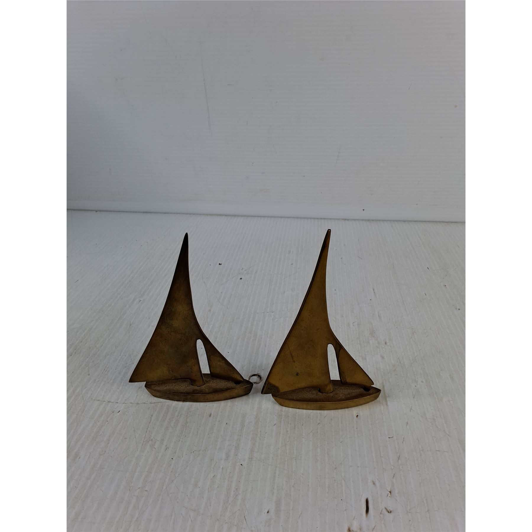 Lot 3428 (2) Vintage Brass Sailboat Figurines 3.5"x5"