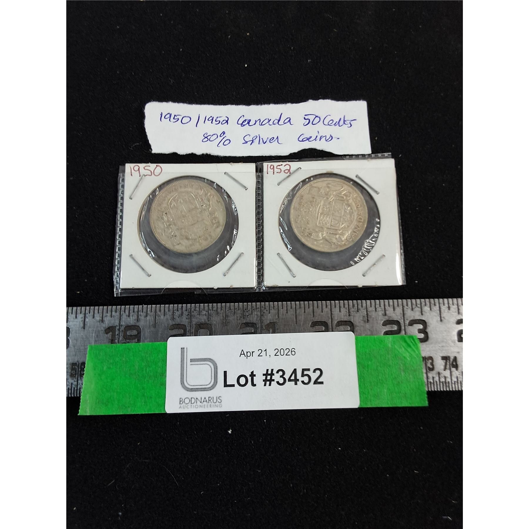 Lot 3452 (2) Canadian 50 Cent Coins from 1950 & 1952