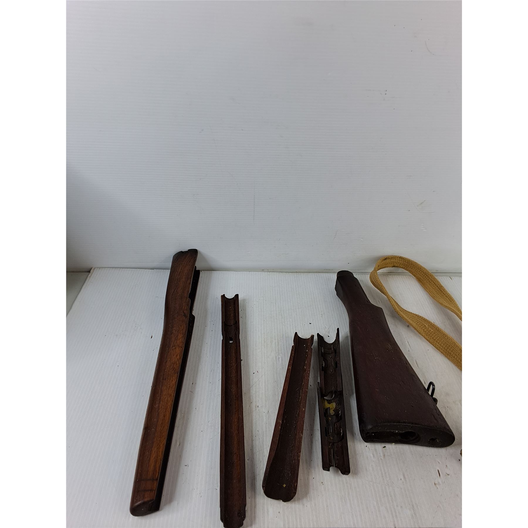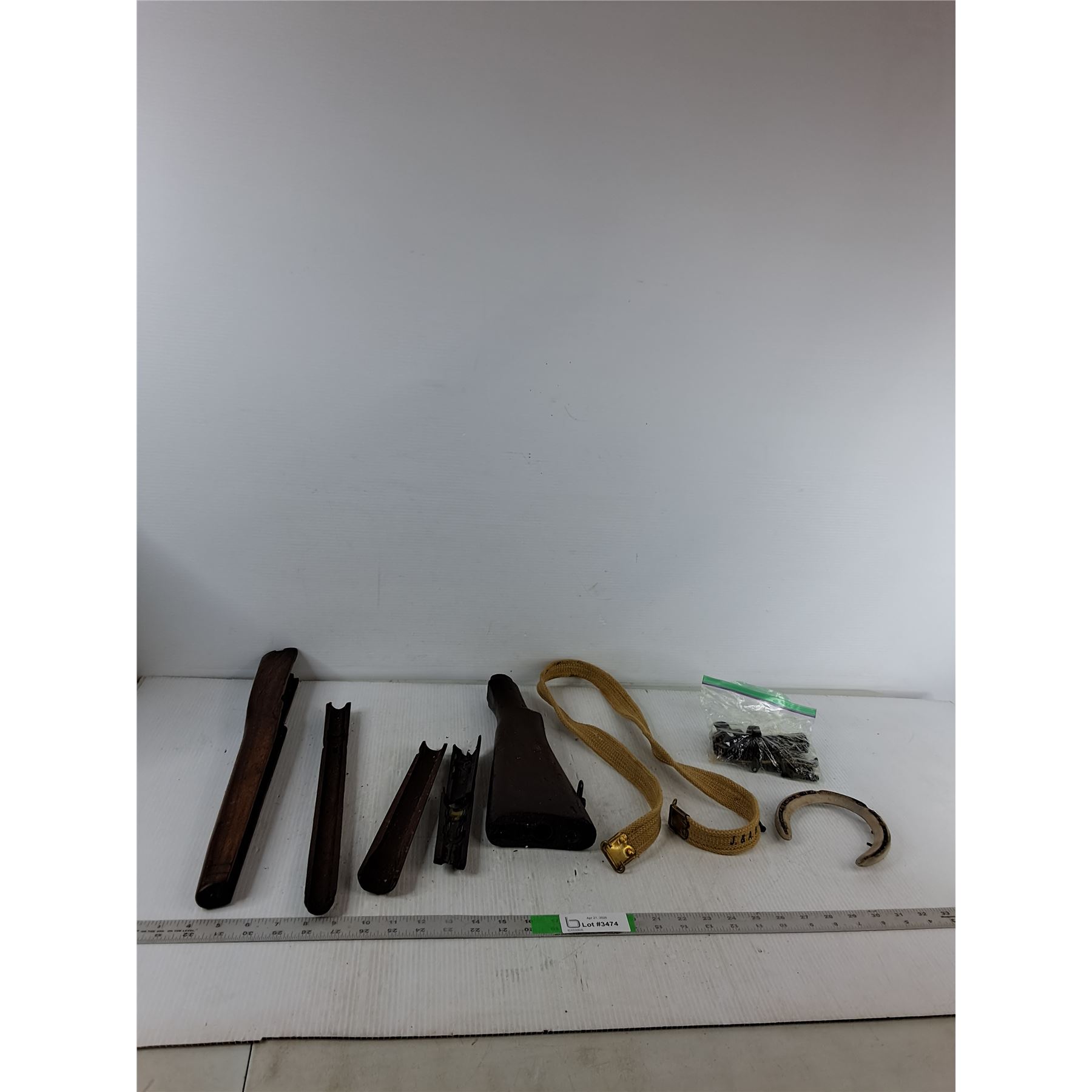 Lot 3474 Wooden Rifle Stock Pieces, Belt, Horseshoes, Misc