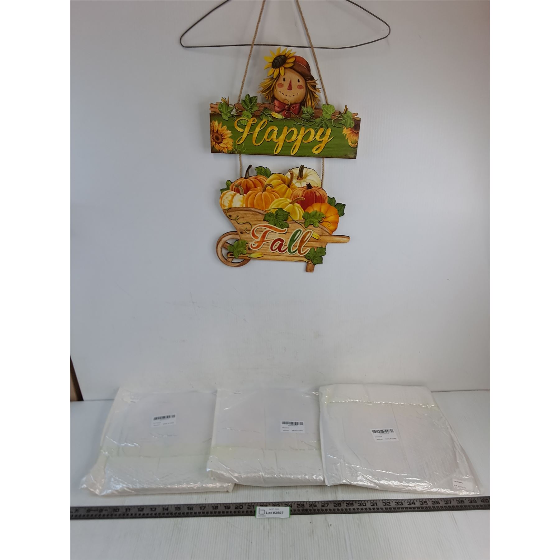 Lot 3507 (4) New Light Wood "Happy Fall" Hanging Decor