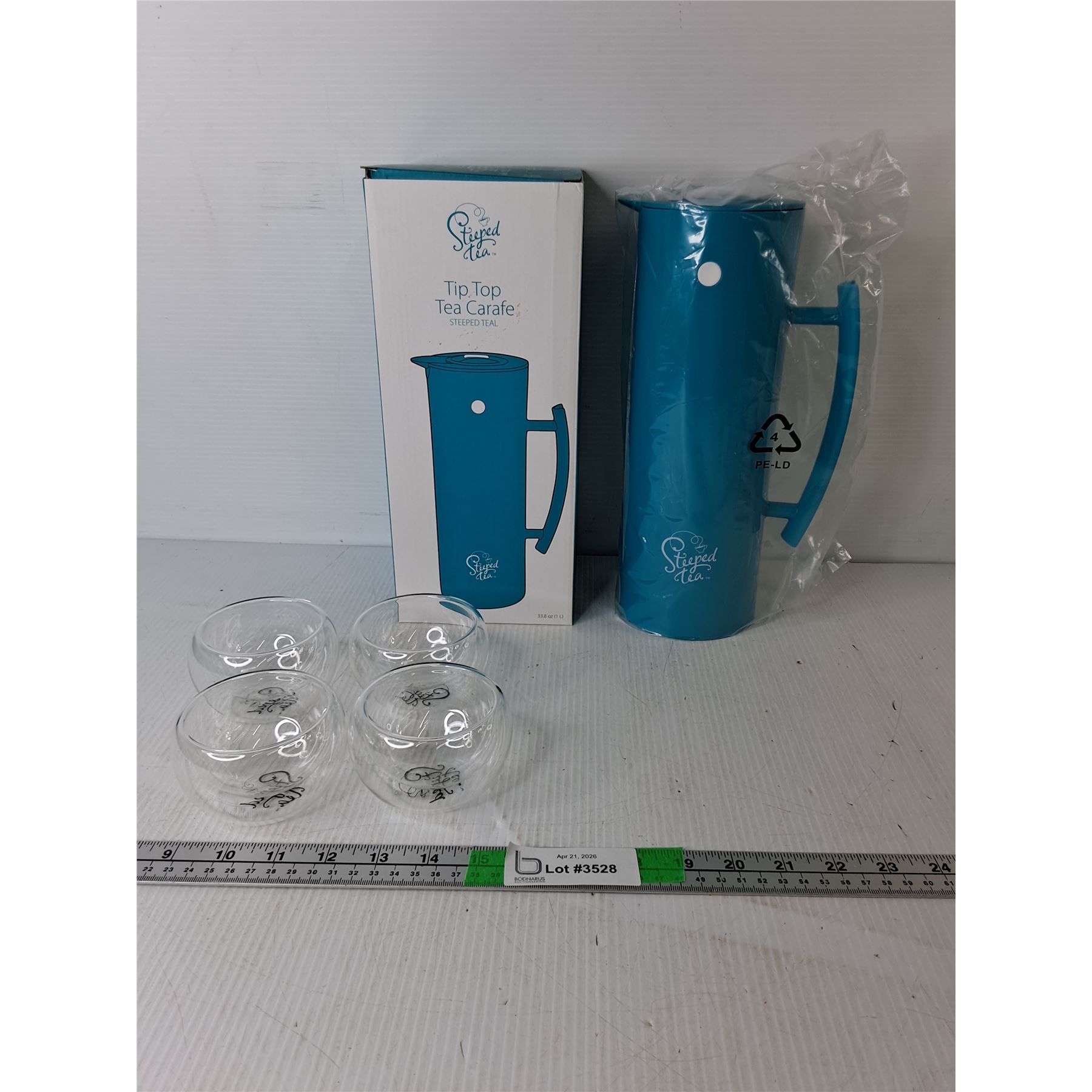 Lot 3528 Steeped Tea Carafe 12" & (4) Glasses