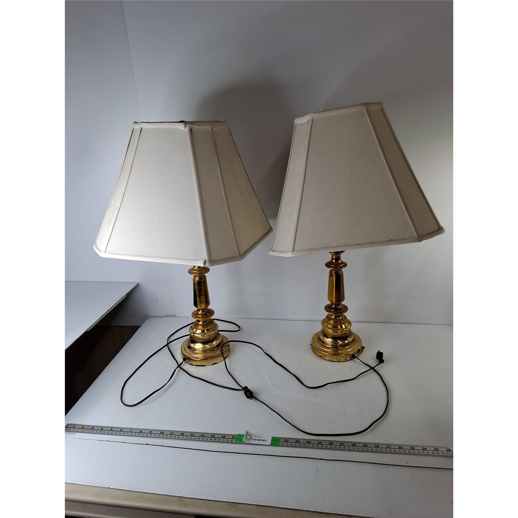 Lot 3563 (2) Partial Brass Lamps with Shades- Power On 28"- One Requires Repair - PICK UP ONLY
