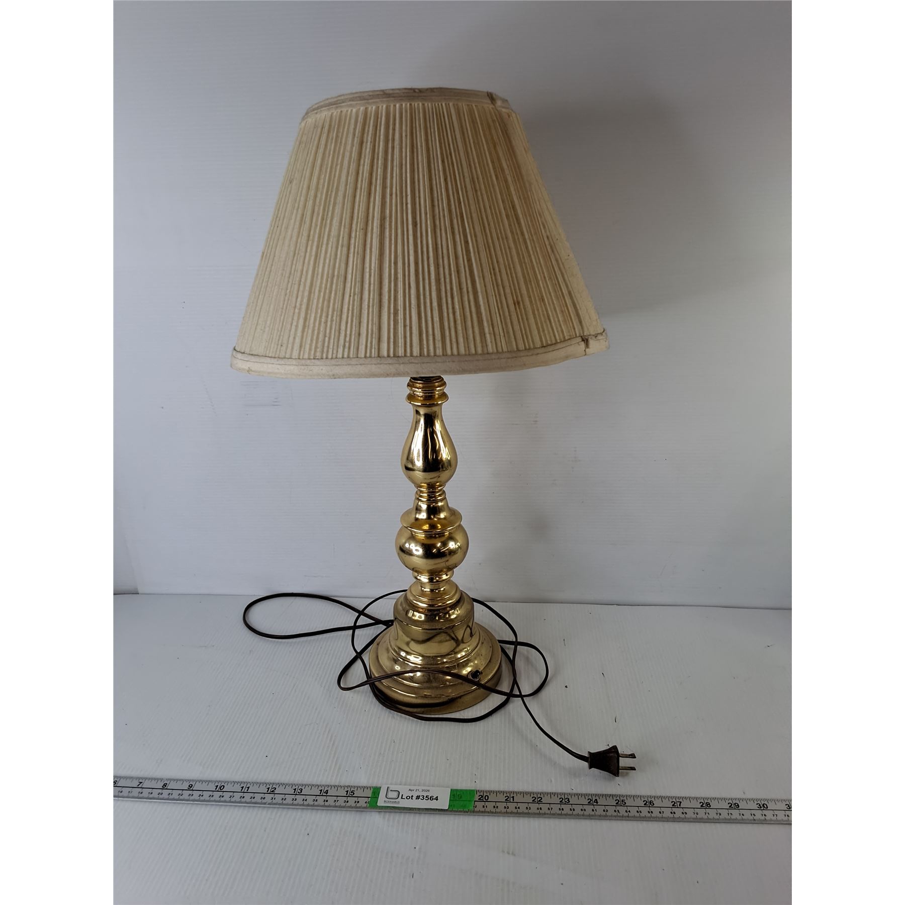 Lot 3564 Partial Brass Lamp with Shade 24" - Powers On - PICK UP ONLY