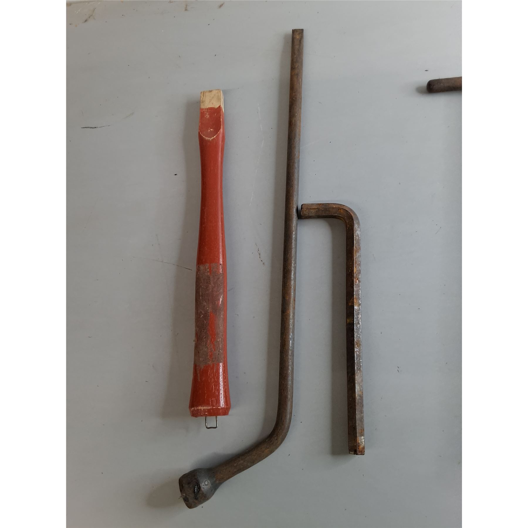 Lot 3587 Wooden Axe Handles, T Handle Wrench, Lug Wrench, Misc. Up to 20.5"