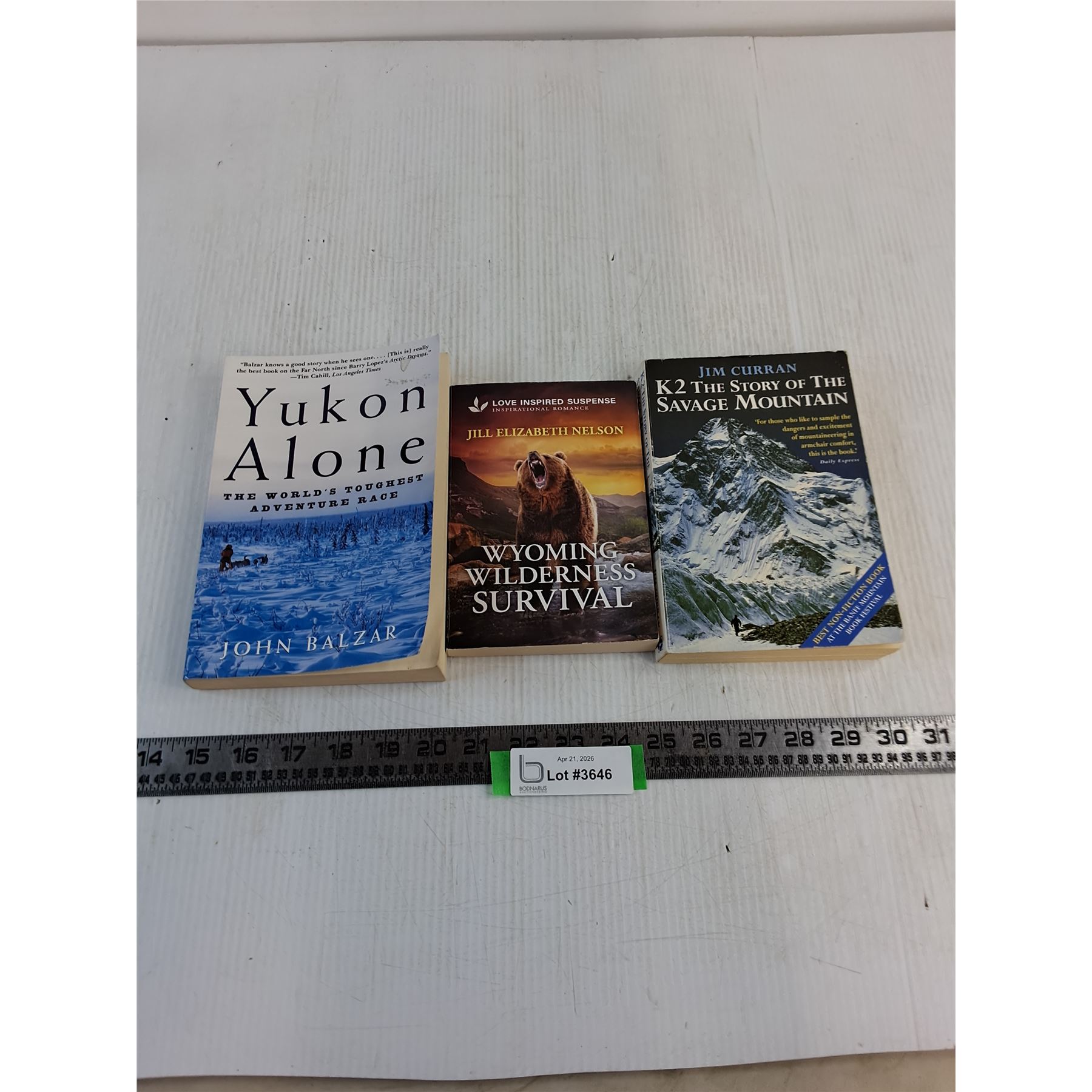 Lot 3646 (3) Books (Yukon Alone, Wyoming Wilderness Survival, K2 Savage Mountain)