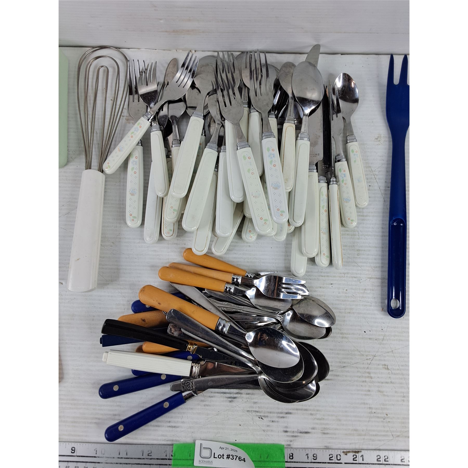 Lot 3764 Vintage Cutlery, Whisk, Ice Tray