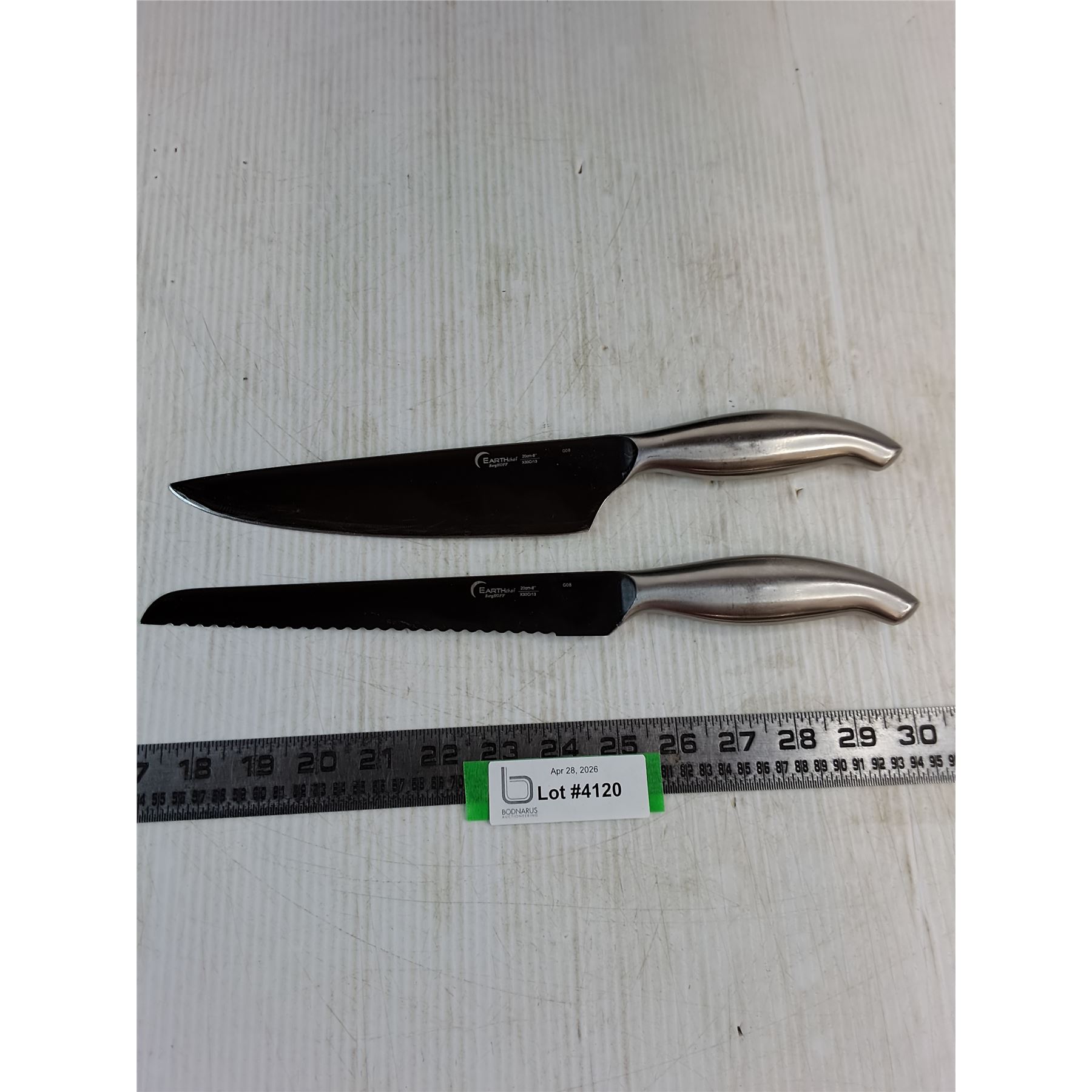 Lot 4120 (2) Earthchef Berghoff 8" Knives (Chef & Bread)