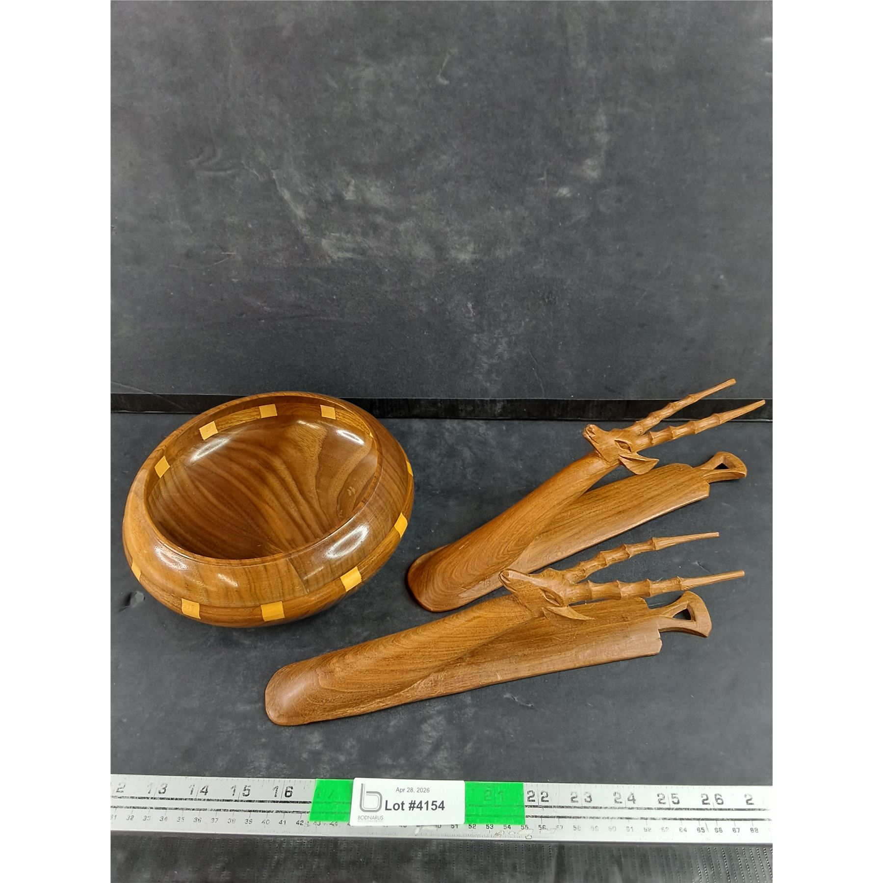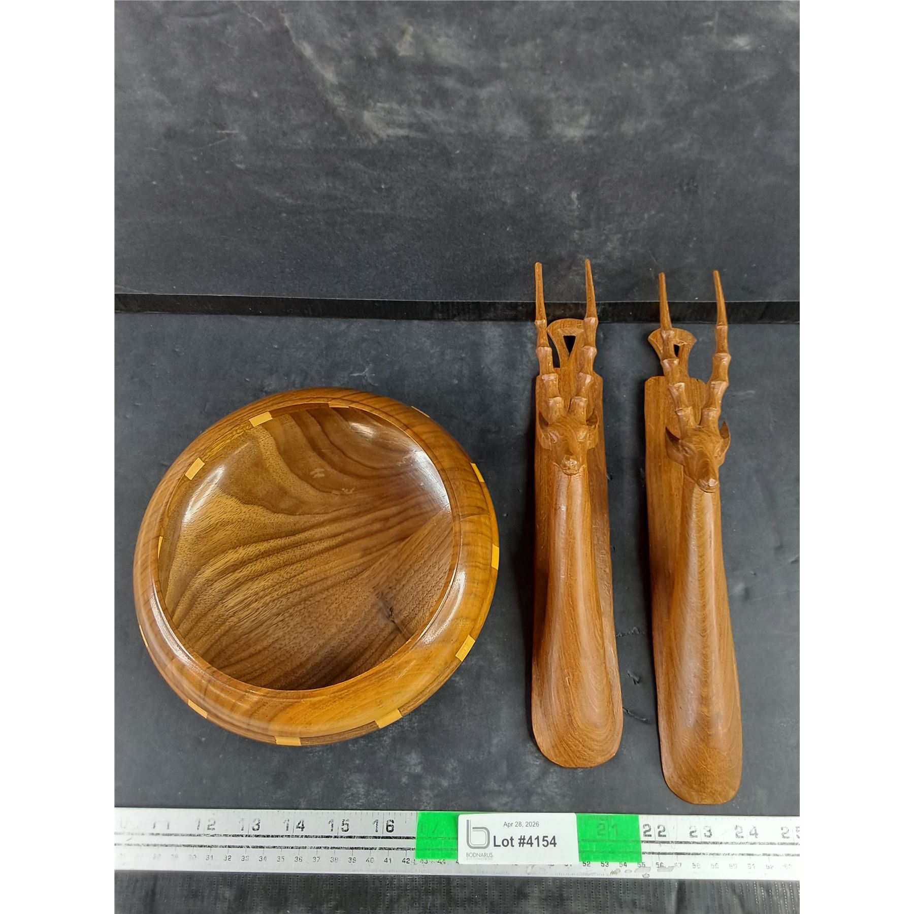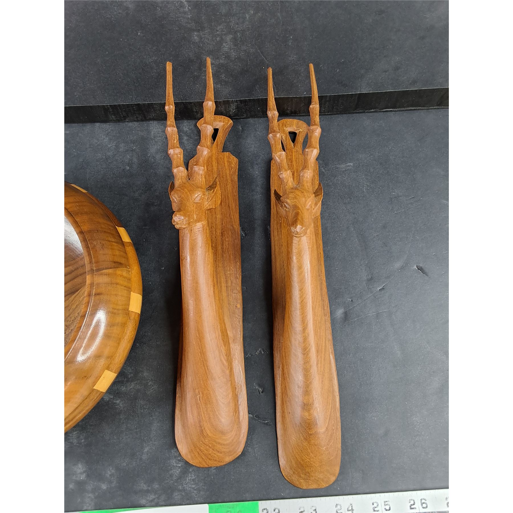 Lot 4154 Hand Crafted Wooden Bowl, (2) MCM Hand Carved Antelope Wall Decor
