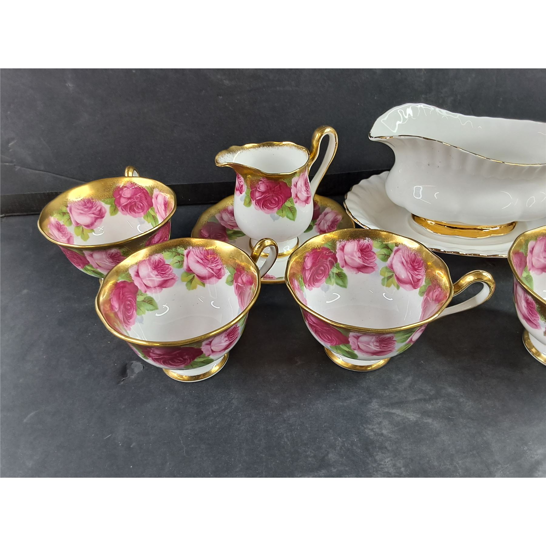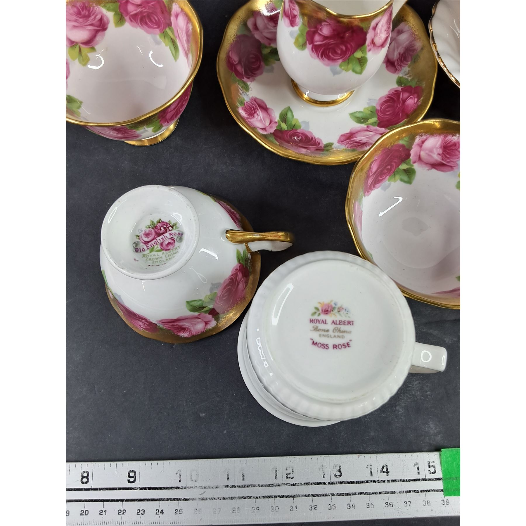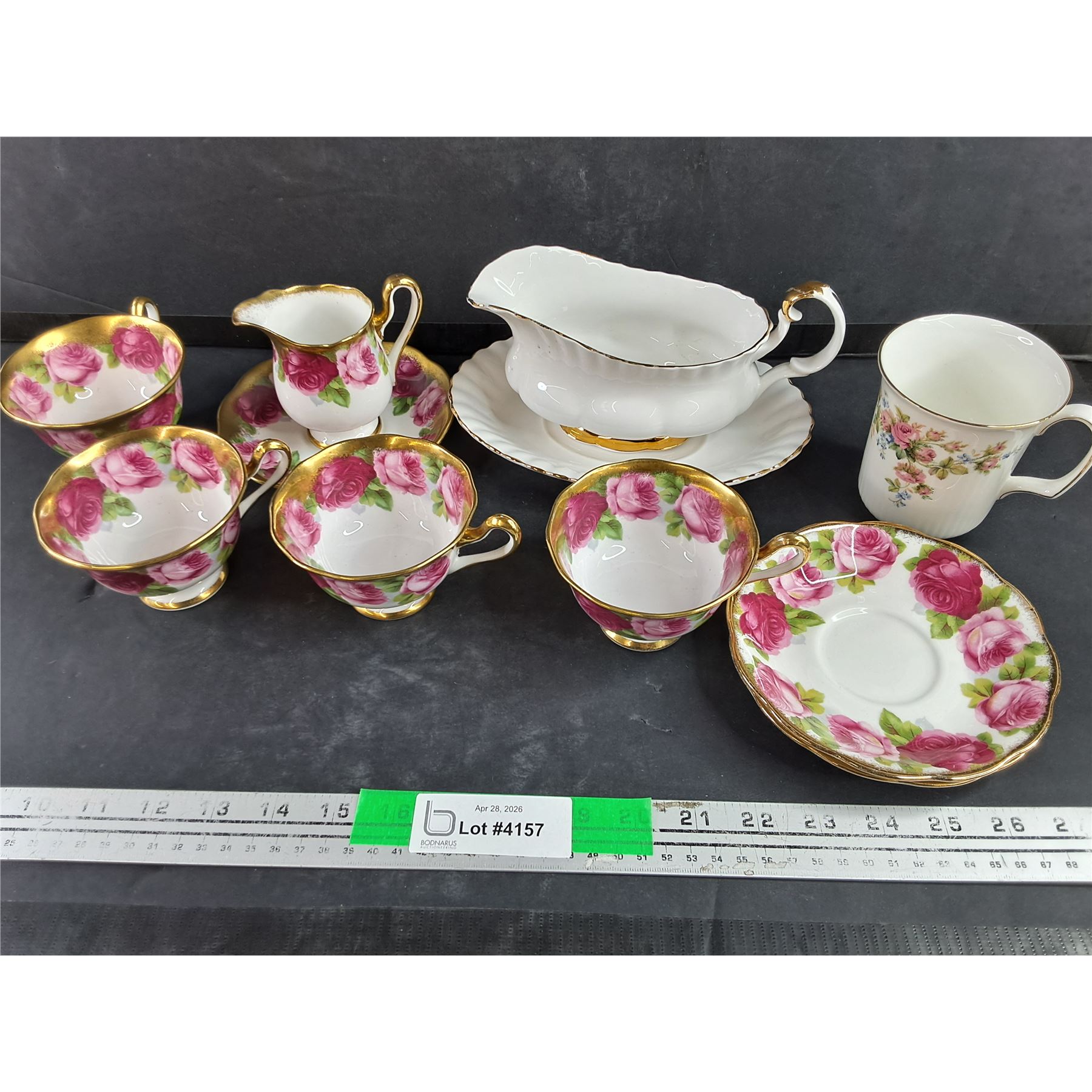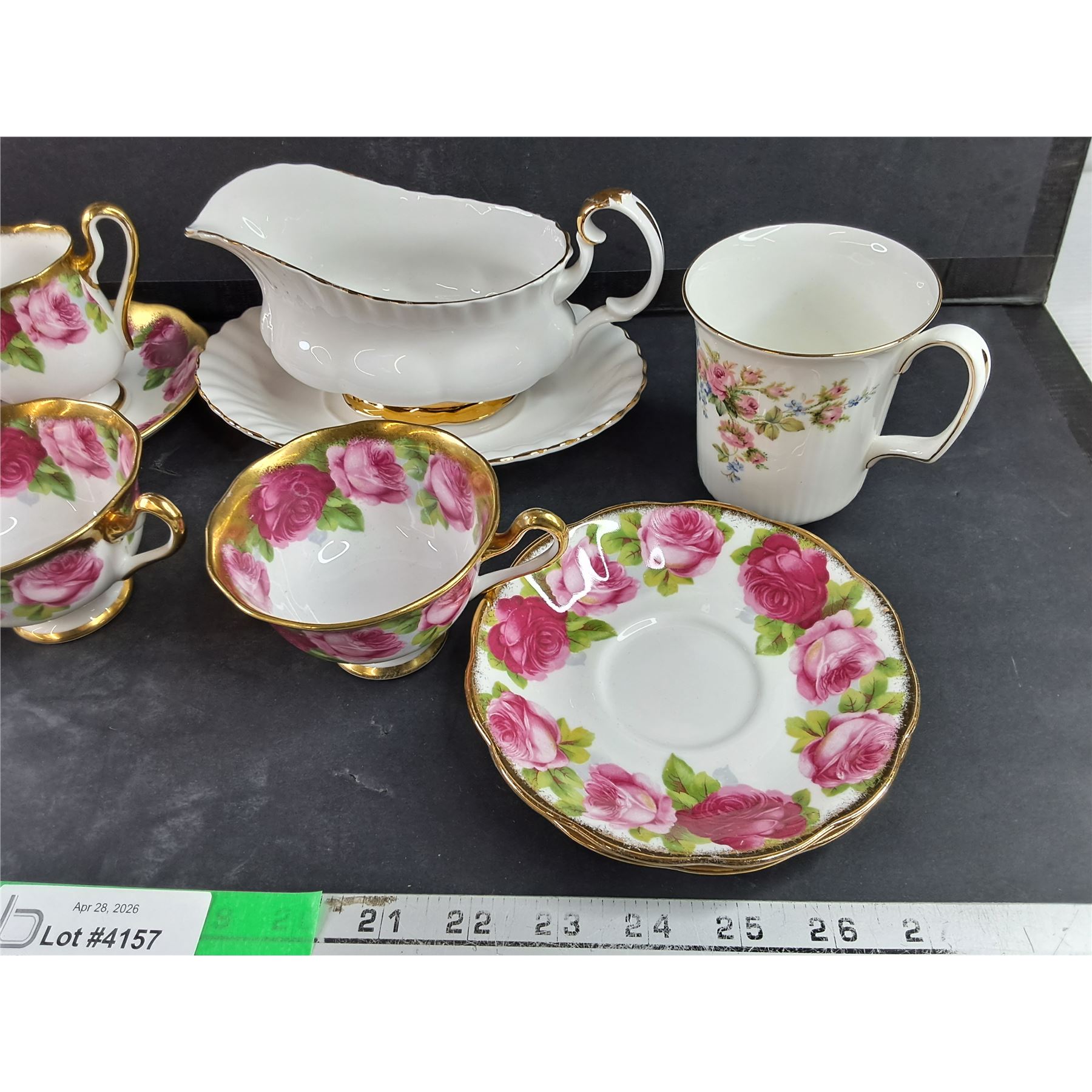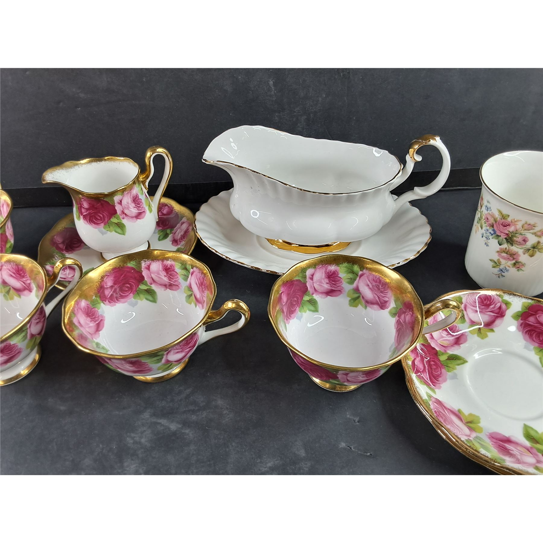 Lot 4157 Royal Albert China Gravy Boat & Underplate, Old English Rose Tea Cups/Saucers, Moss Rose Coffee Mug