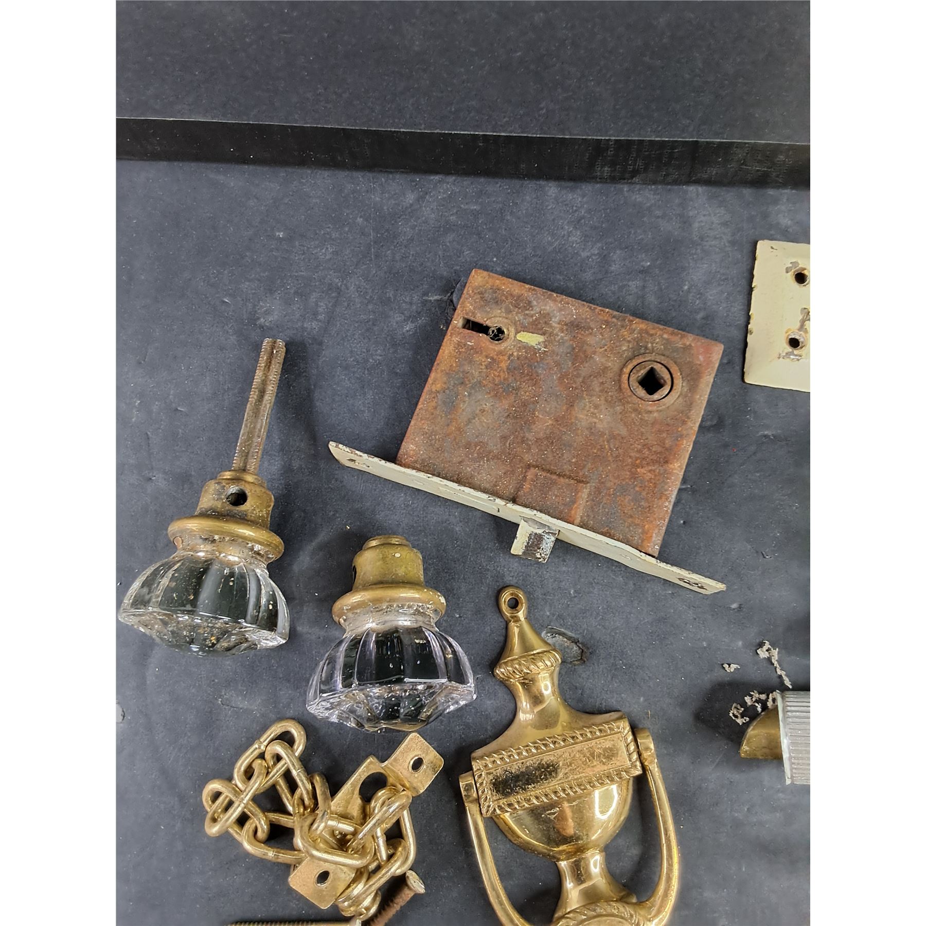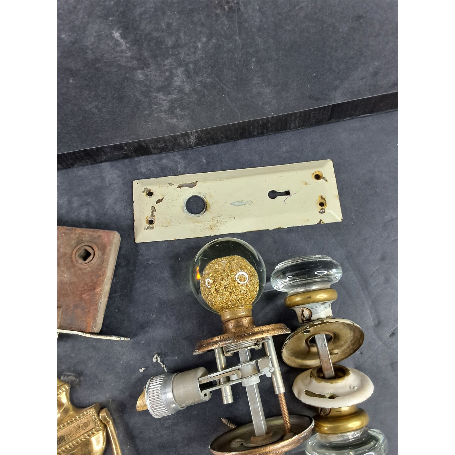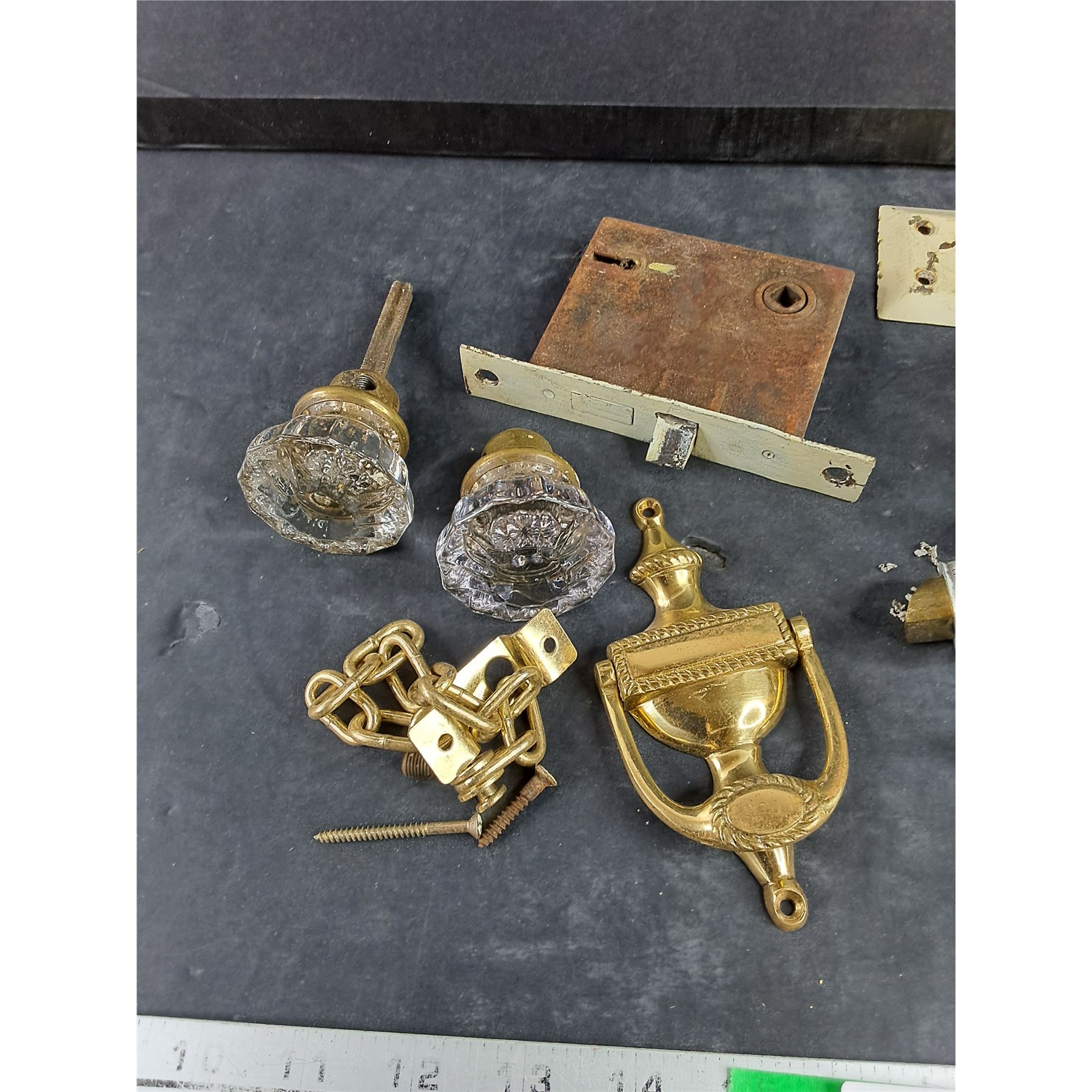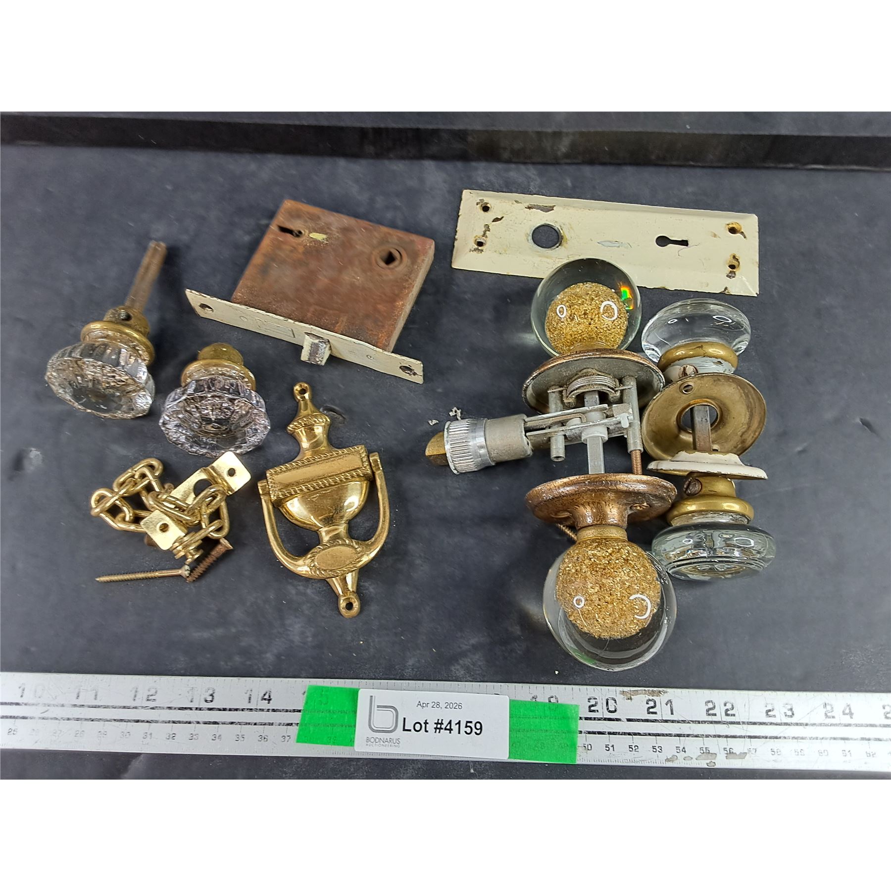 Lot 4159 Brass Door Knocker, Clear Glass & Gold Glitter Door Knobs, Tinted Purple Glass Door Handles