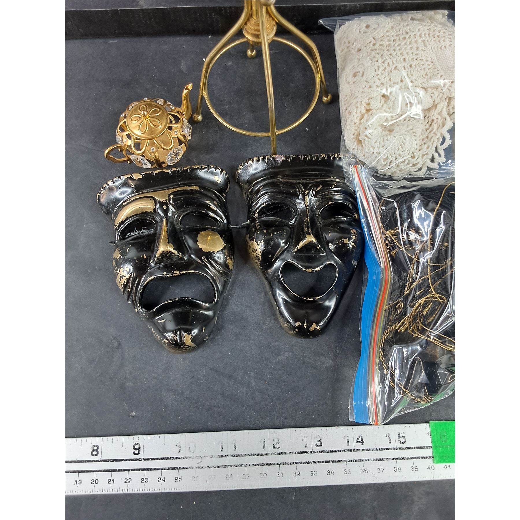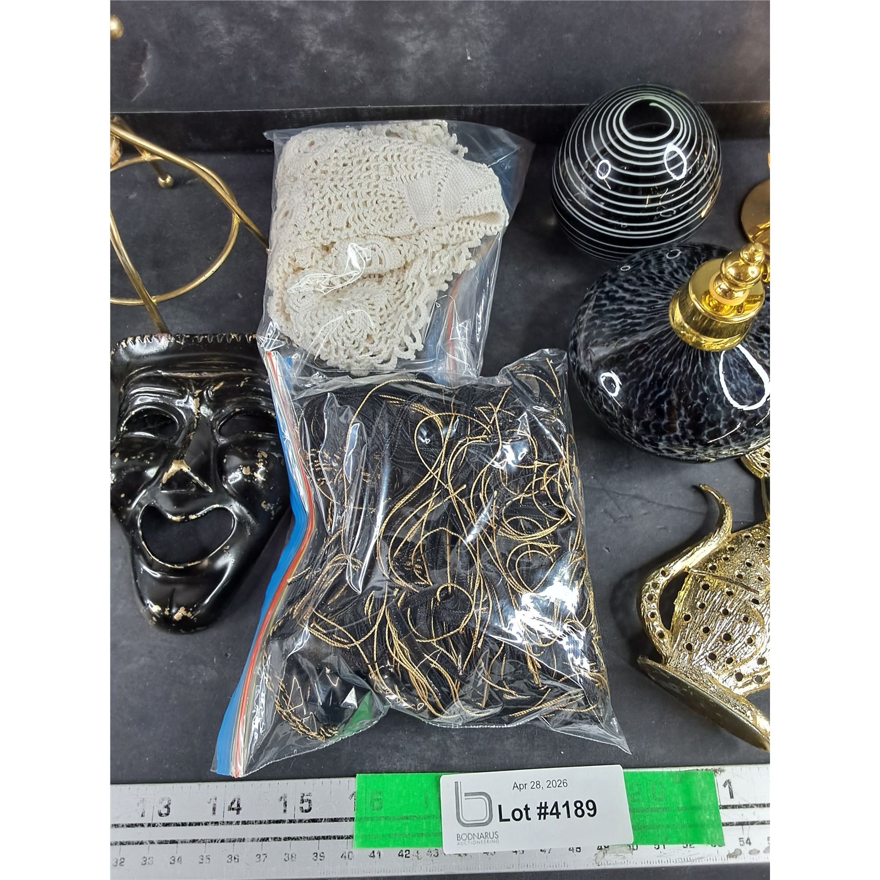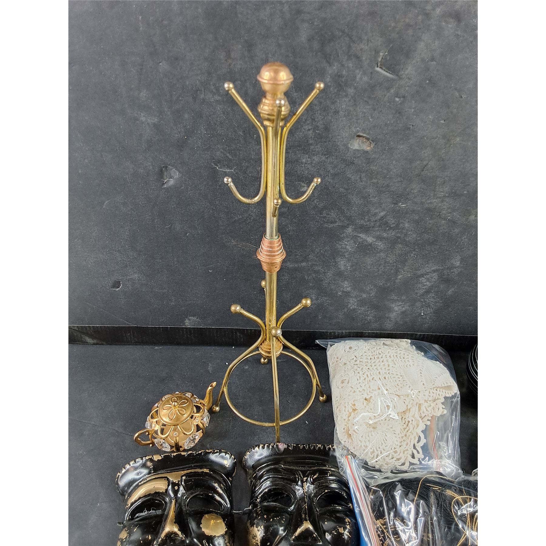 Lot 4189 Vintage Vanity Lot - Black Glass Atomizer, Crystal Globe, Tea Pot, Mouse Earring Tree, Misc