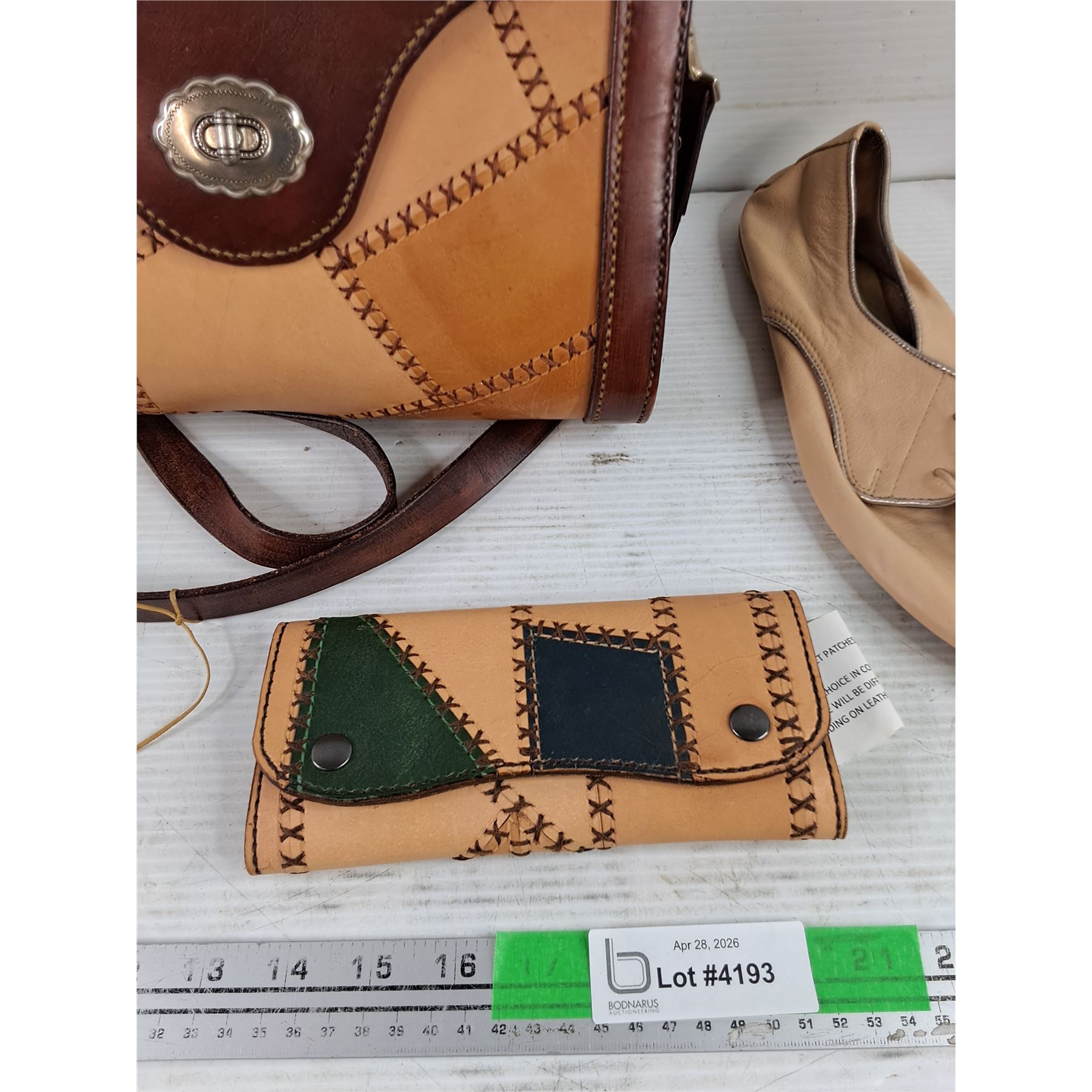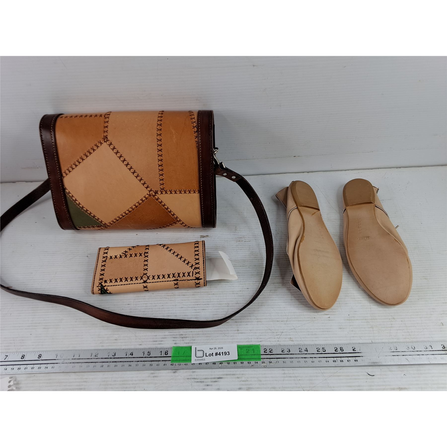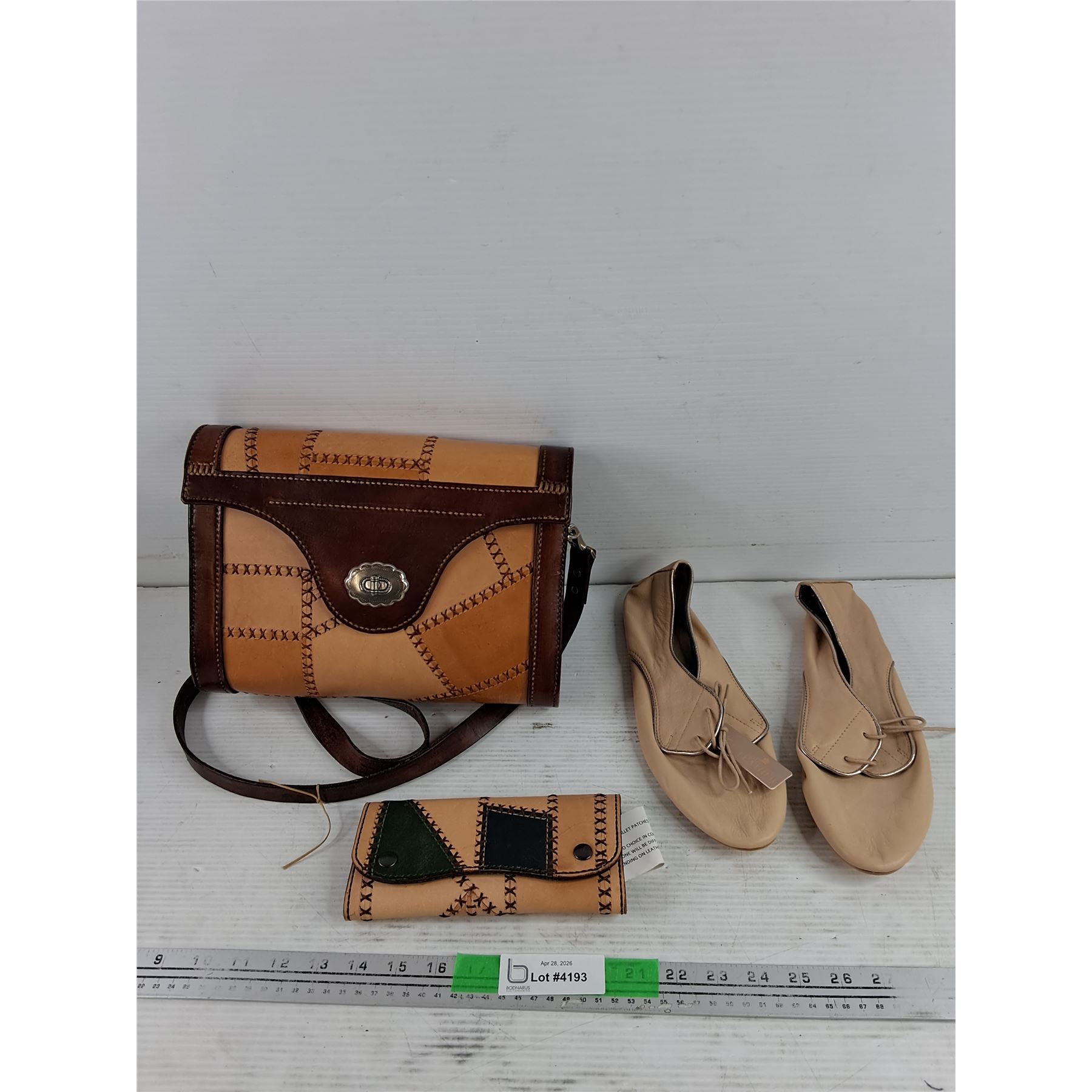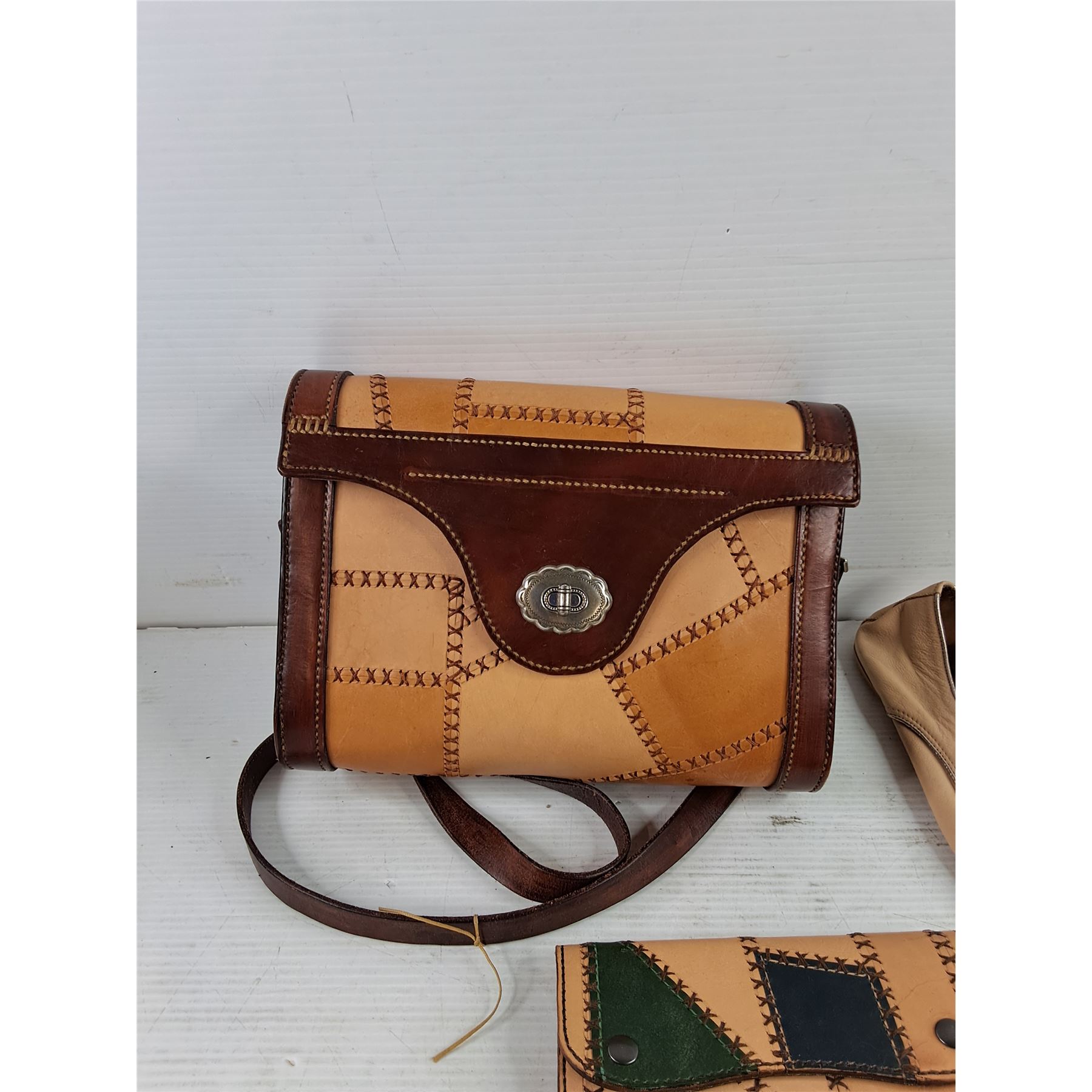 Lot 4193 Vintage Leather Patchwork Handbag & Wallet, Zara Leather Shoes - Size 9