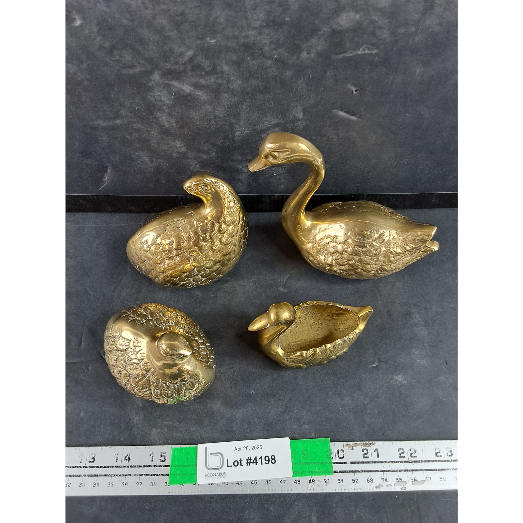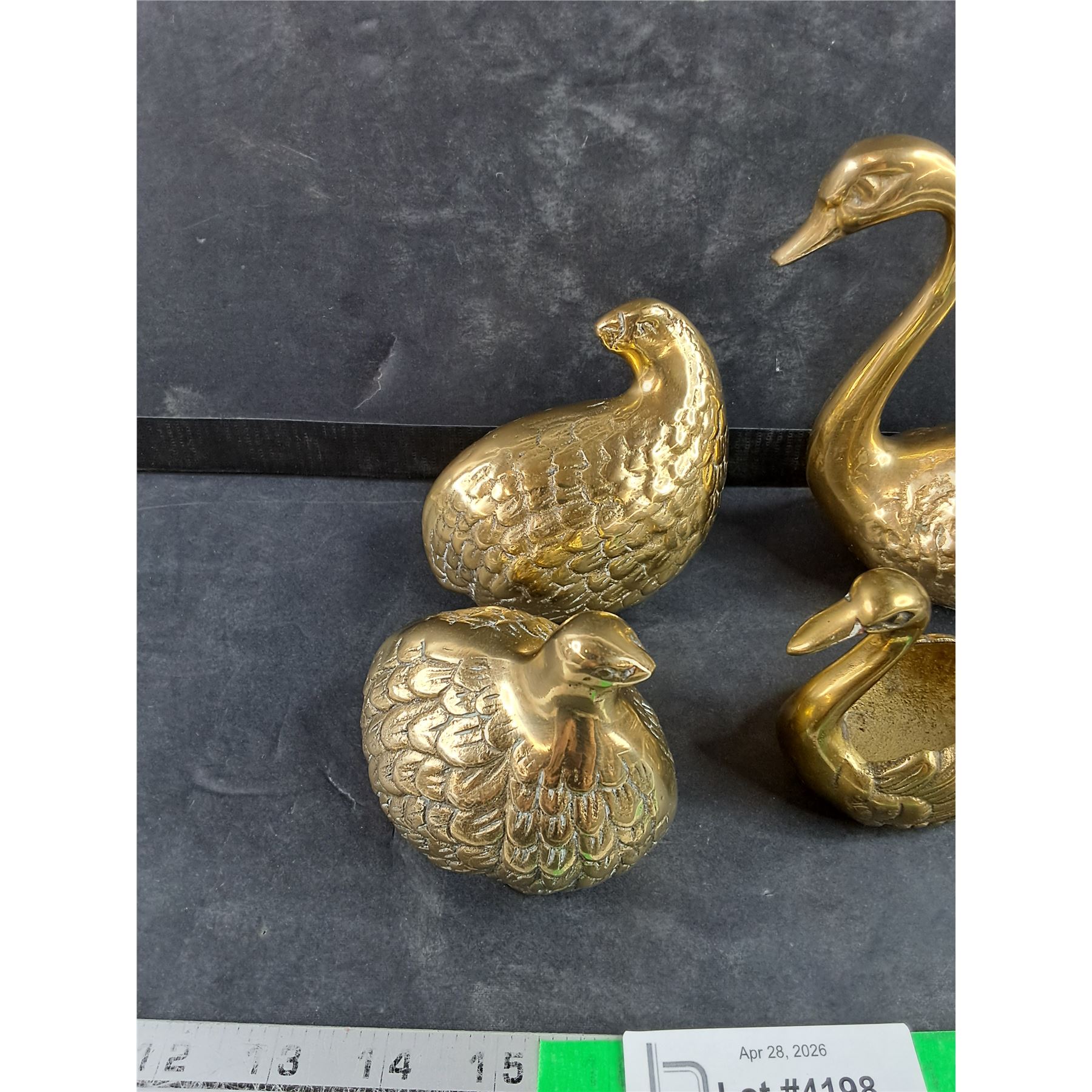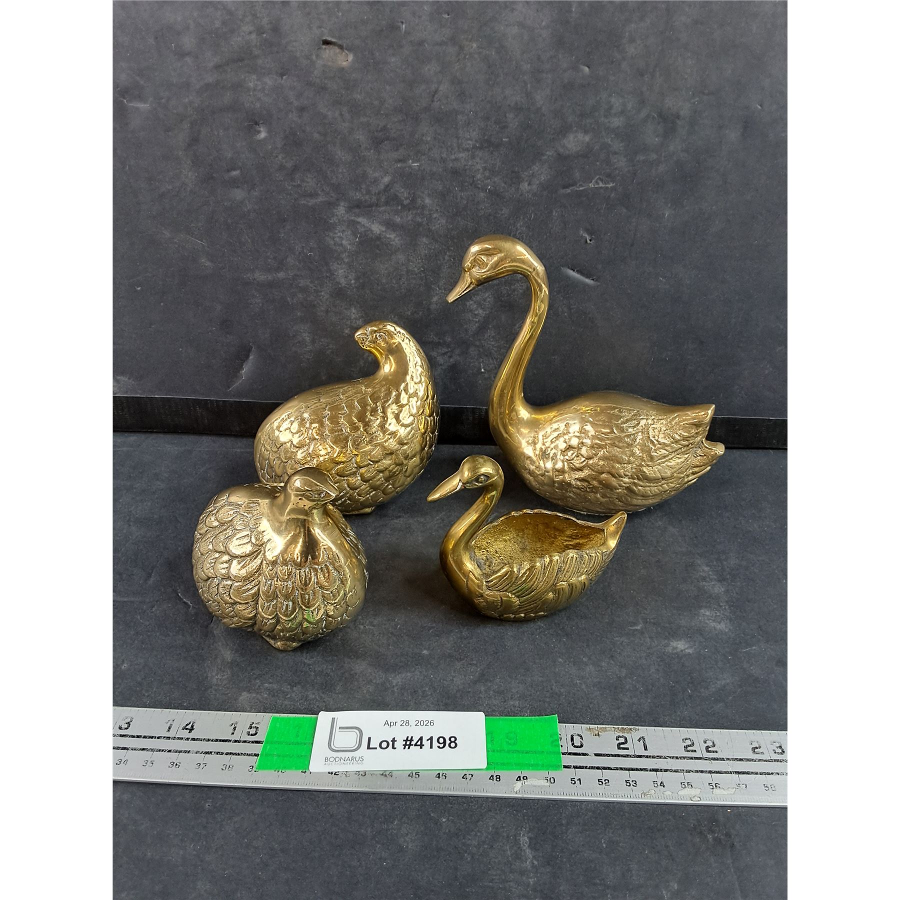 Lot 4198 (2) Brass Swans vs (2) Fat Brass Partridges