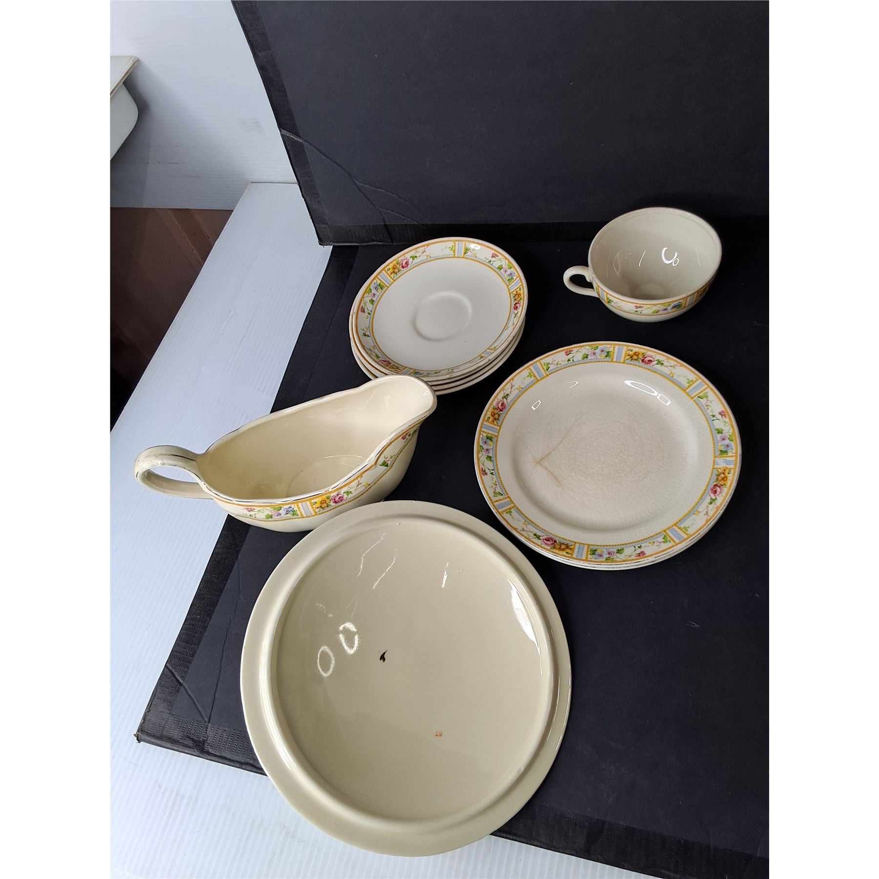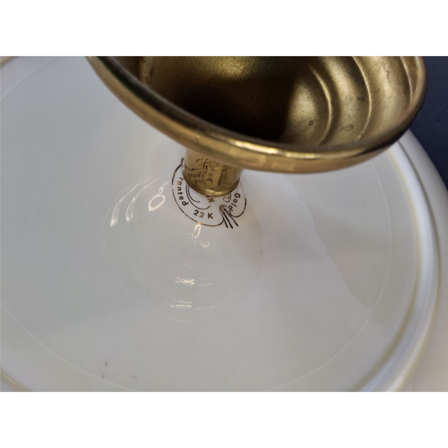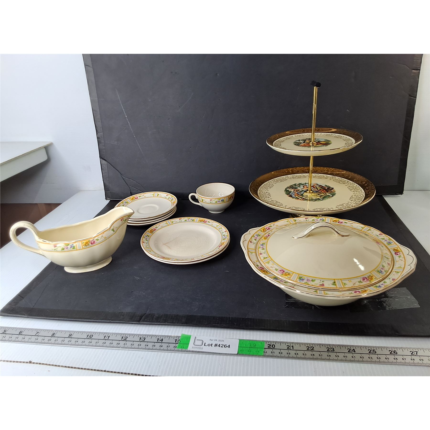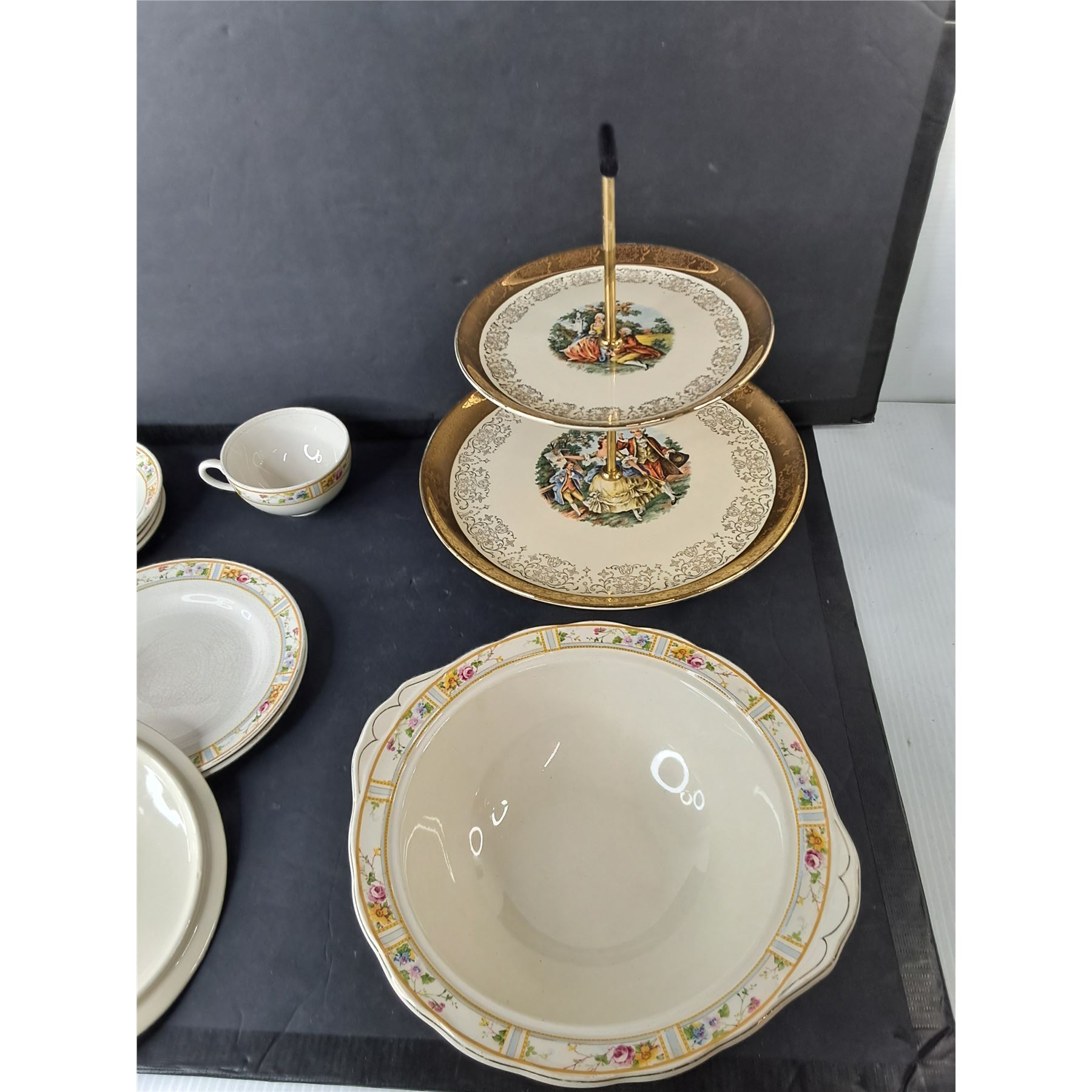 Lot 4264 22K Gold Plated Two Tiered Serving Tray & Creampetal China Tea Set - PICK UP