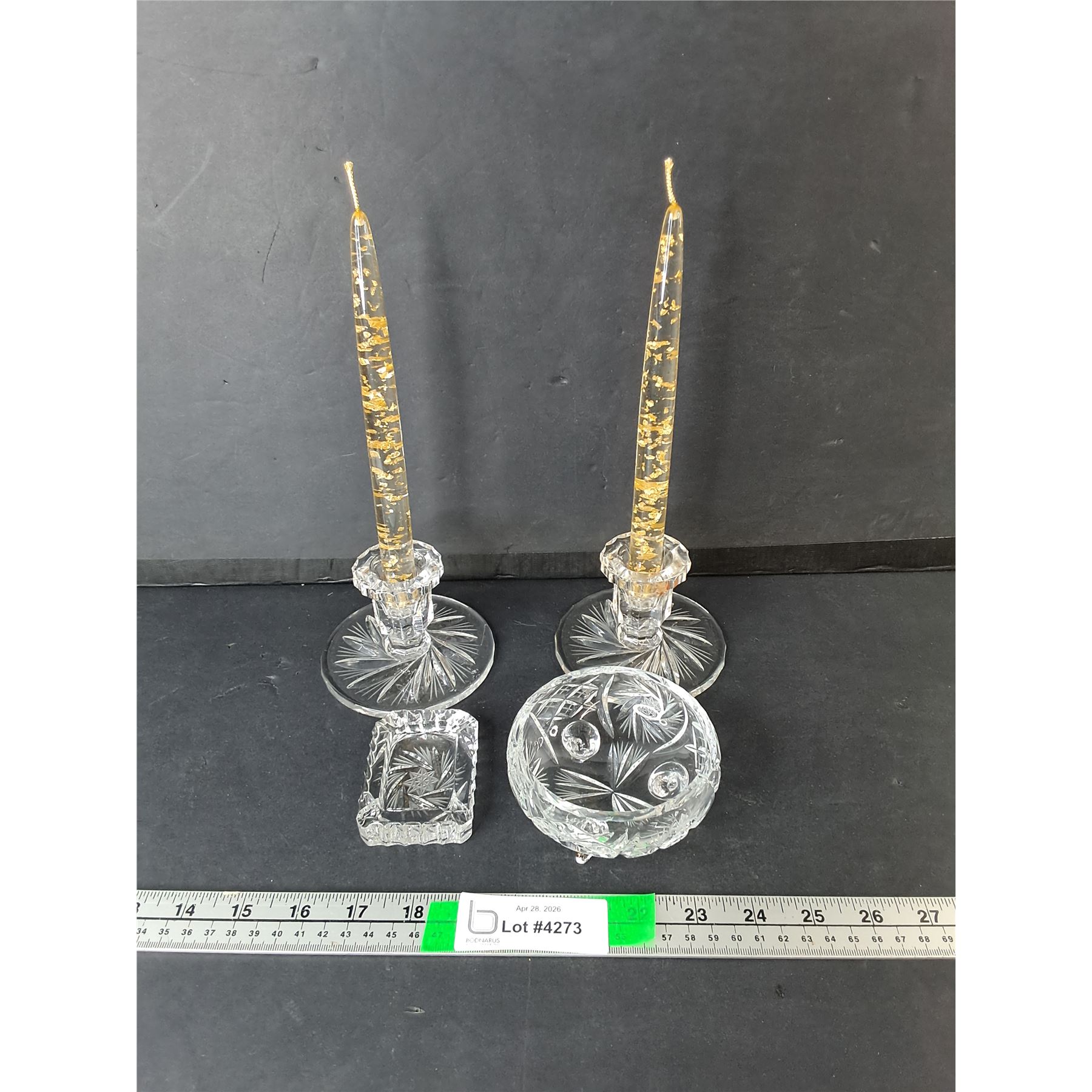 Lot 4273 Crystal Candleholders, Sugar Bowl, Decorative Candles, Misc.