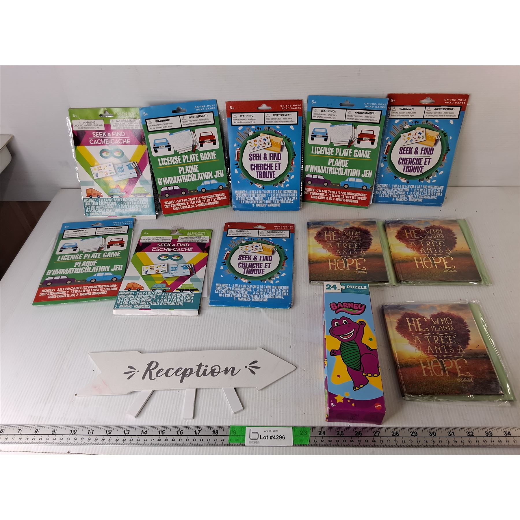 Lot 4296 Travel Games, Barney Puzzle, Reception Sign, Misc.
